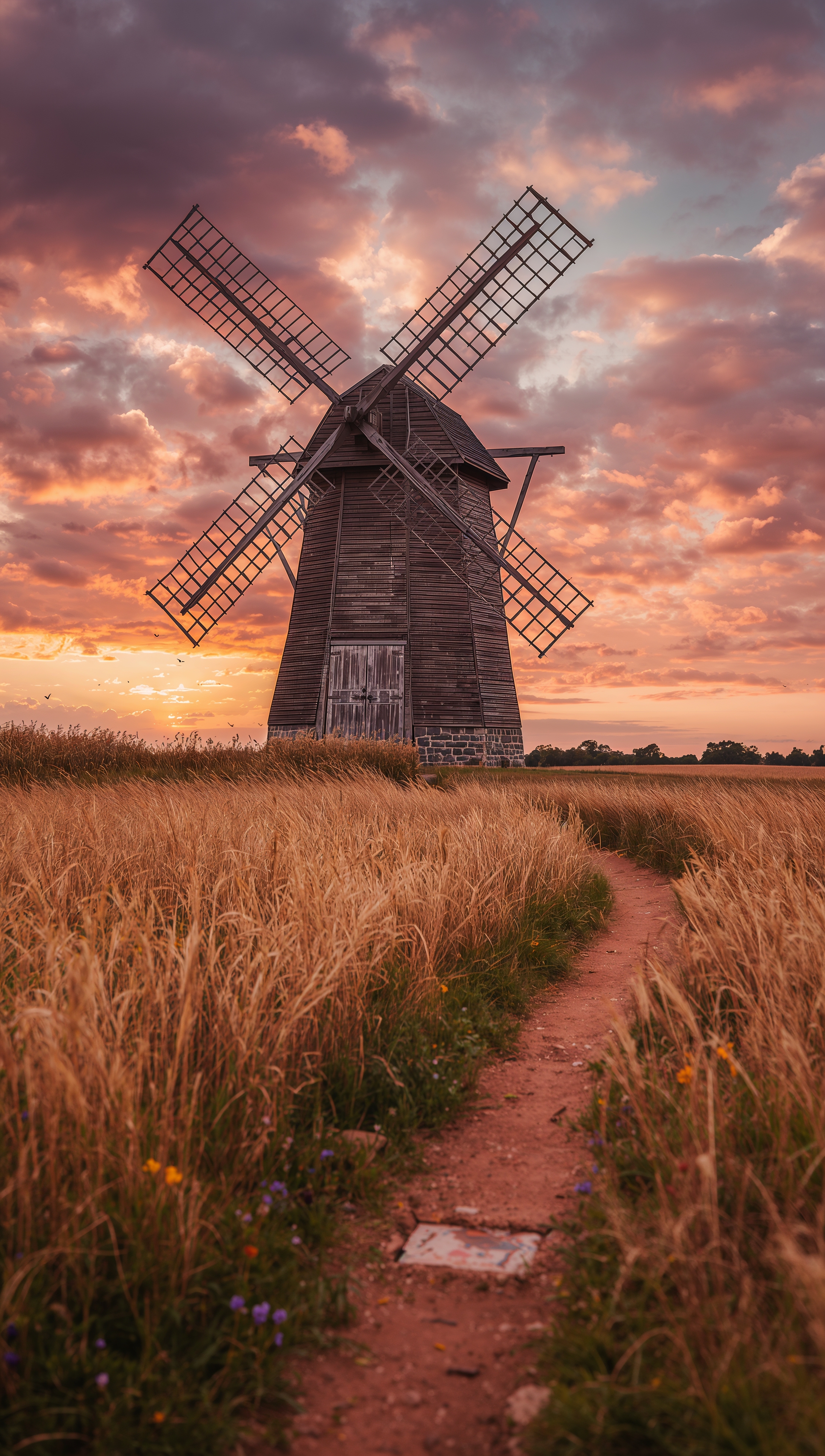 Country windmill iPhone wallpaper – rustic sunset scene 2176x3840 Country windmill iPhone wallpaper – rustic sunset scene