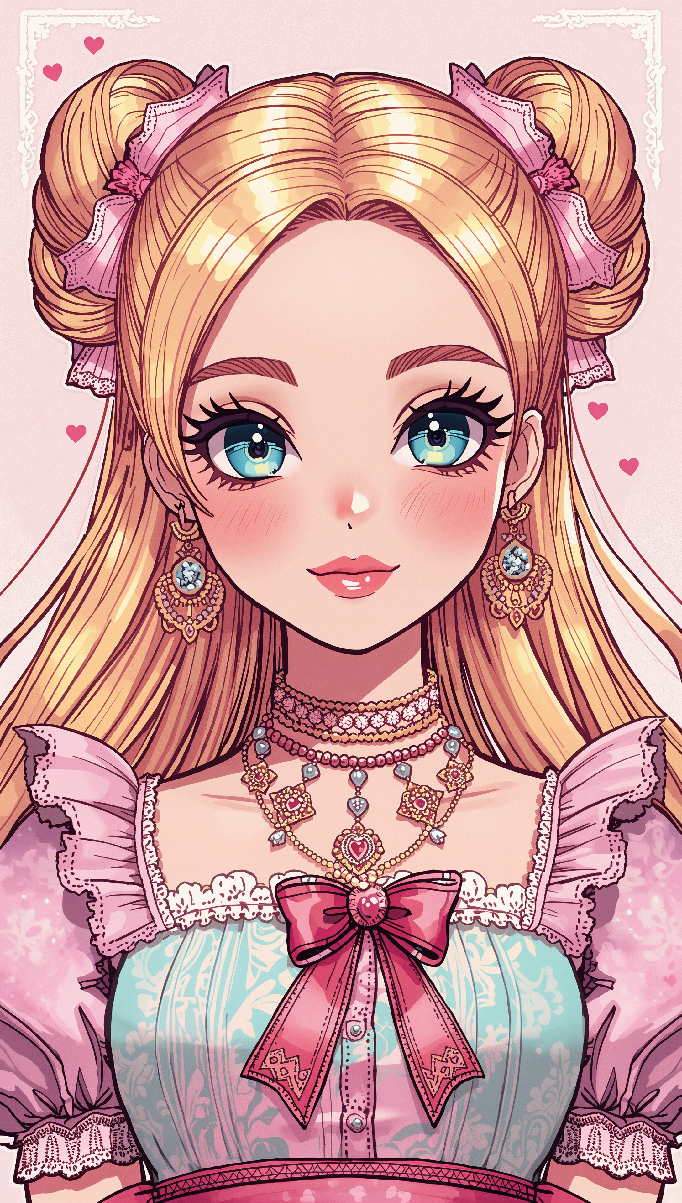 2176x3840 Barbie anime style illustration, kawaii look, 4K