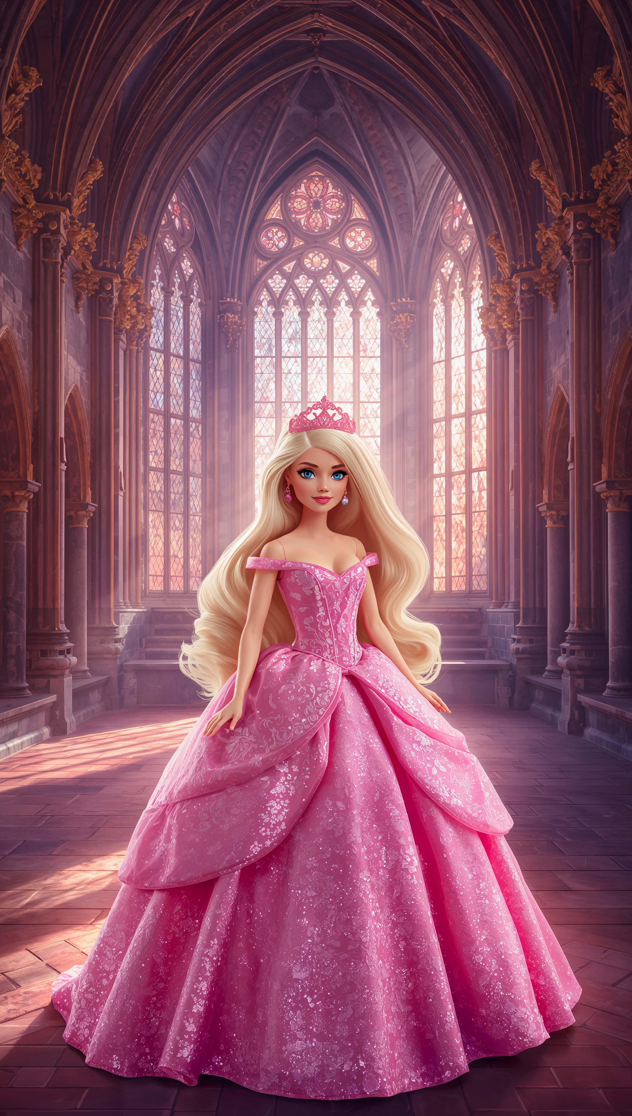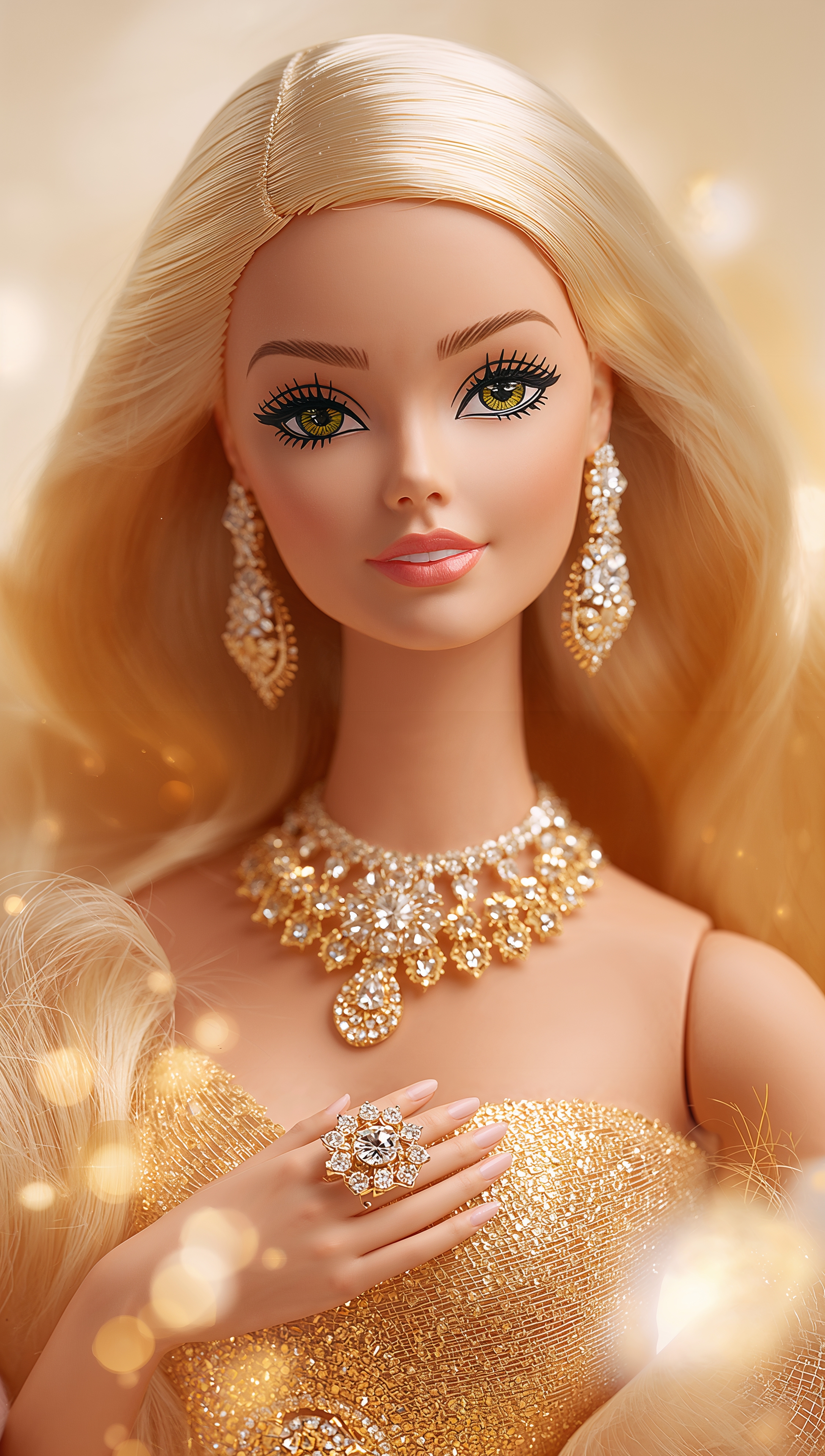 2176x3840 Barbie with luxury jewelry, golden sparkle, 4K
