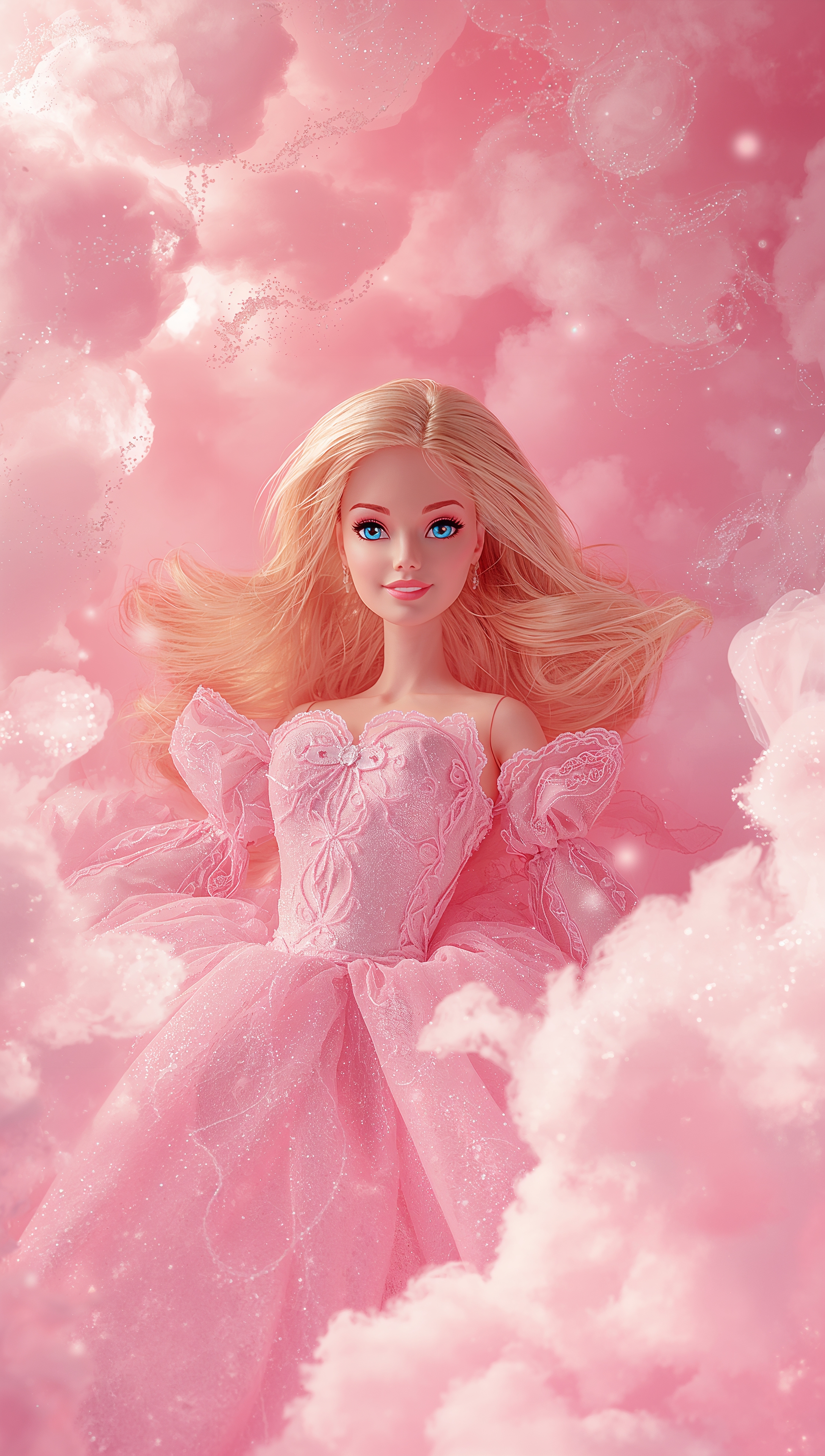 2176x3840 Barbie in dreamy pink clouds, magical vibe, 4K