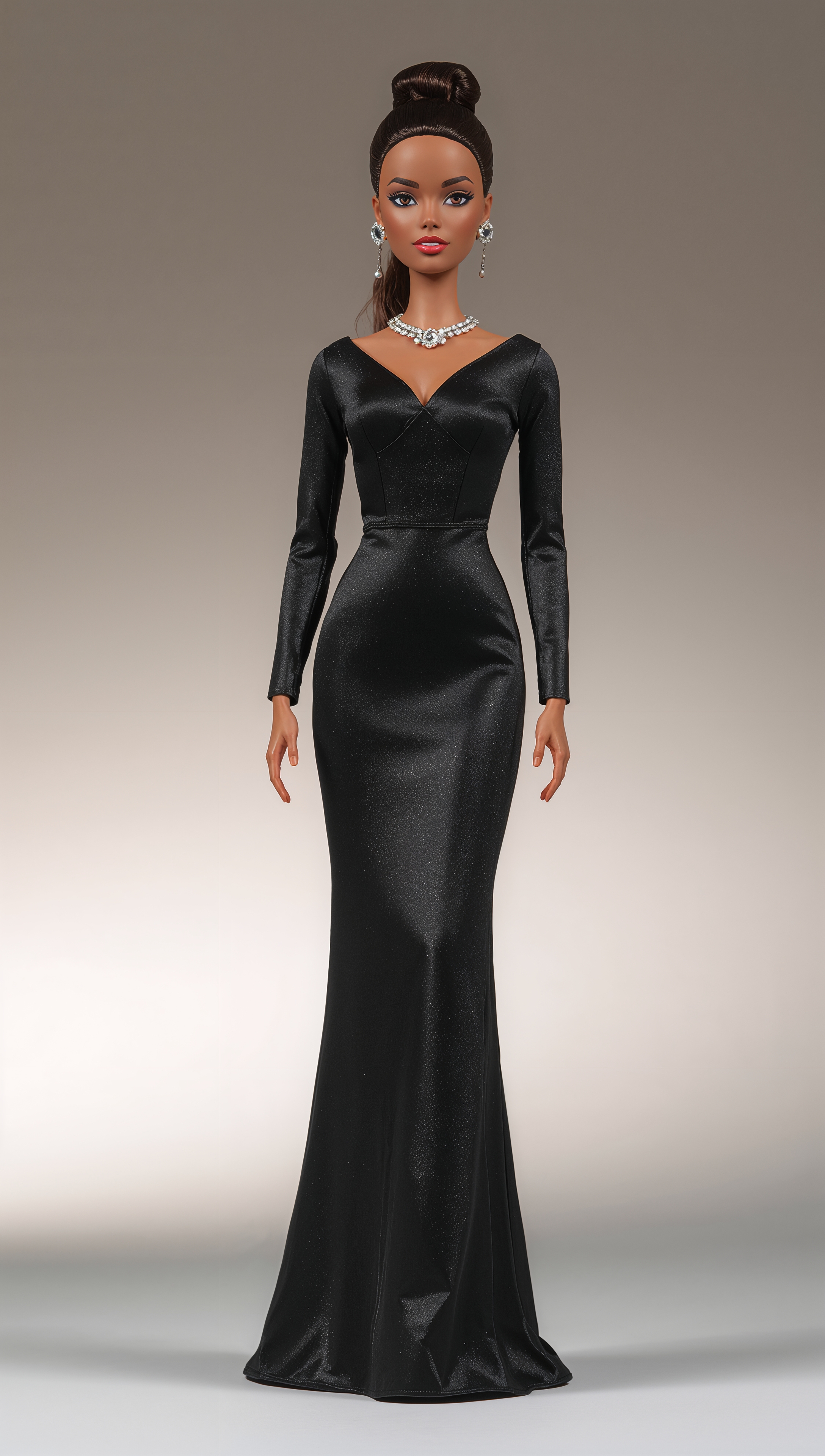 2176x3840 Barbie in elegant black dress, minimal background, 4K