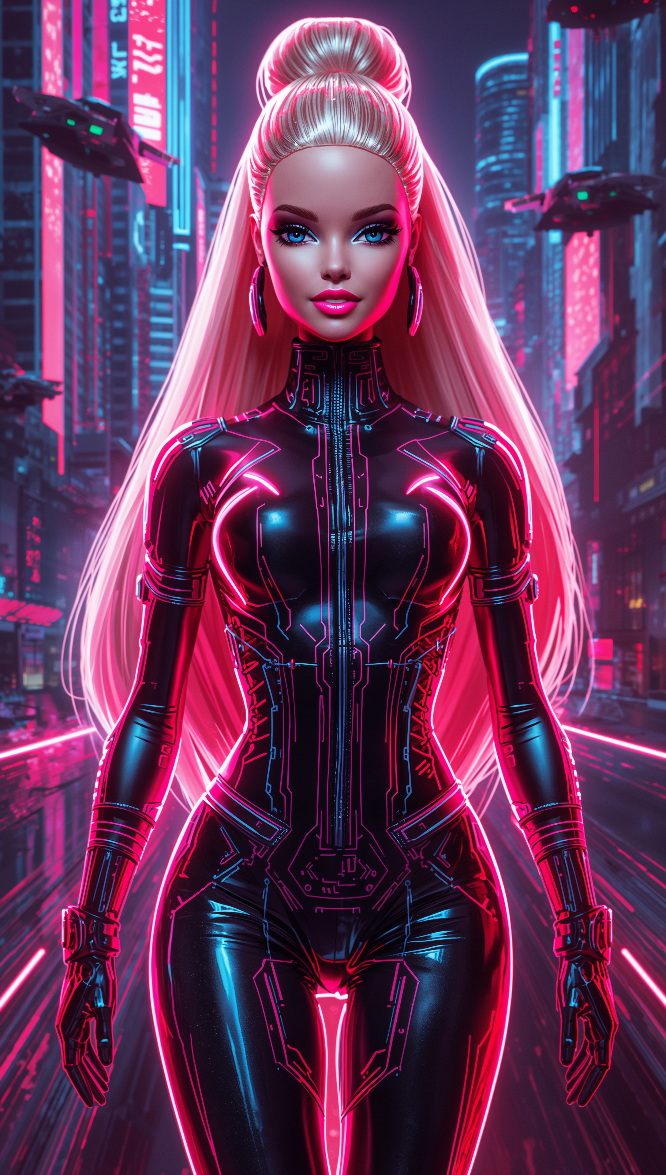 2176x3840 Barbie 4K cyberpunk neon wallpaper