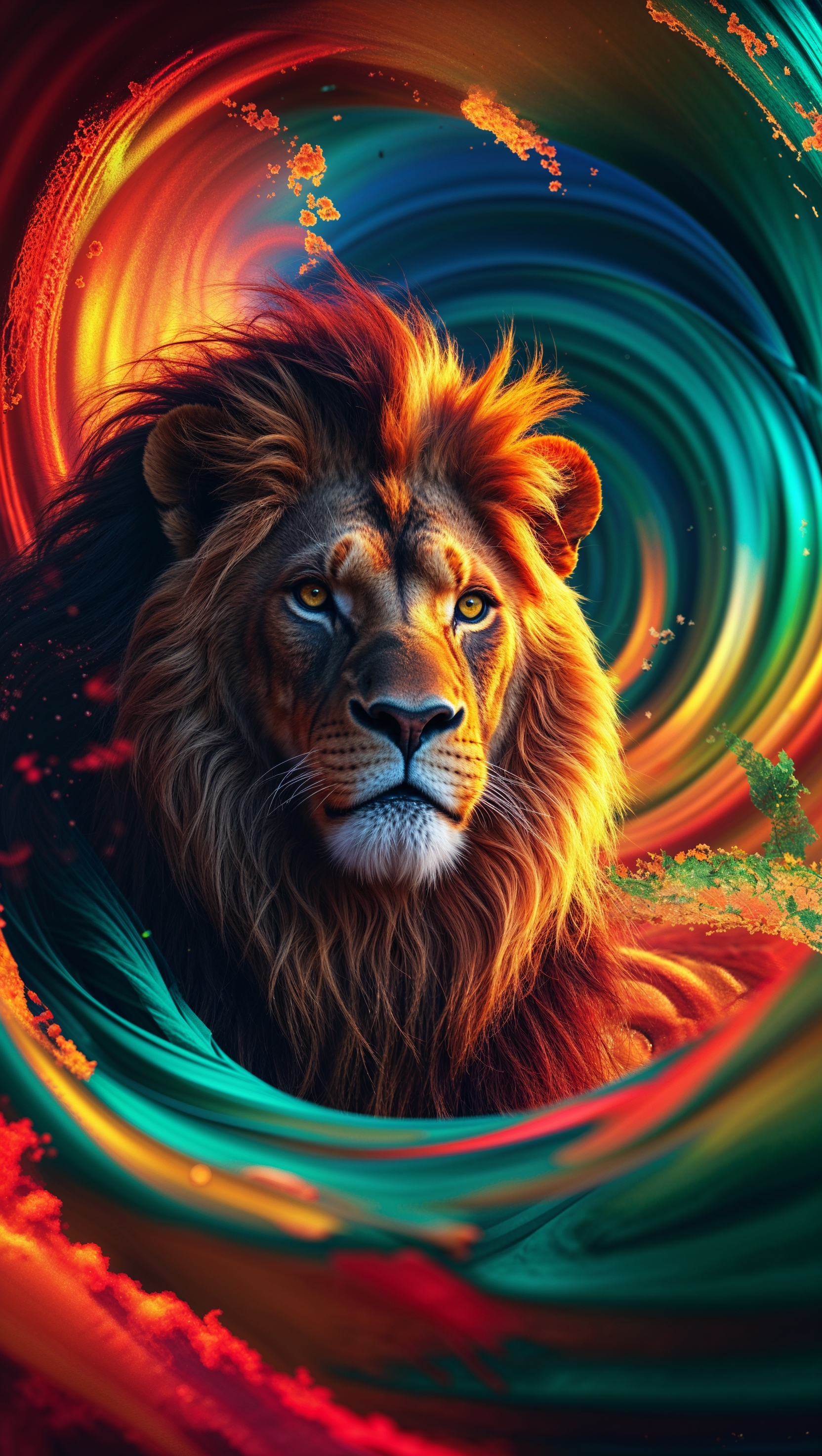 1664x2944 A colorful painting of Simba with artistic effects, iPhone wallpaper