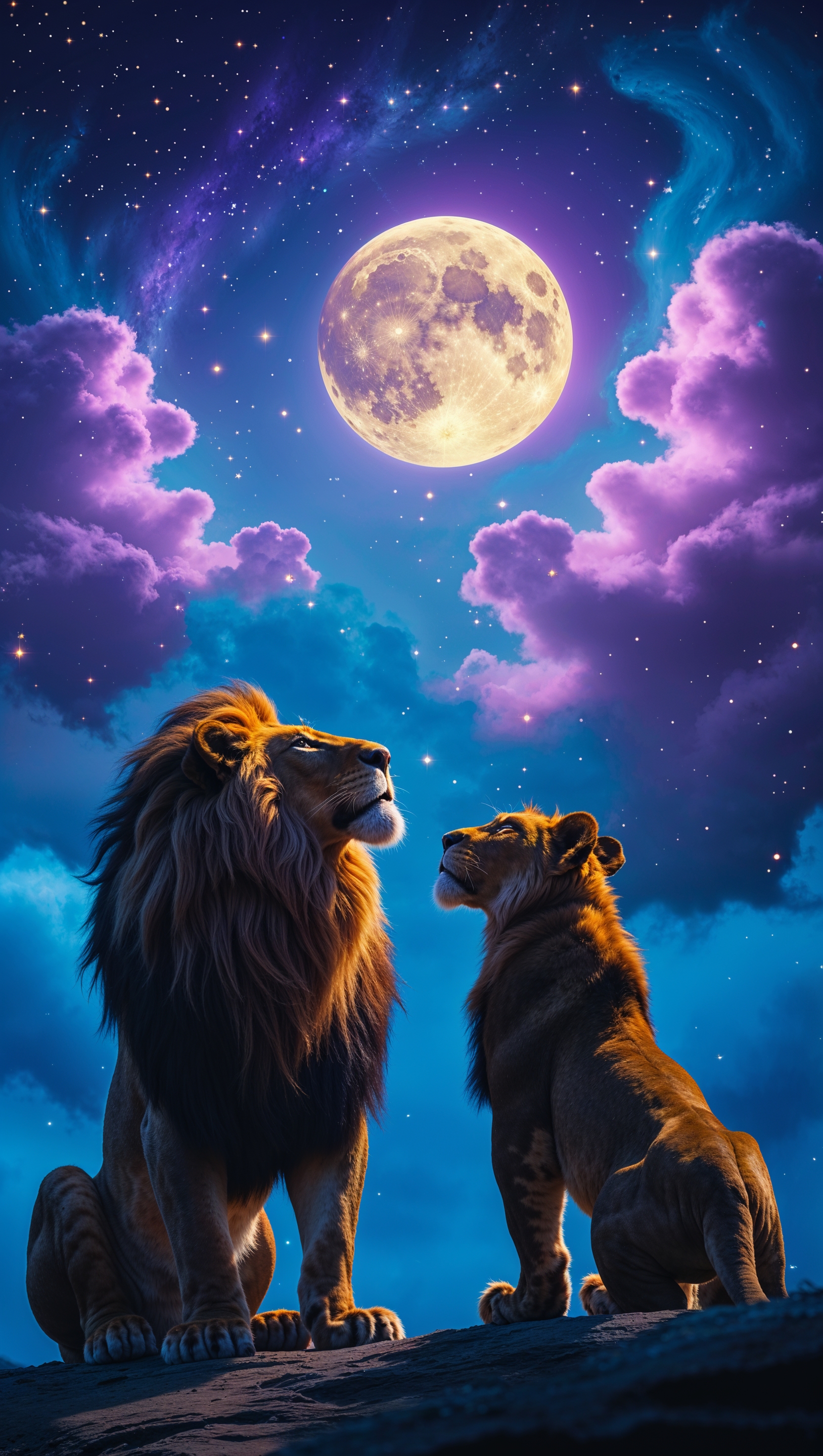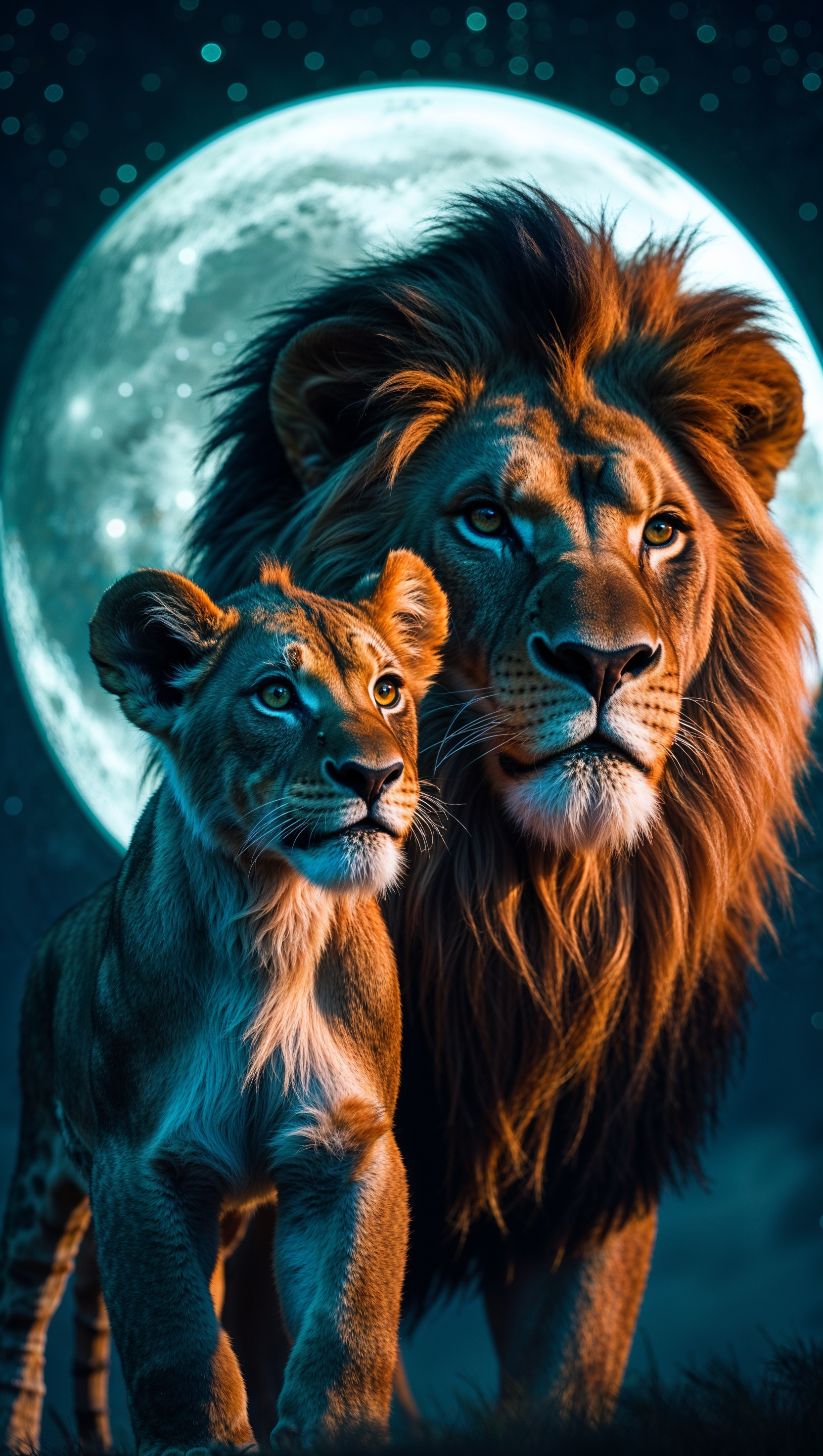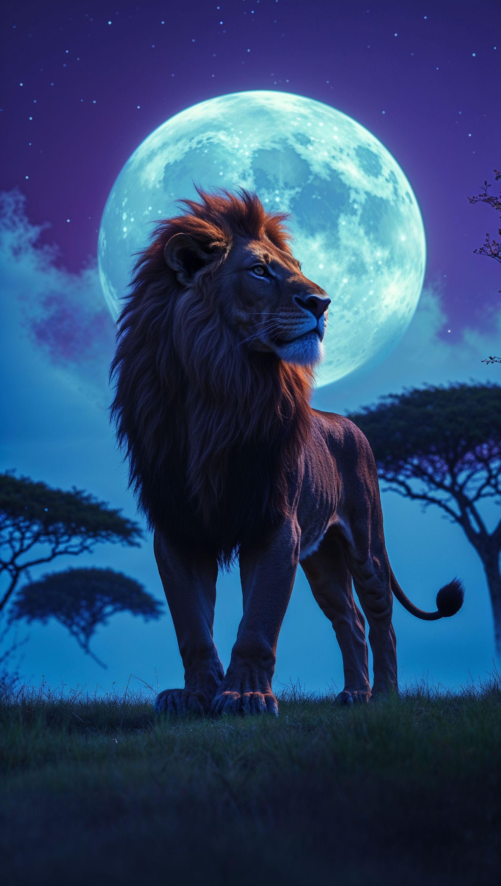 1664x2944 Lion King under a moonlit night with natural light effects, iPhone wallpaper