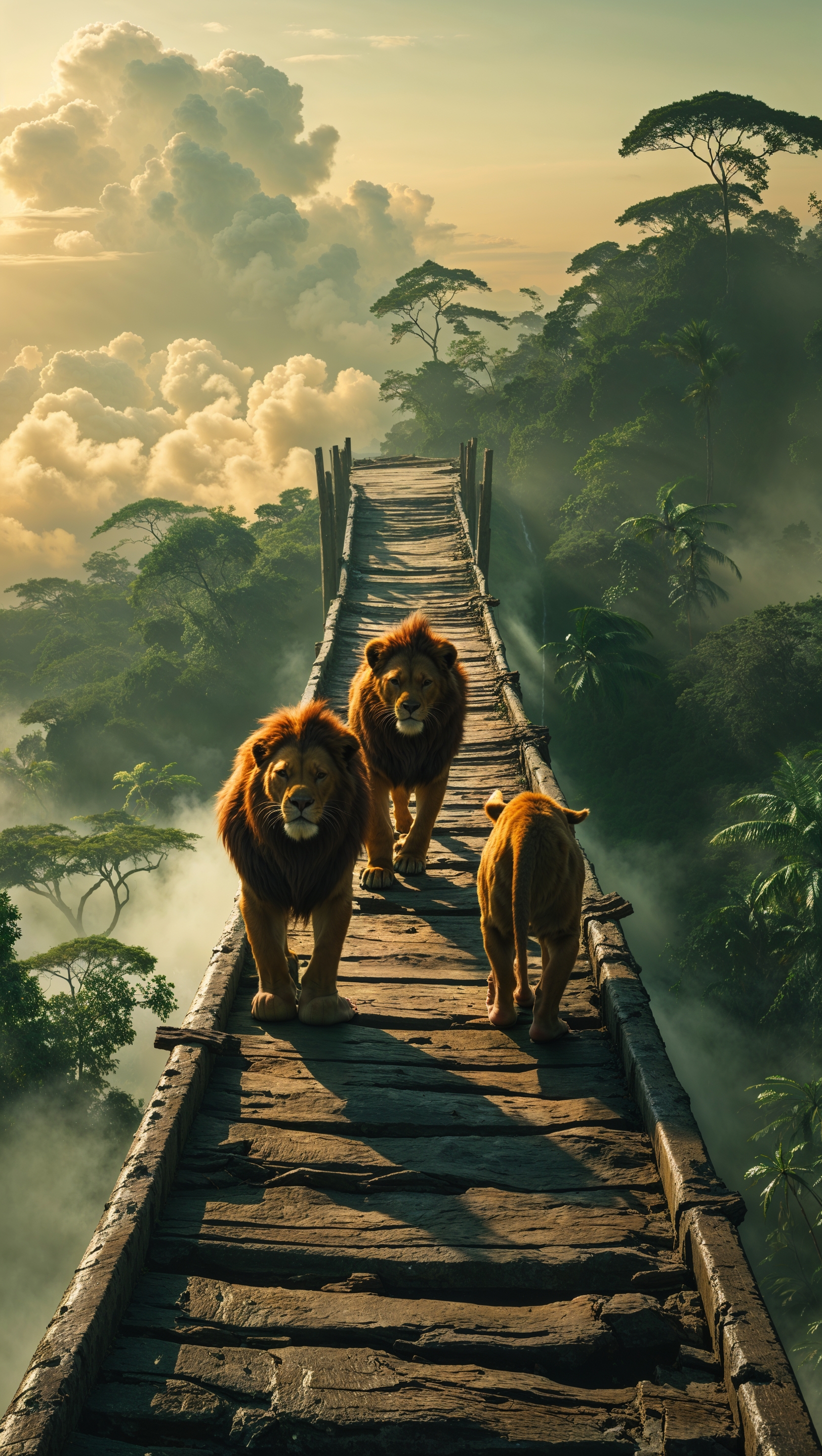 1664x2944 Simba, Timon, and Pumbaa crossing a wooden bridge, iPhone wallpaper