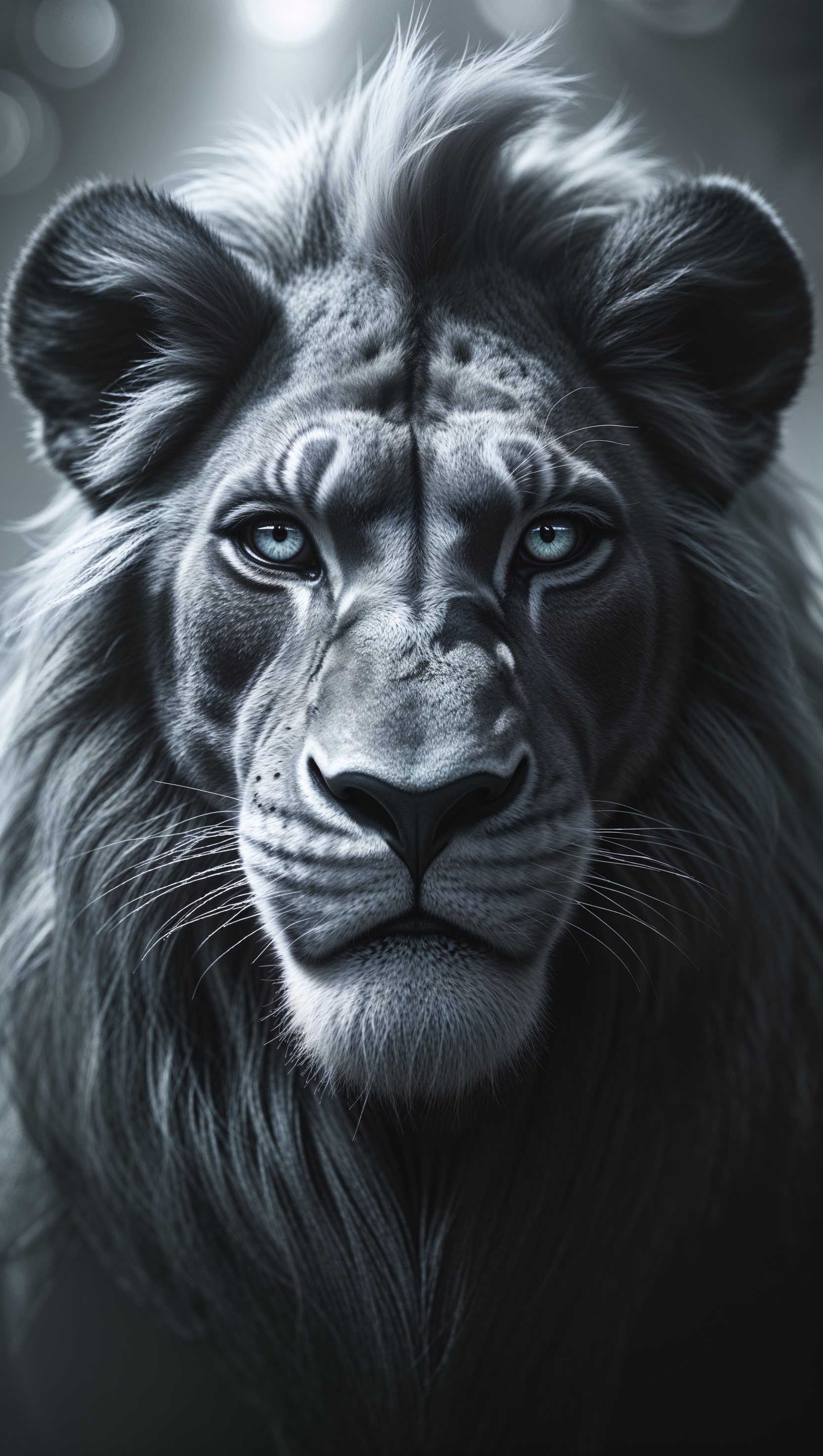 1664x2944 Black and white version of Simba’s face for iPhone wallpaper