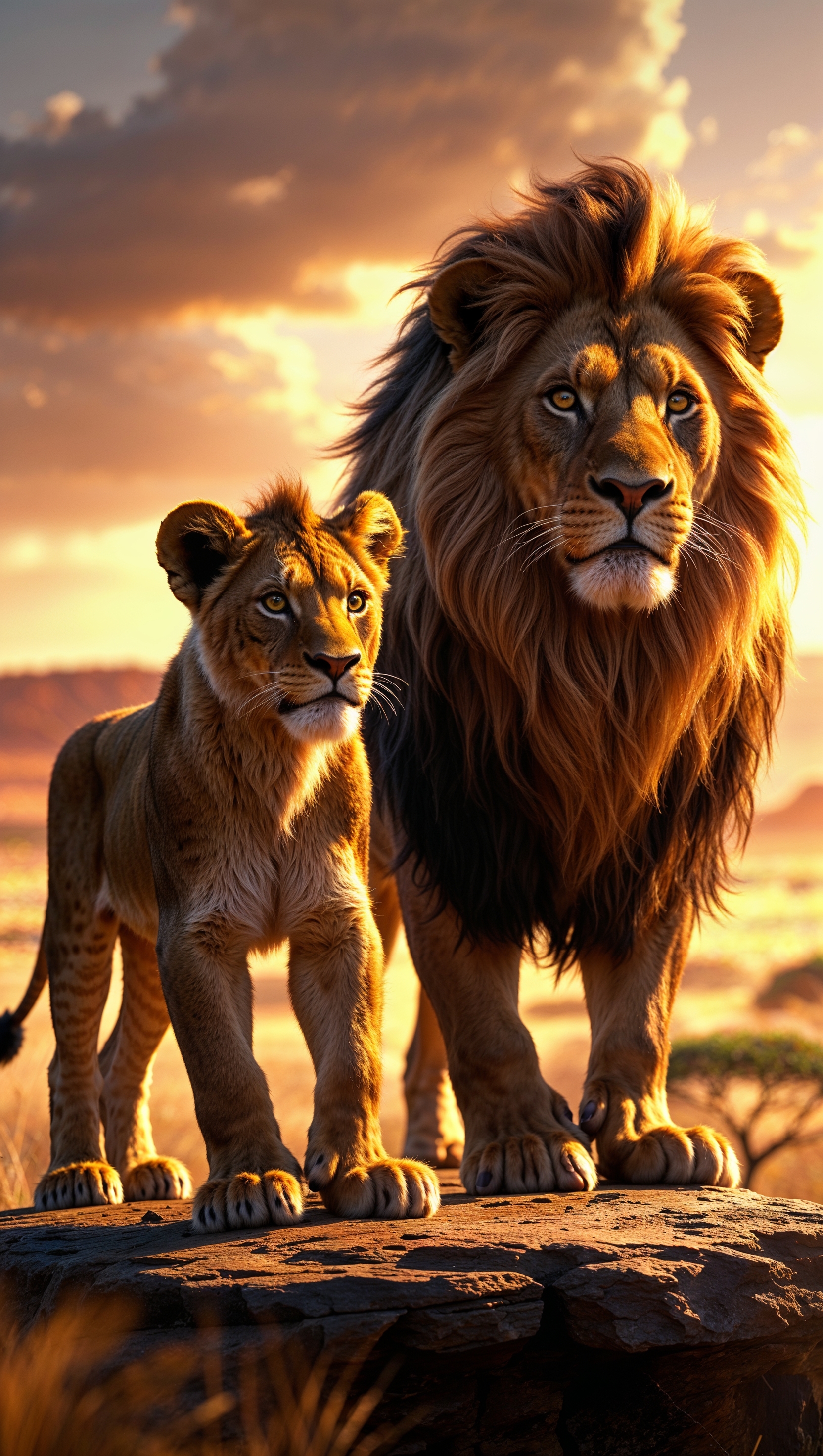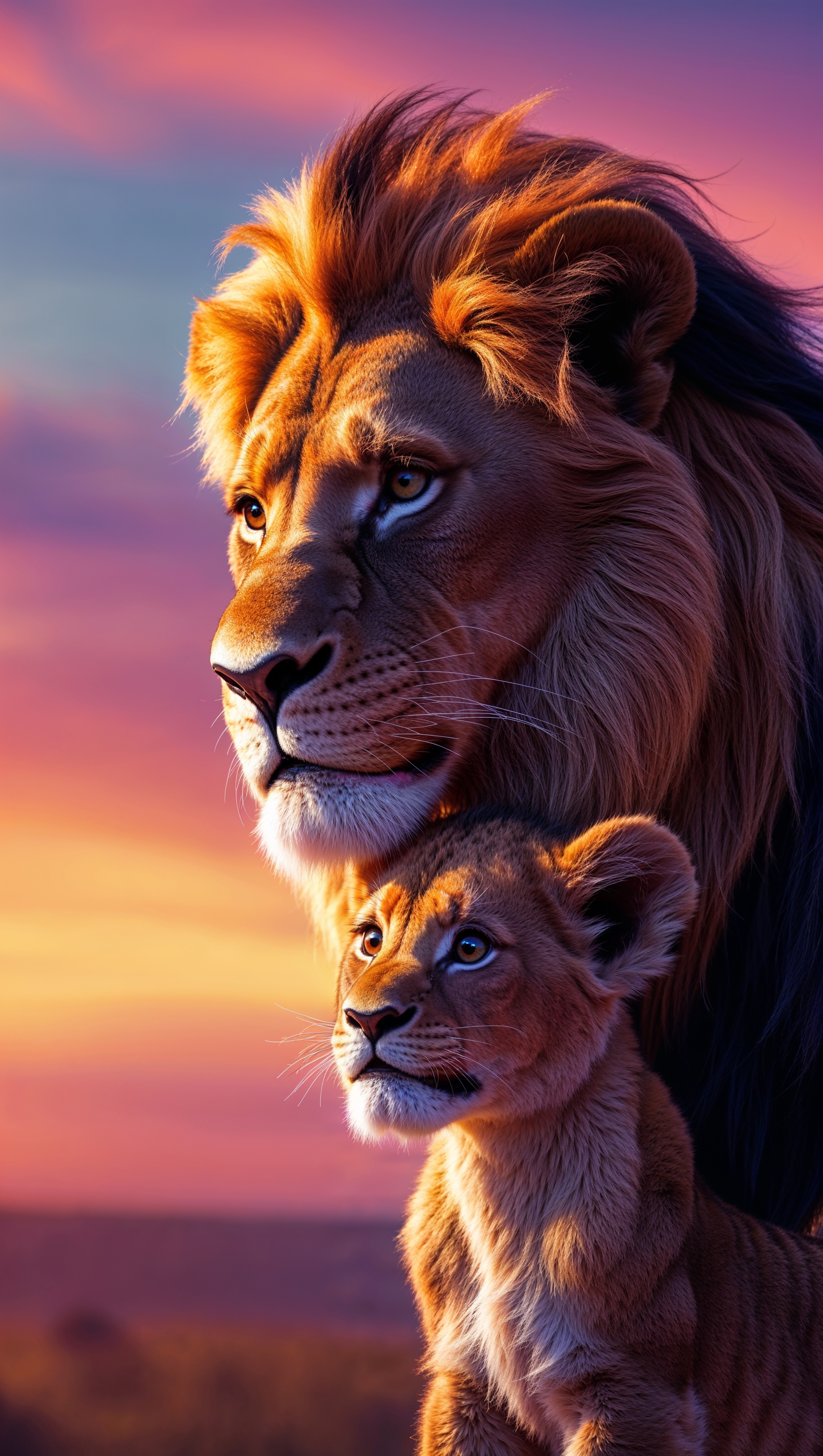 1664x2944 Digital painting of Simba and Mufasa watching the sunrise, iPhone wallpaper