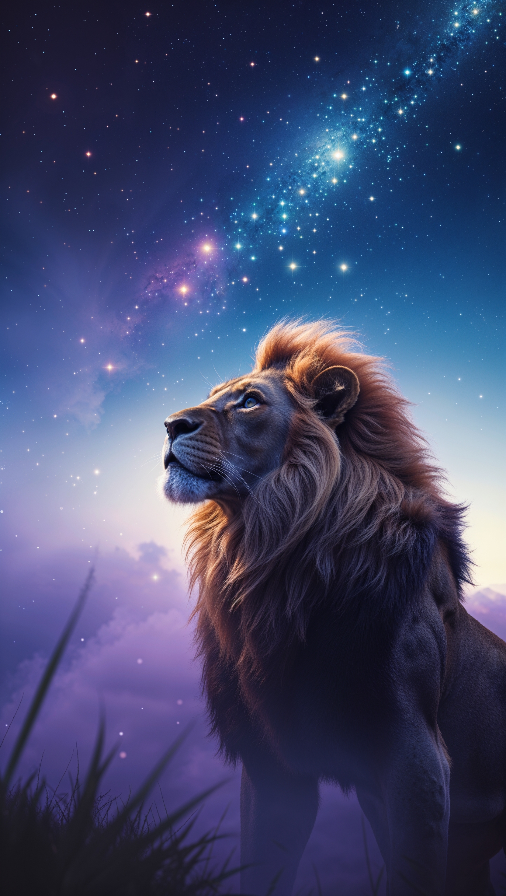 1664x2944 Simba looking at the starry sky with a nostalgic feeling, iPhone wallpaper