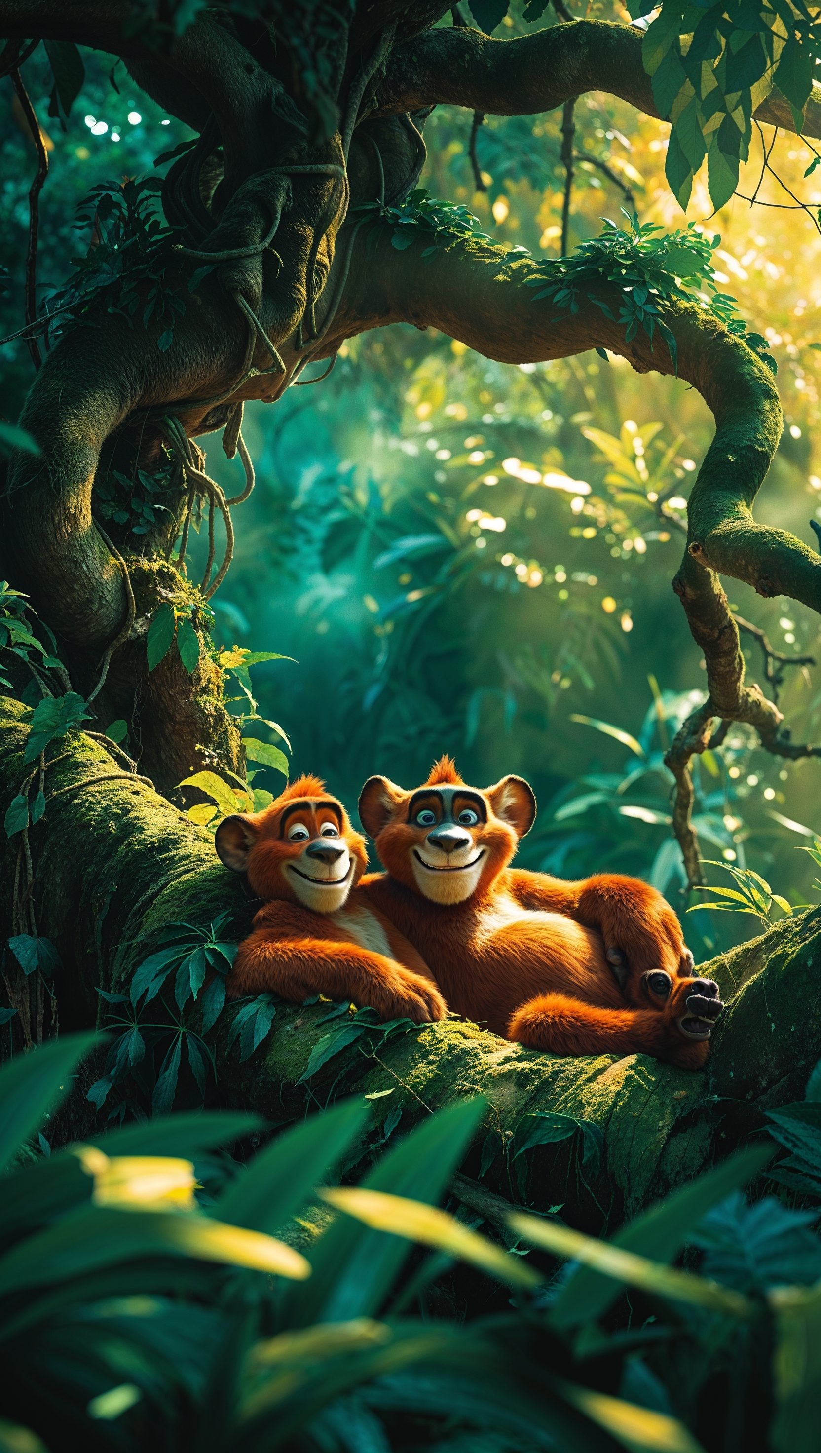 1664x2944 Timon and Pumbaa relaxing under a tree in the jungle, iPhone wallpaper