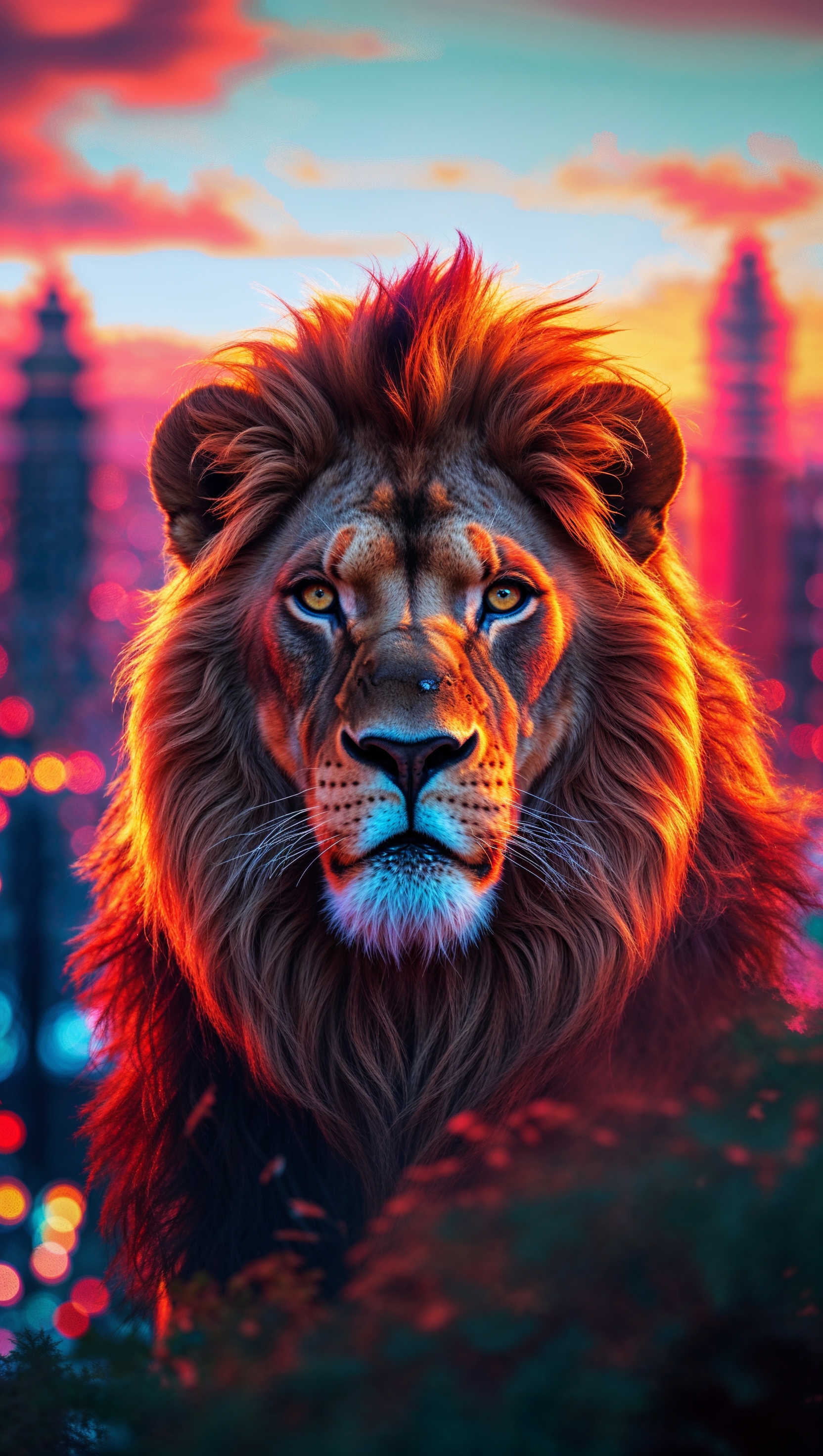 1664x2944 Artistic Lion King wallpaper with warm and vibrant colors for iPhone