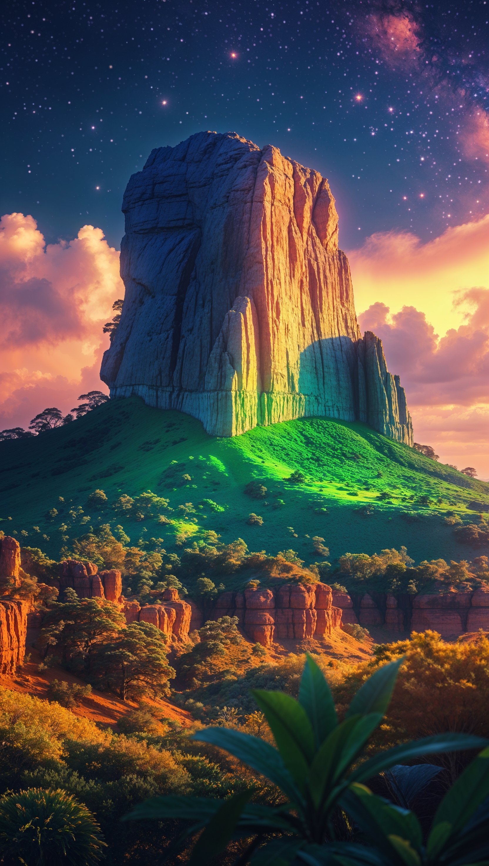 1664x2944 A fantasy version of Pride Rock with glowing colors, iPhone wallpaper