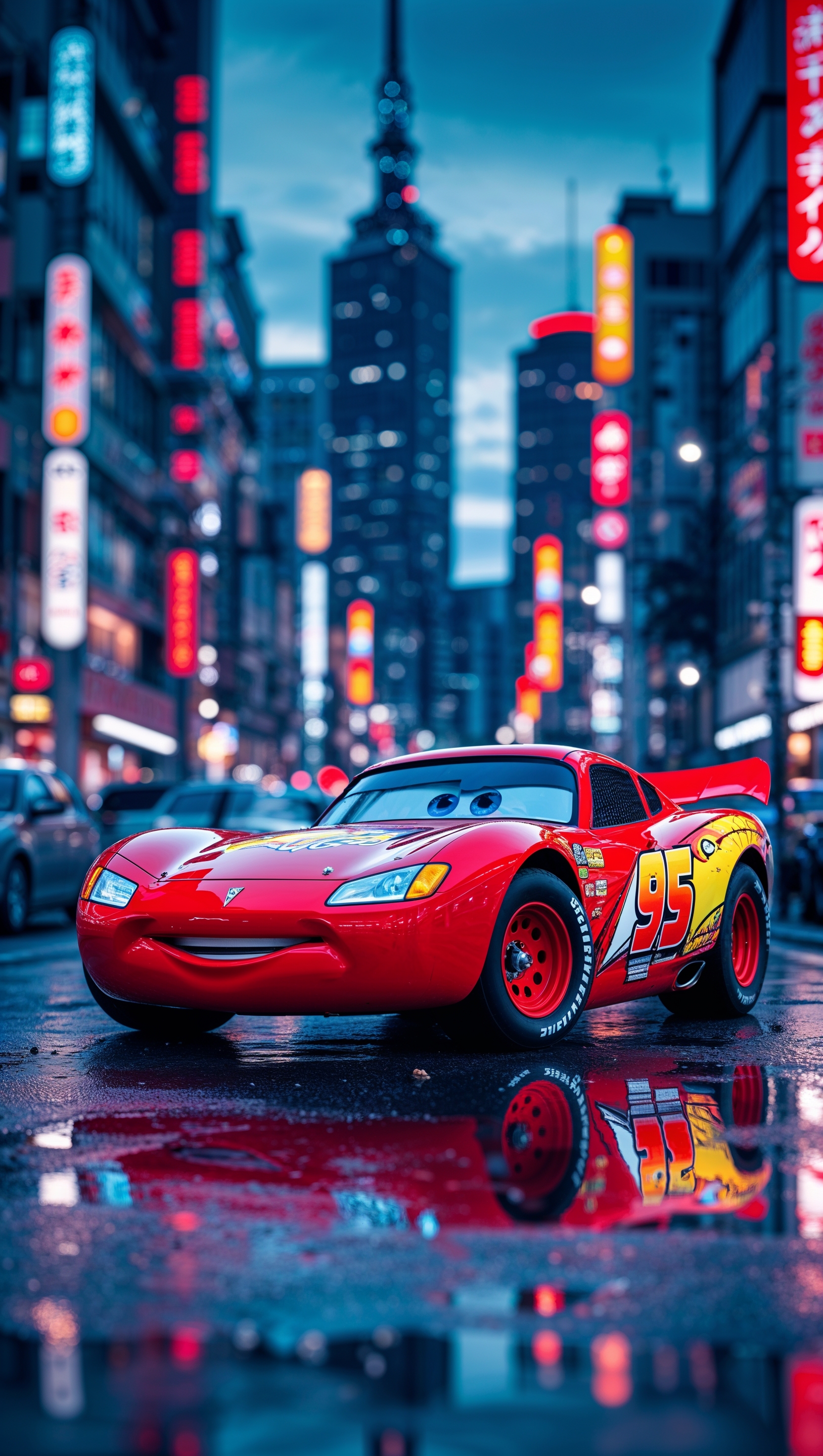 Lightning McQueen in Tokyo with neon lights, perfect for iPhone wallpaper 1664x2944 Lightning McQueen in Tokyo with neon lights, perfect for iPhone wallpaper