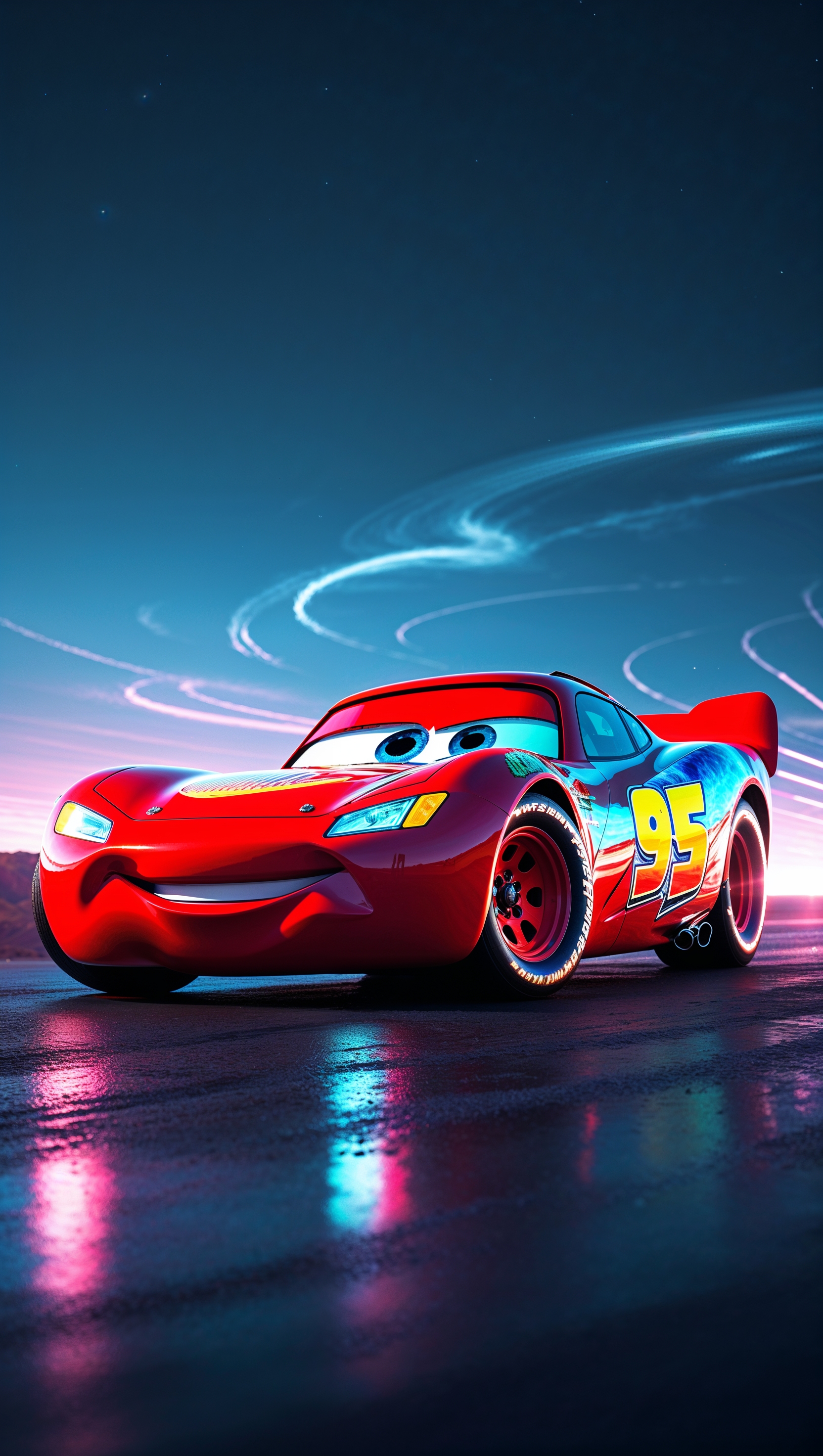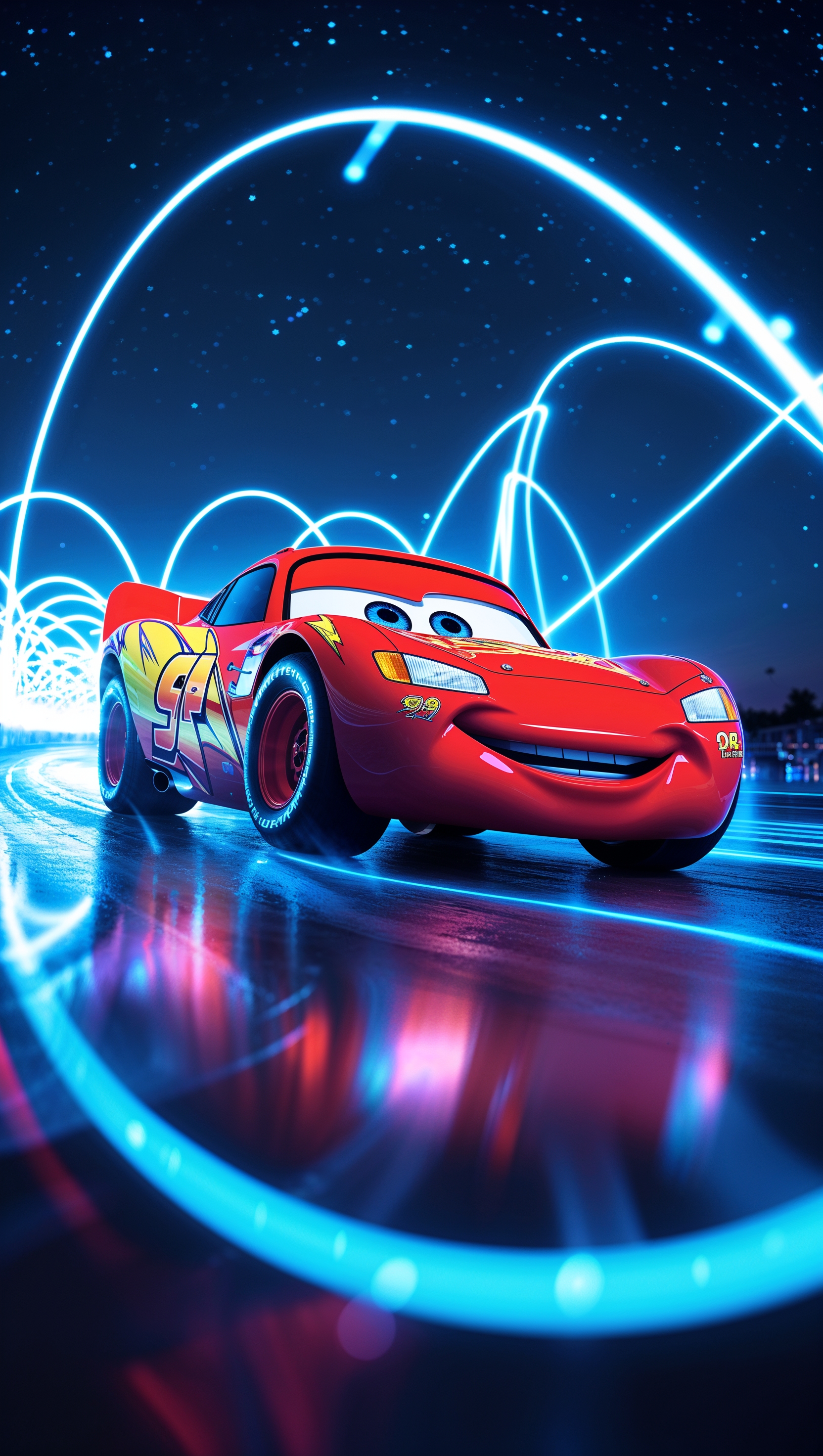 Lightning McQueen with a neon design at night, perfect for iPhone wallpaper 1664x2944 Lightning McQueen with a neon design at night, perfect for iPhone wallpaper
