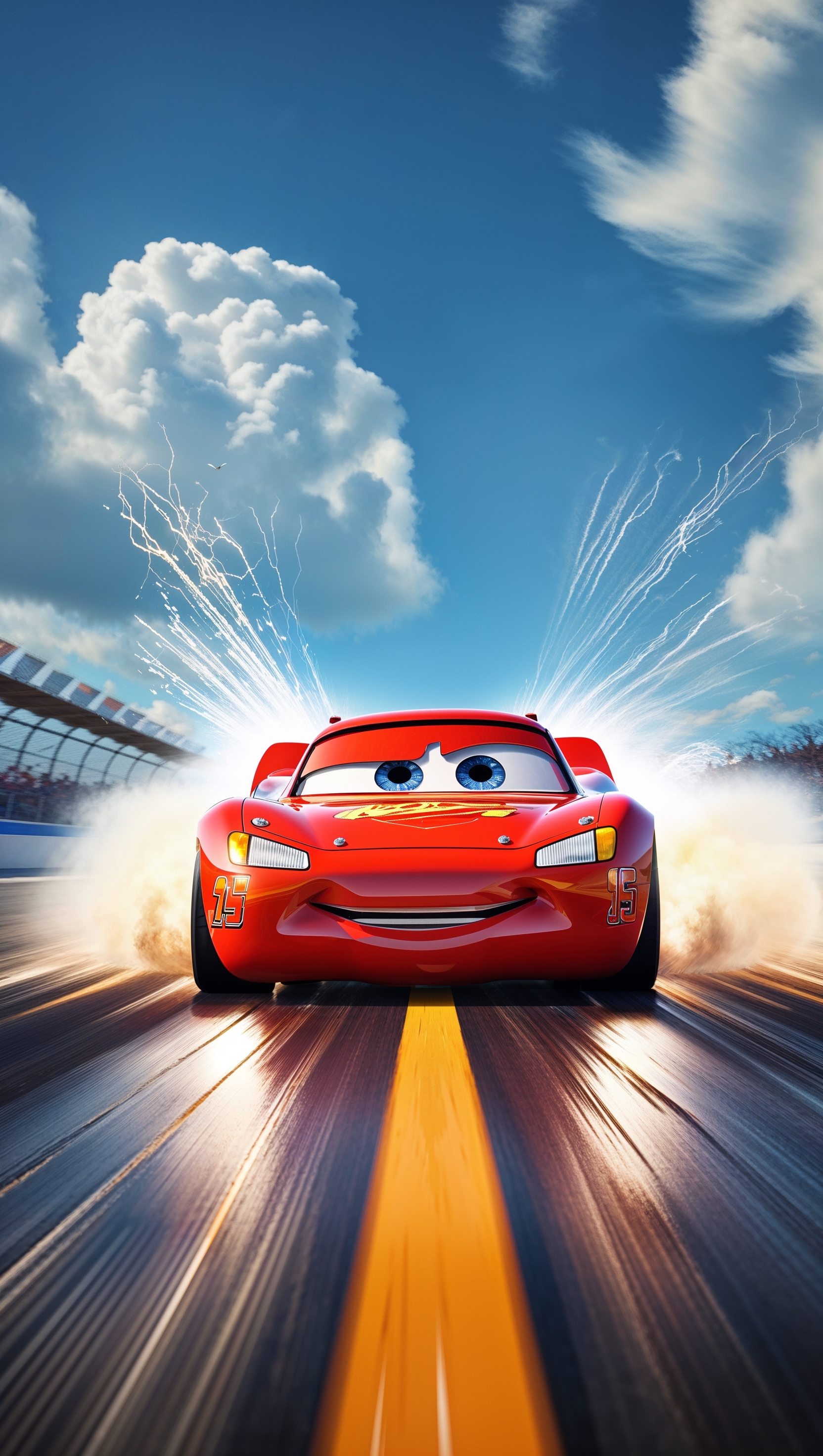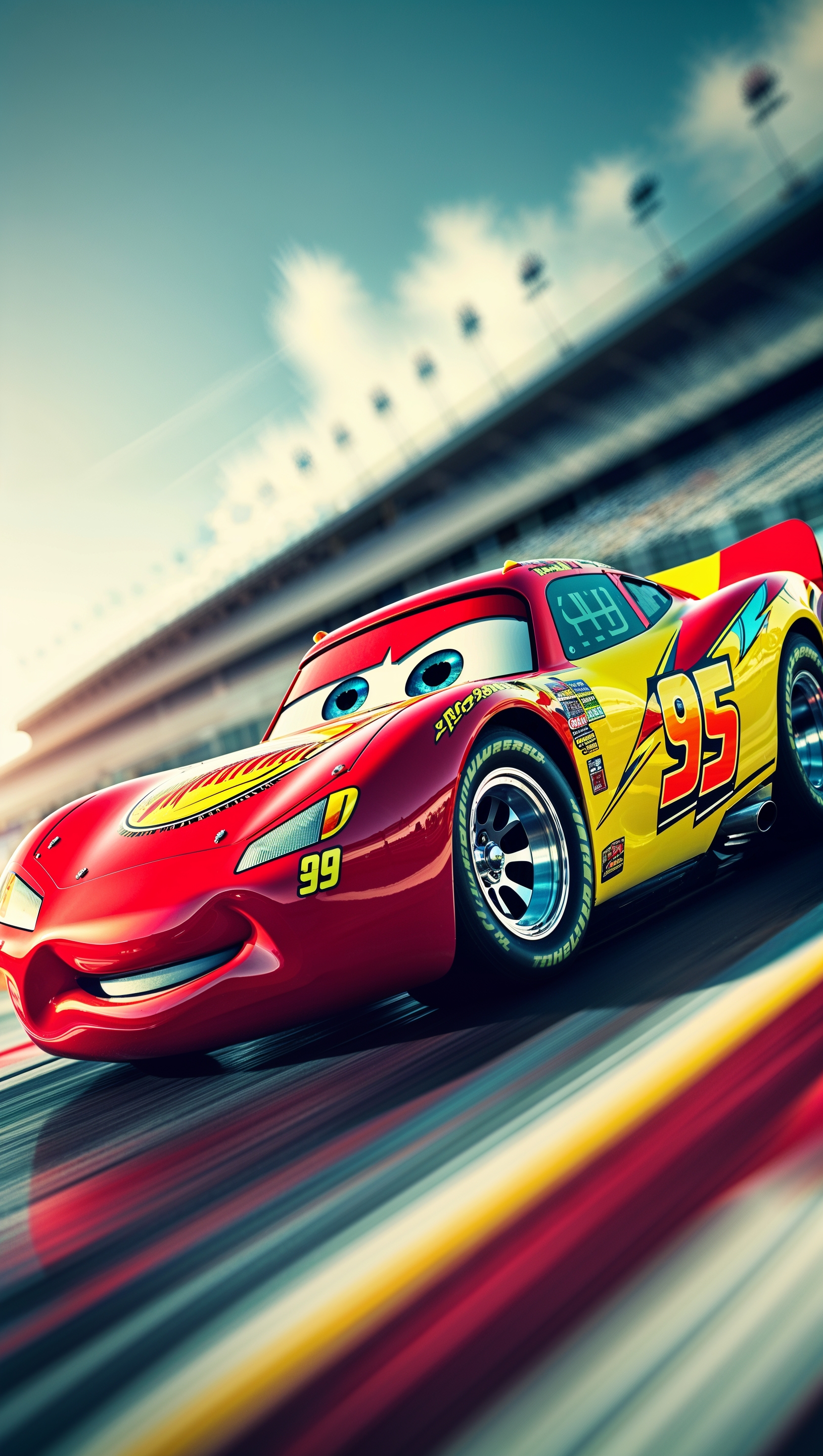 Lightning McQueen in a race with motion blur effects, perfect for iPhone wallpaper 1664x2944 Lightning McQueen in a race with motion blur effects, perfect for iPhone wallpaper