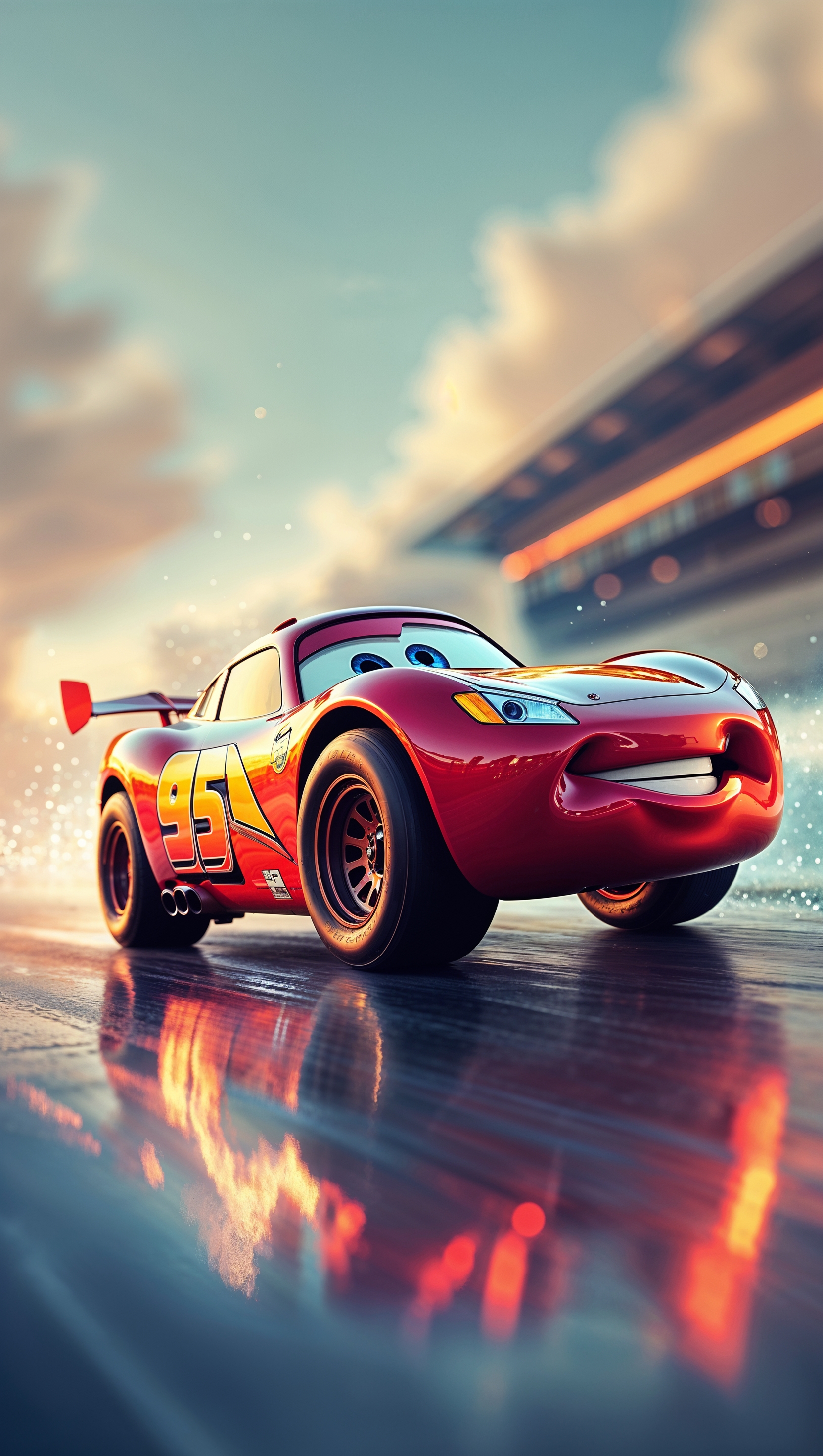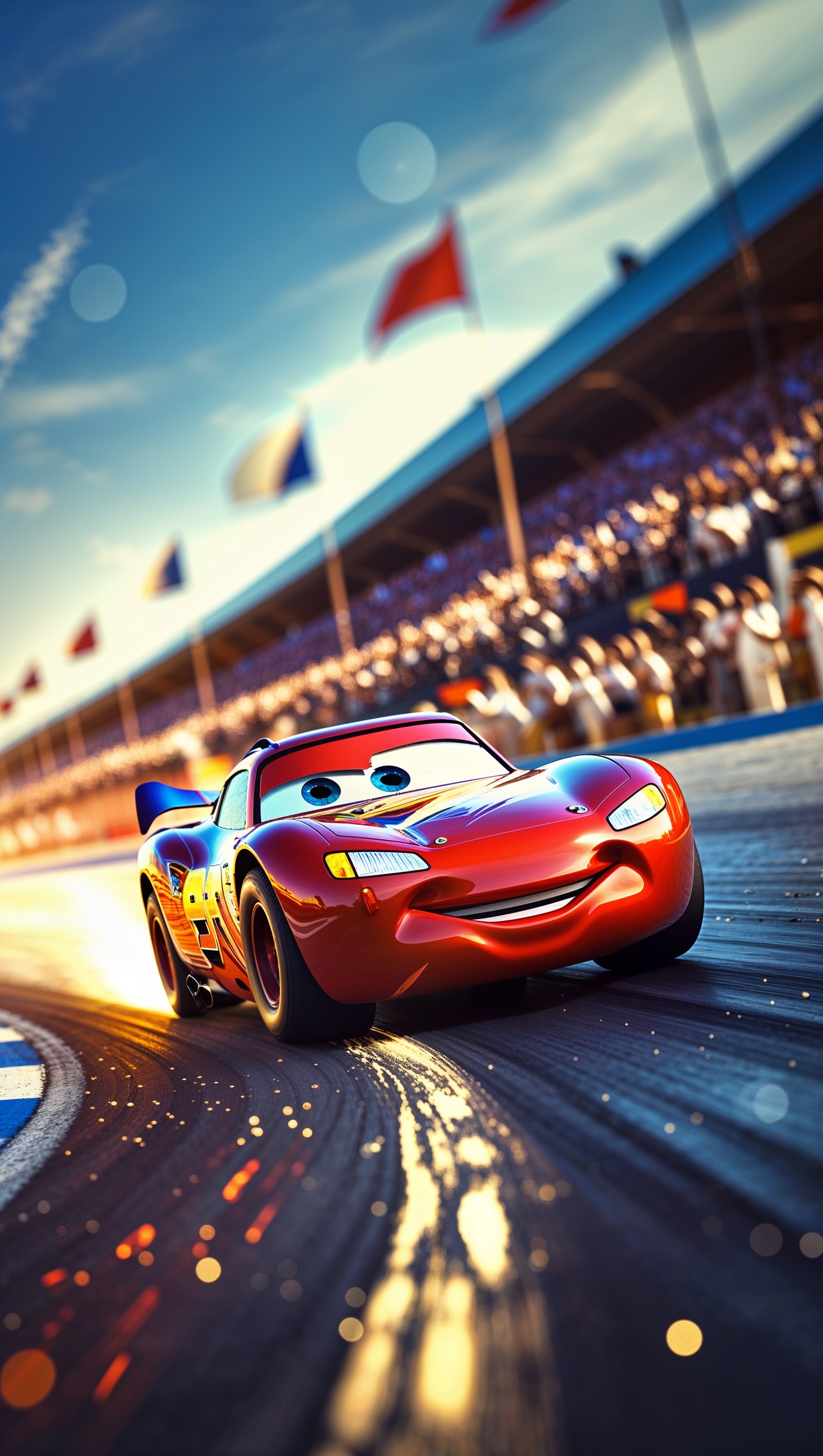 Lightning McQueen on a racetrack with cinematic effects, designed for iPhone wallpaper 1664x2944 Lightning McQueen on a racetrack with cinematic effects, designed for iPhone wallpaper