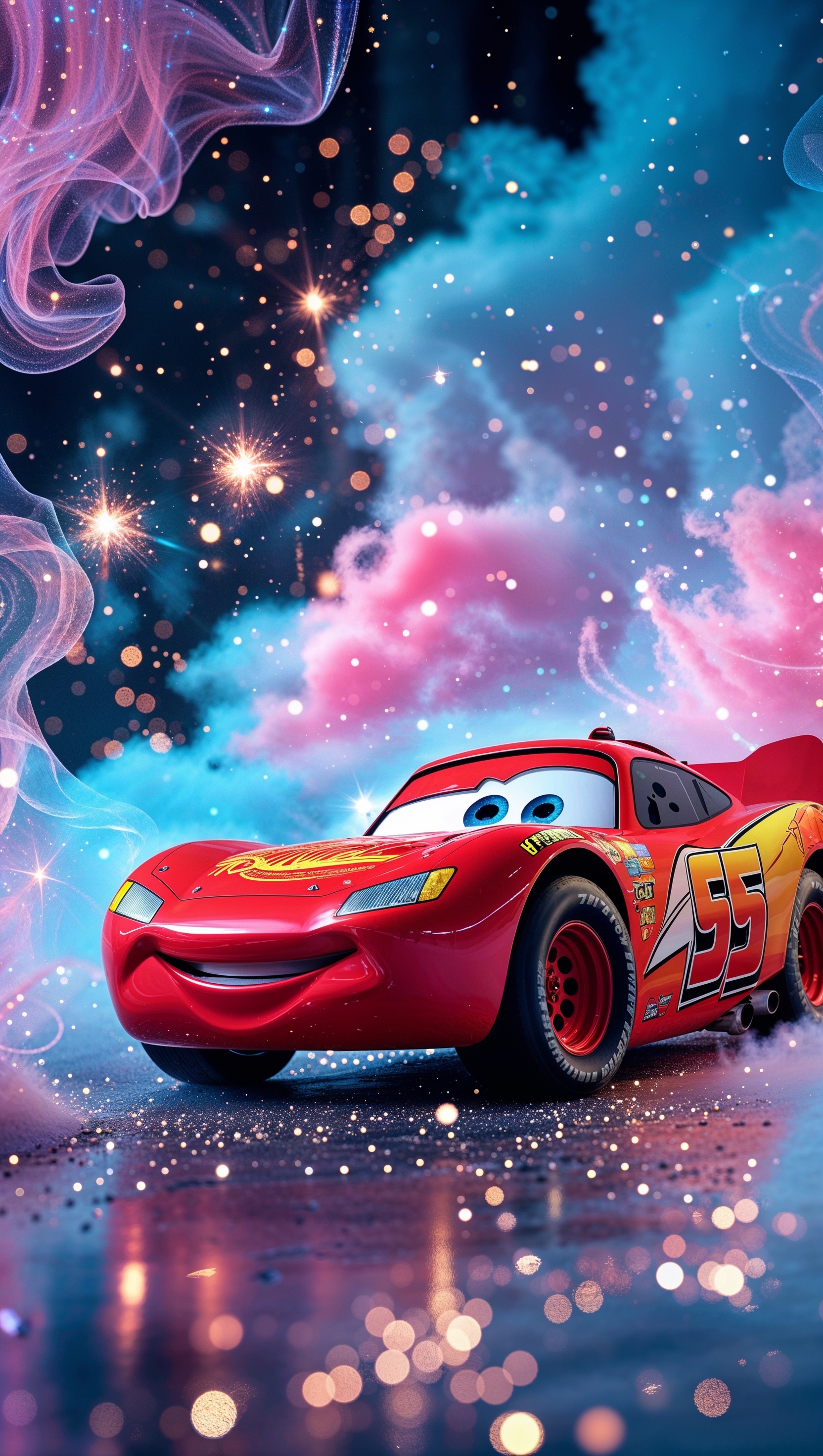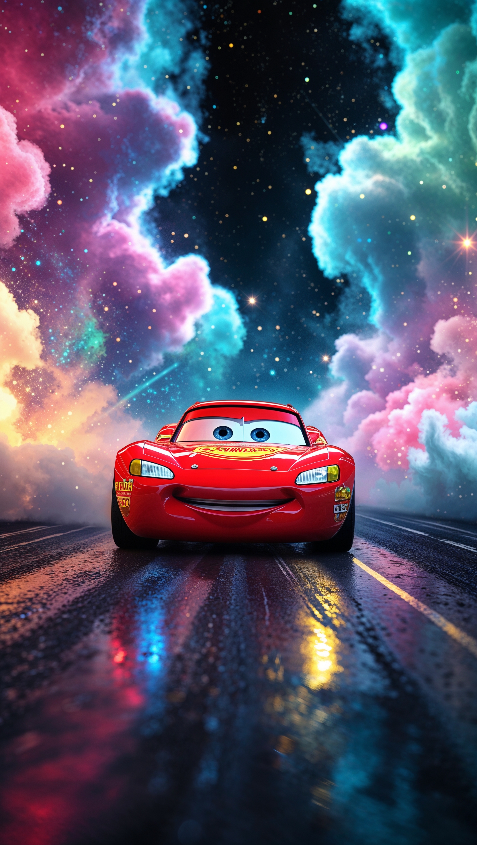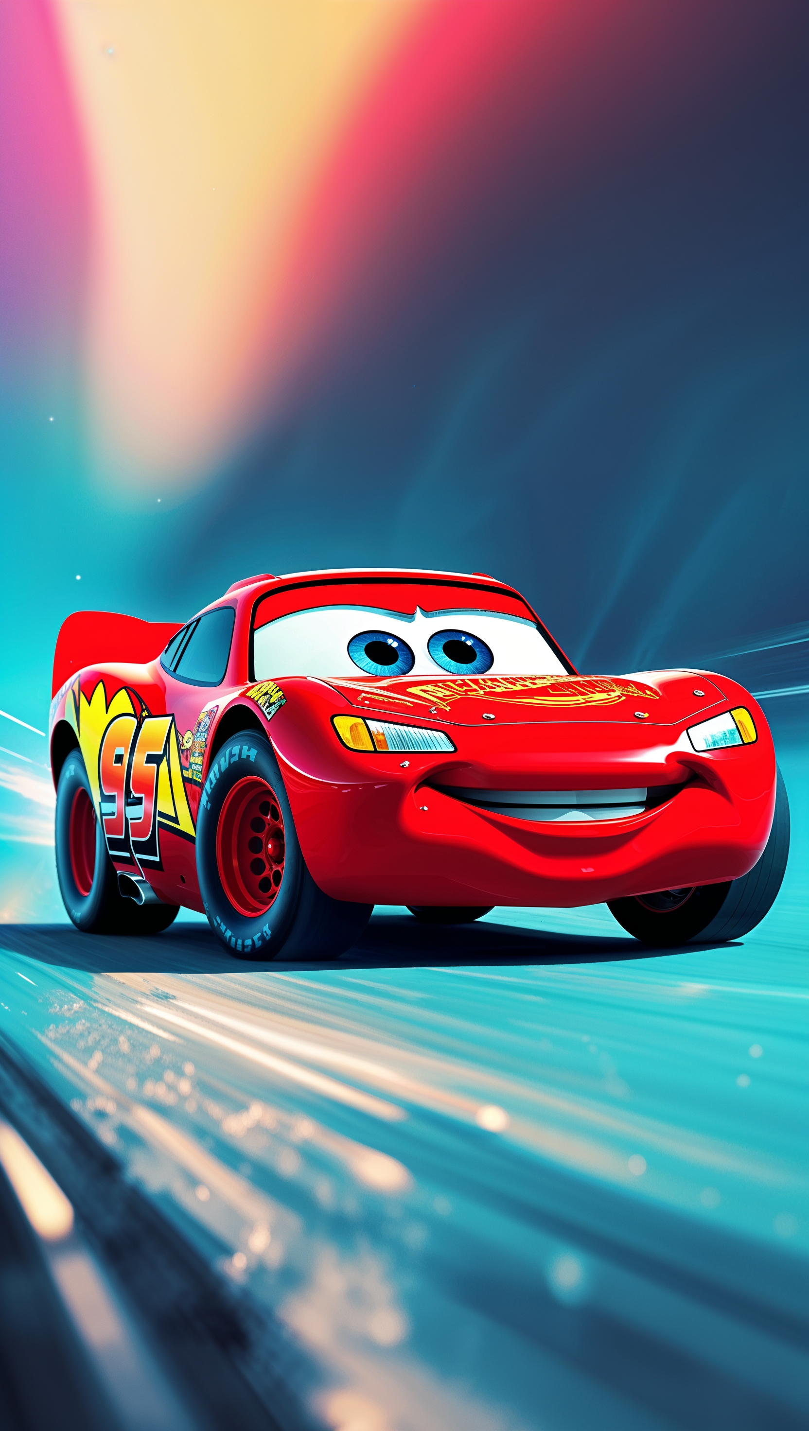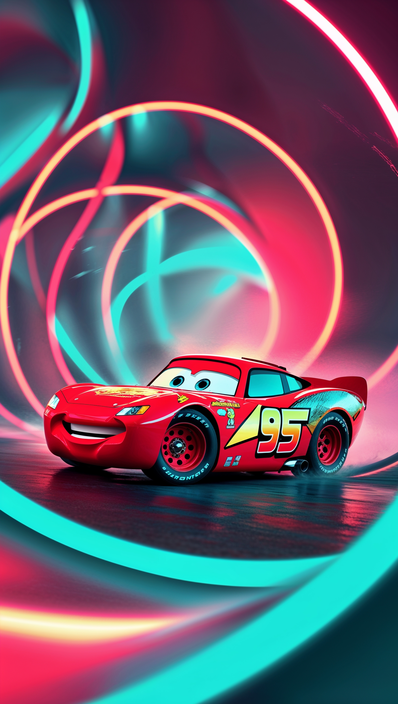 Lightning McQueen in a fantasy world with colorful effects, ideal for iPhone wallpaper 1664x2944 Lightning McQueen in a fantasy world with colorful effects, ideal for iPhone wallpaper