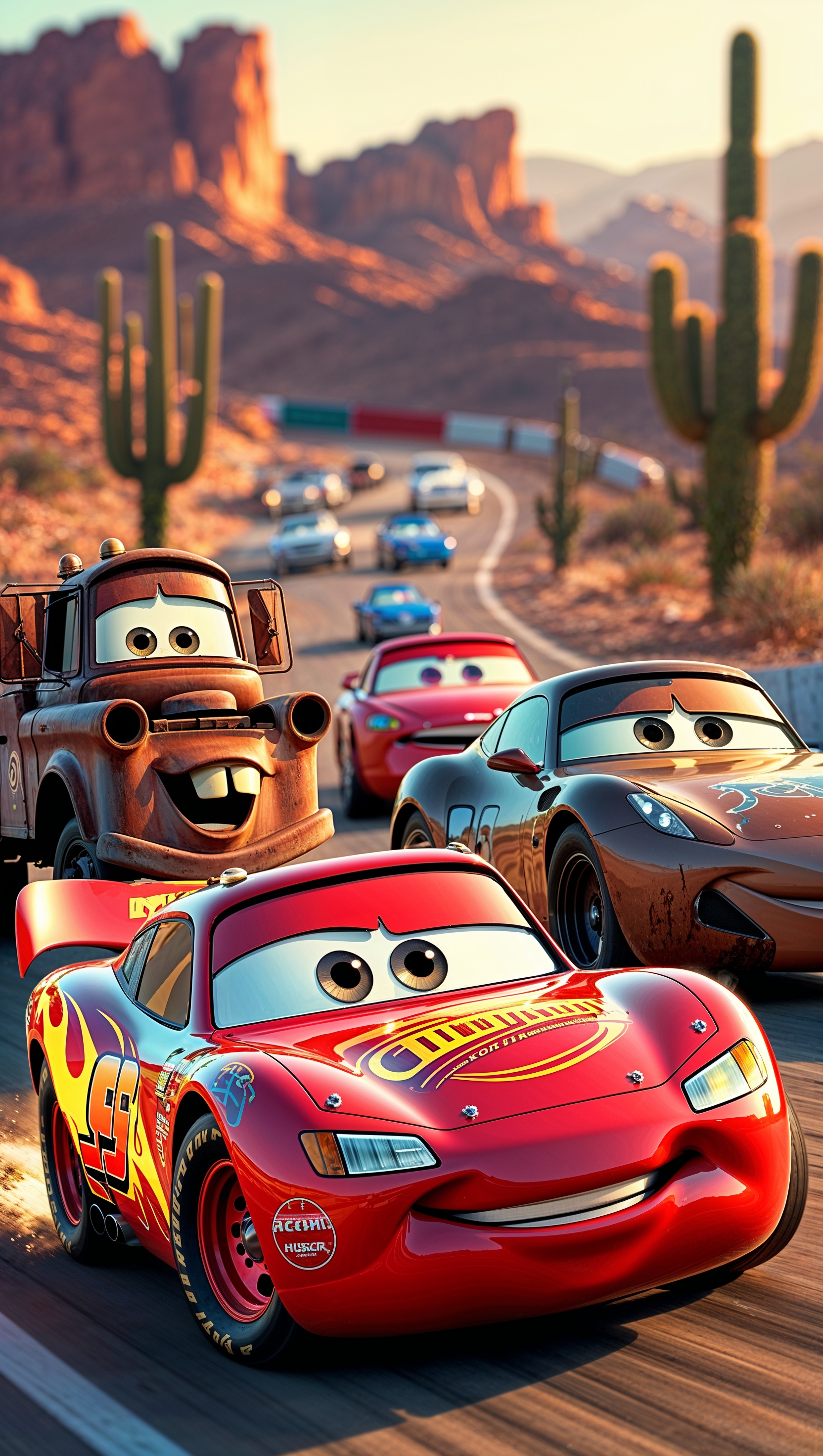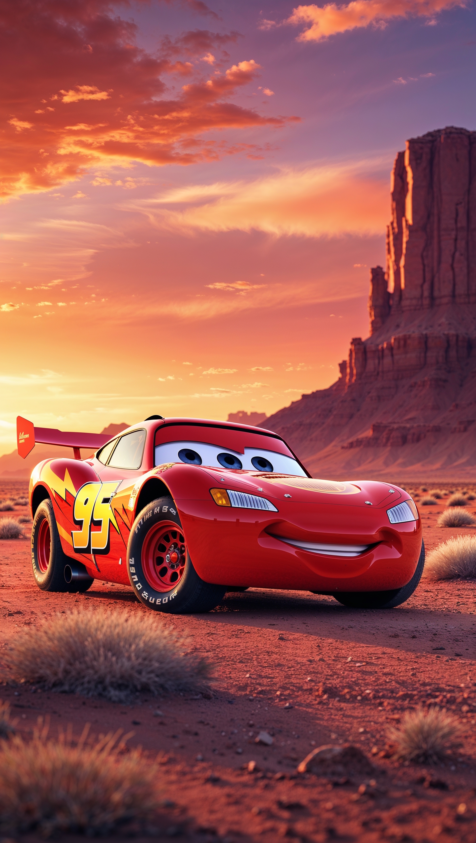 Lightning McQueen in the desert with a sunset, ideal for iPhone wallpaper 1664x2944 Lightning McQueen in the desert with a sunset, ideal for iPhone wallpaper