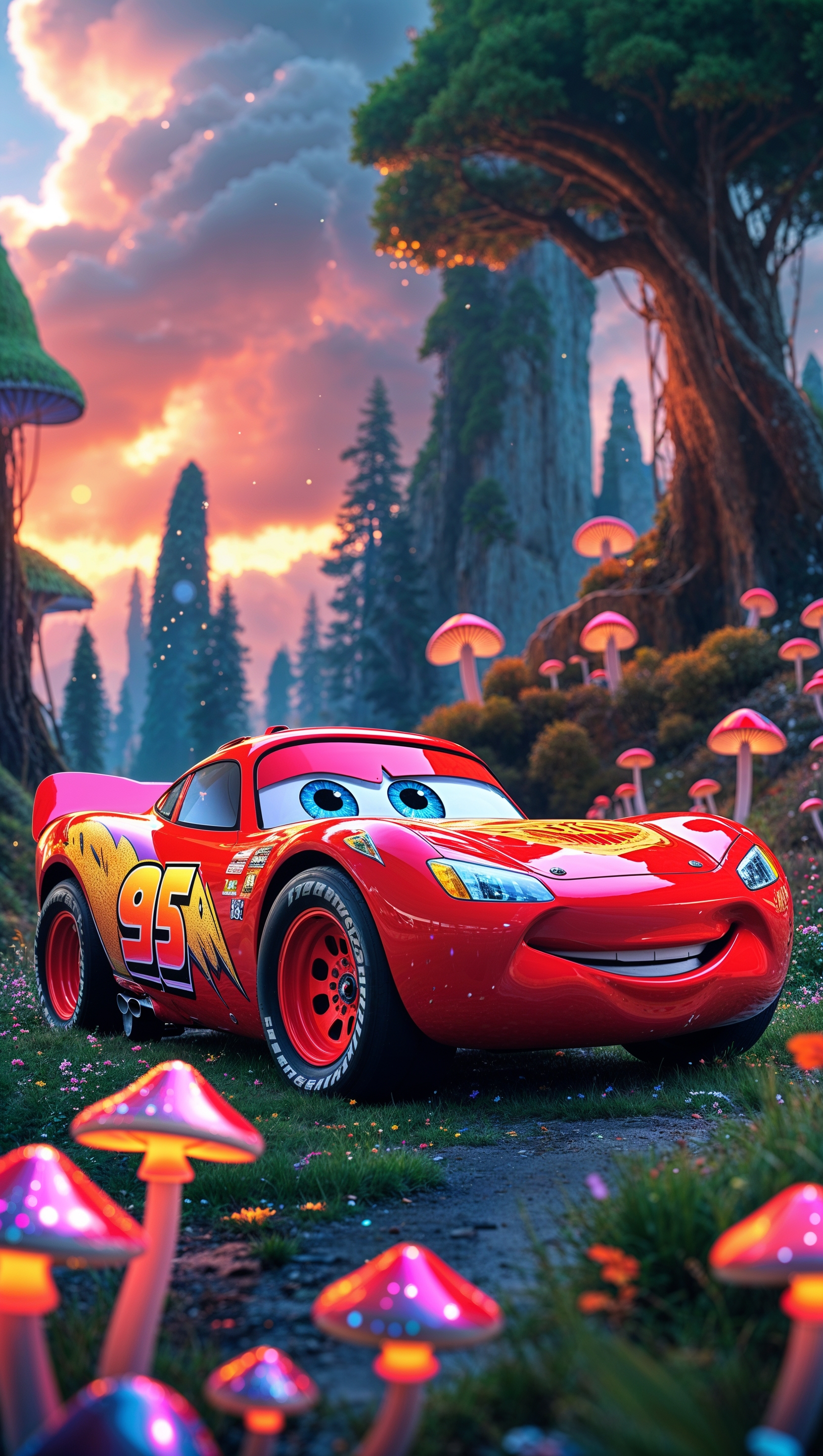 A fantasy-style illustration of Lightning McQueen in a magical world for iPhone wallpaper 1664x2944 A fantasy-style illustration of Lightning McQueen in a magical world for iPhone wallpaper