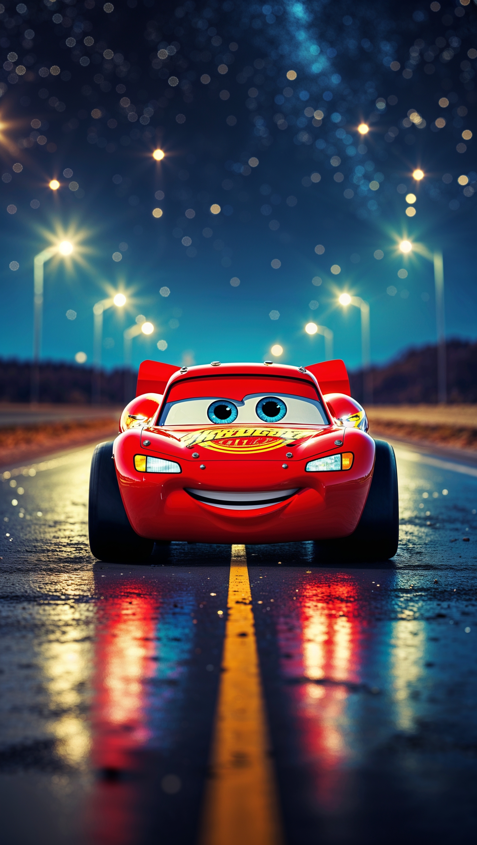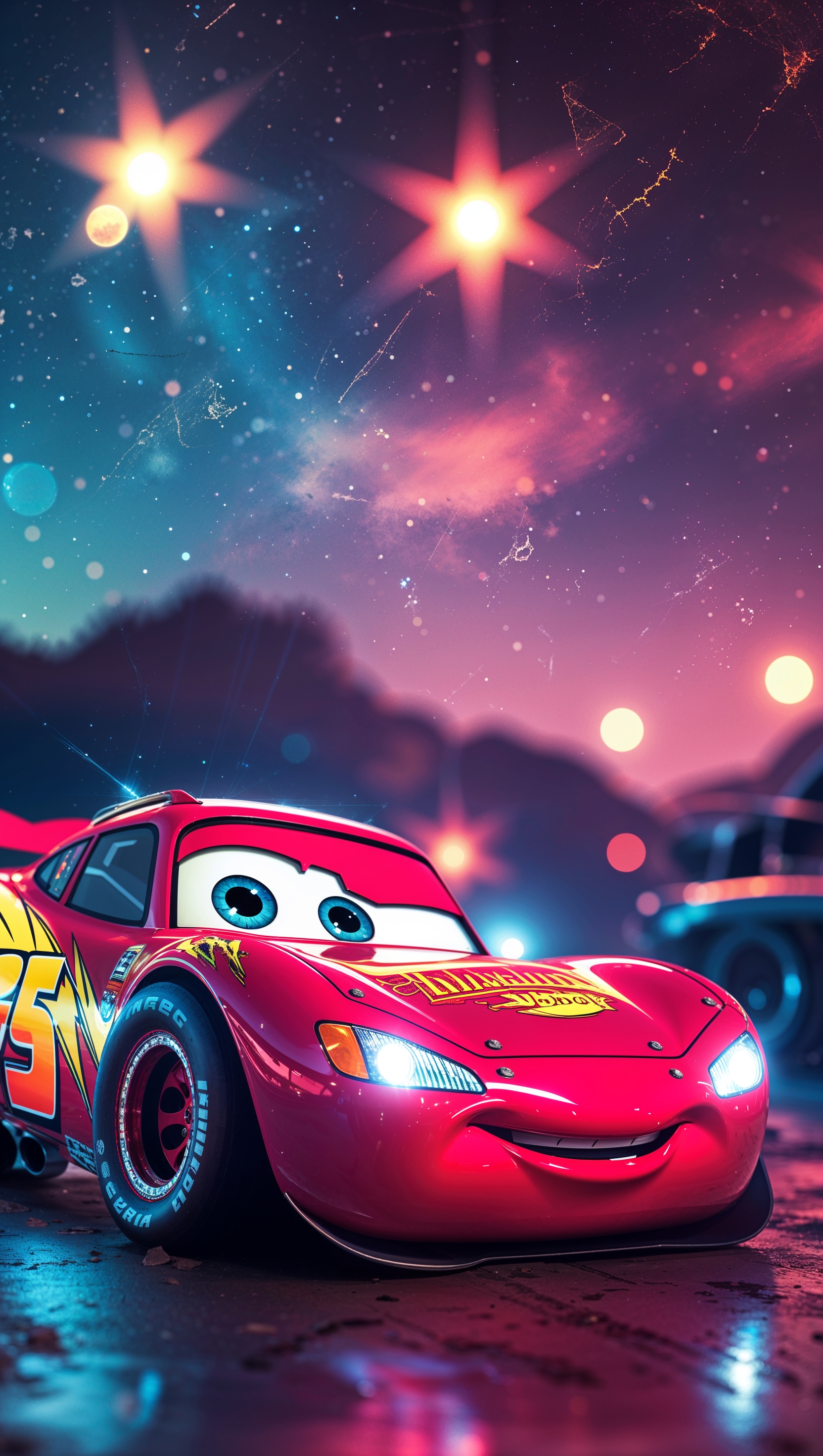 Lightning McQueen at night with shining stars in the sky, perfect for iPhone wallpaper 1664x2944 Lightning McQueen at night with shining stars in the sky, perfect for iPhone wallpaper