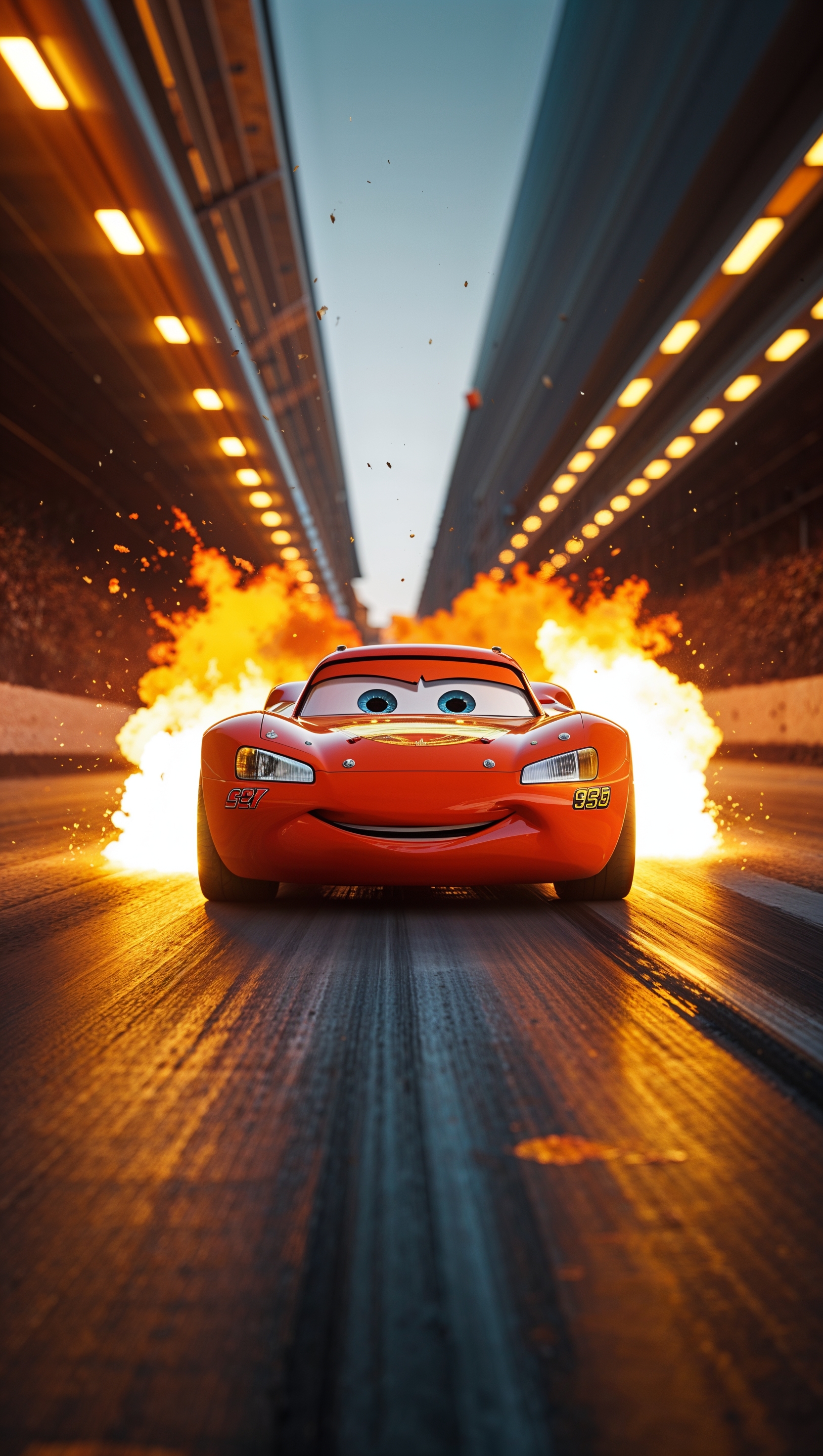 Lightning McQueen with fiery effects speeding forward, ideal for iPhone wallpaper 1664x2944 Lightning McQueen with fiery effects speeding forward, ideal for iPhone wallpaper