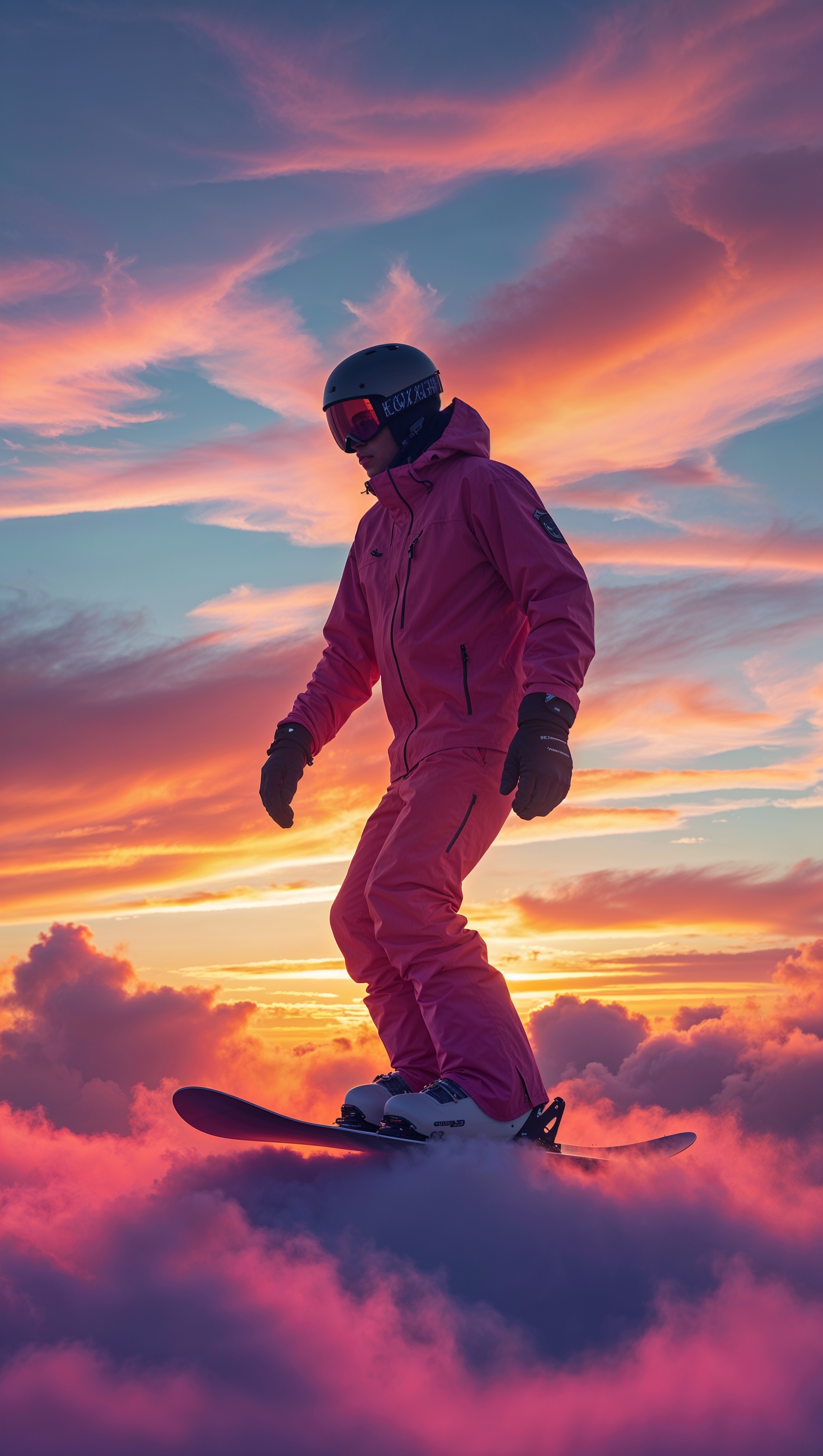1664x2944 Snowboarder silhouette against a sunset sky, artistic iPhone wallpaper