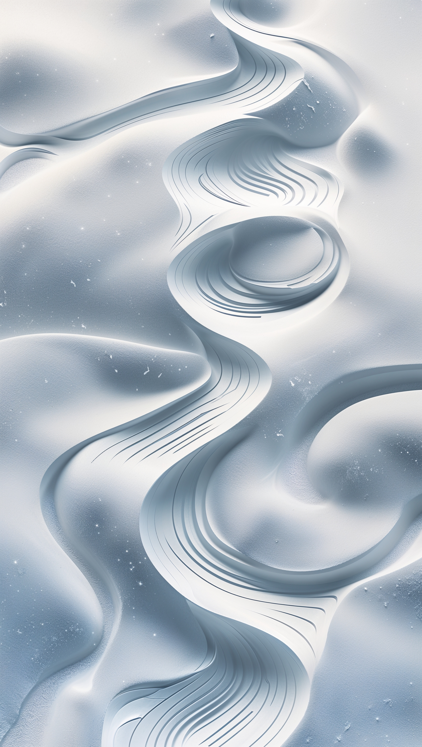 1664x2944 Abstract snowboard trail patterns in fresh snow, top-down view, minimal wallpaper
