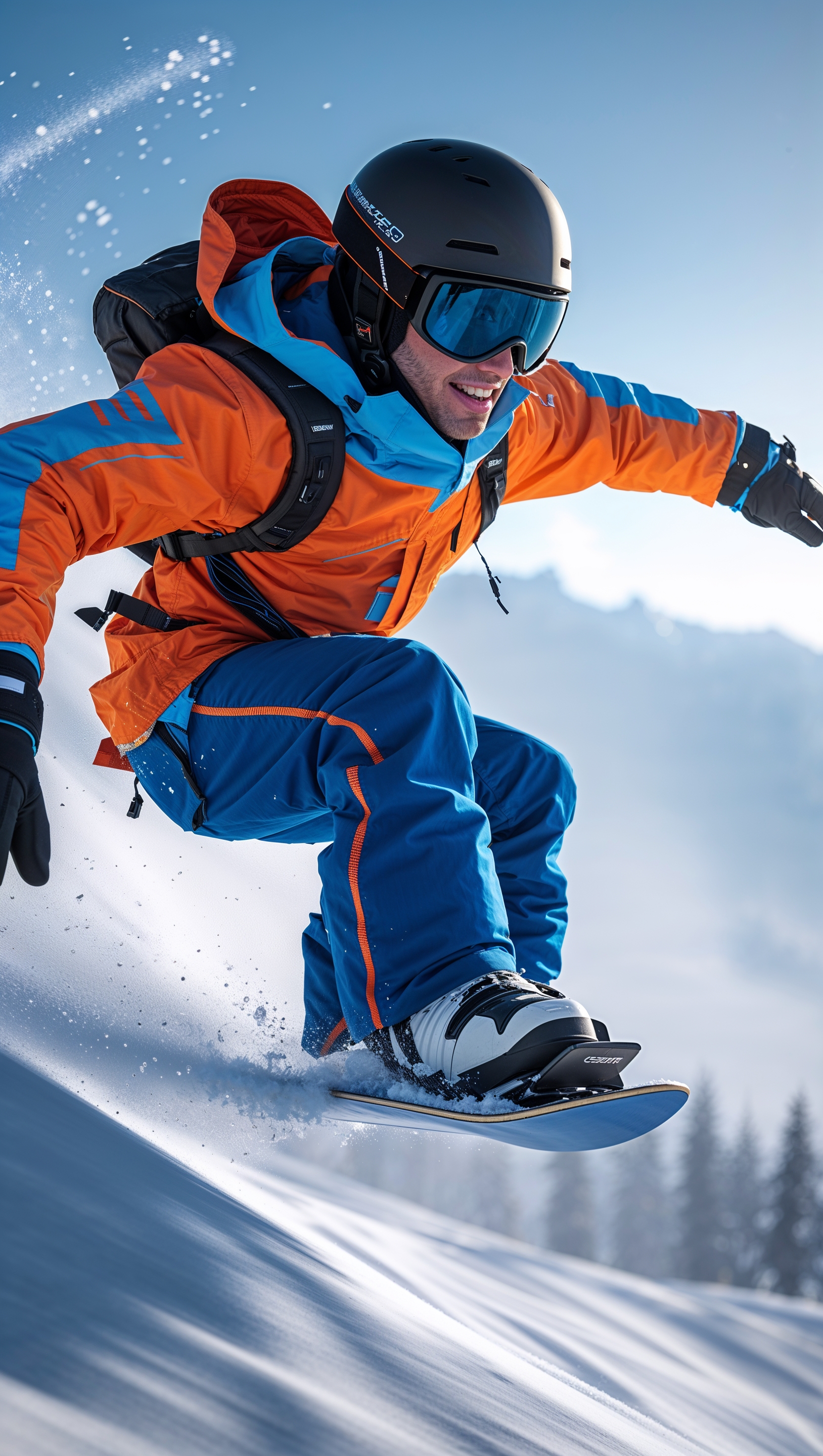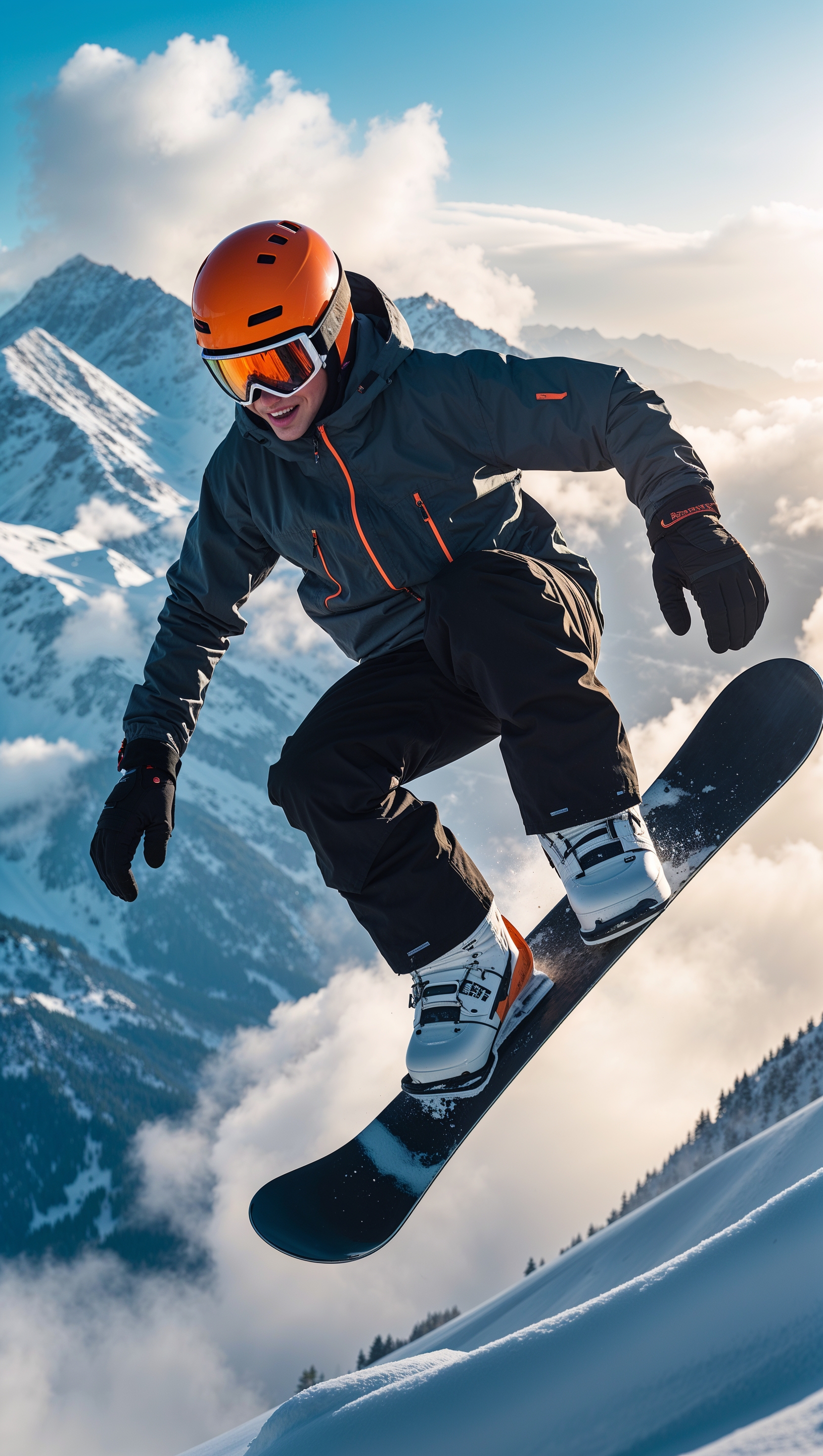 1664x2944 Snowboarder with a GoPro camera on helmet, action shot style
