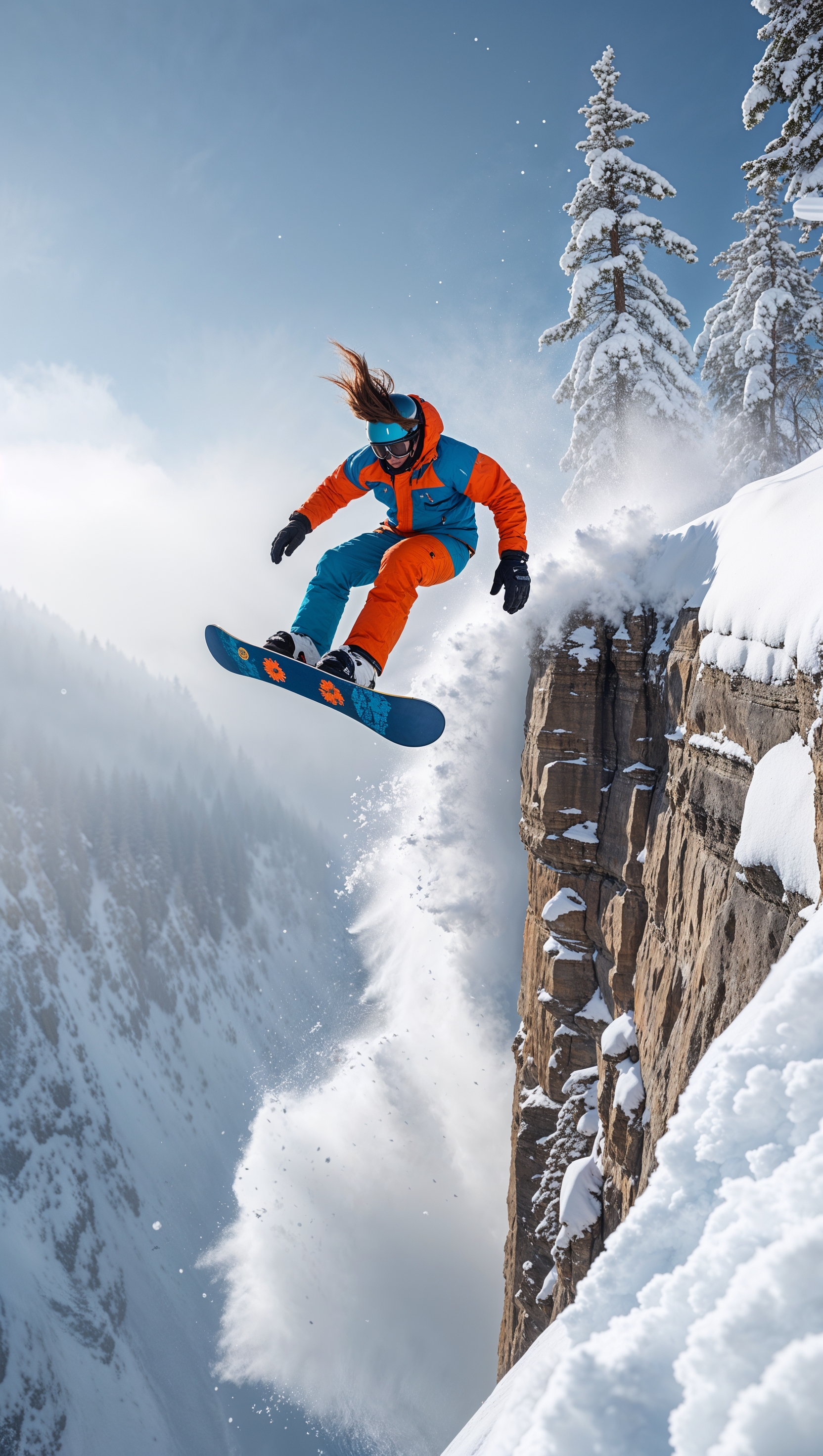 1664x2944 Snowboarder jumping off a cliff into powder snow, epic moment