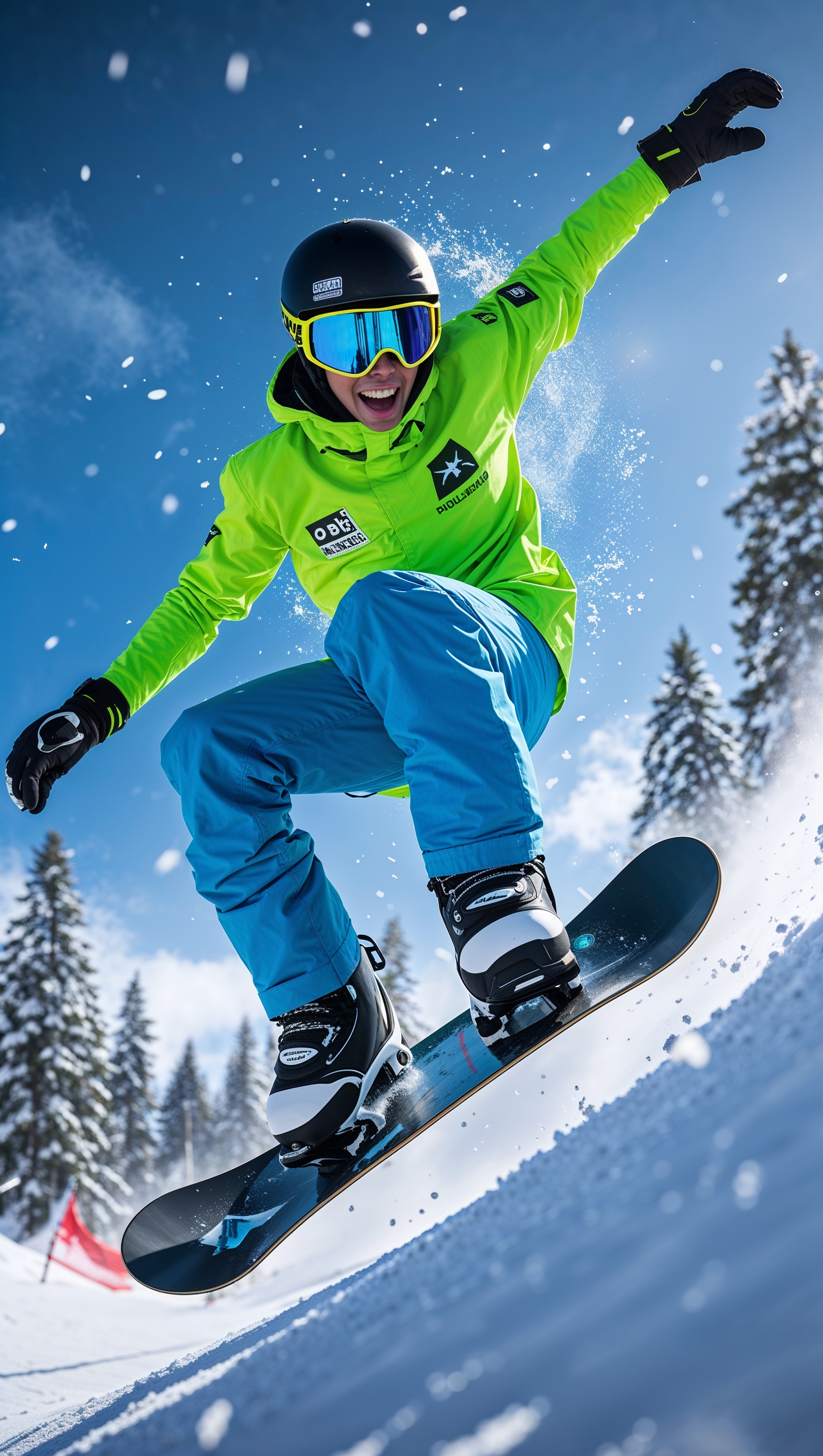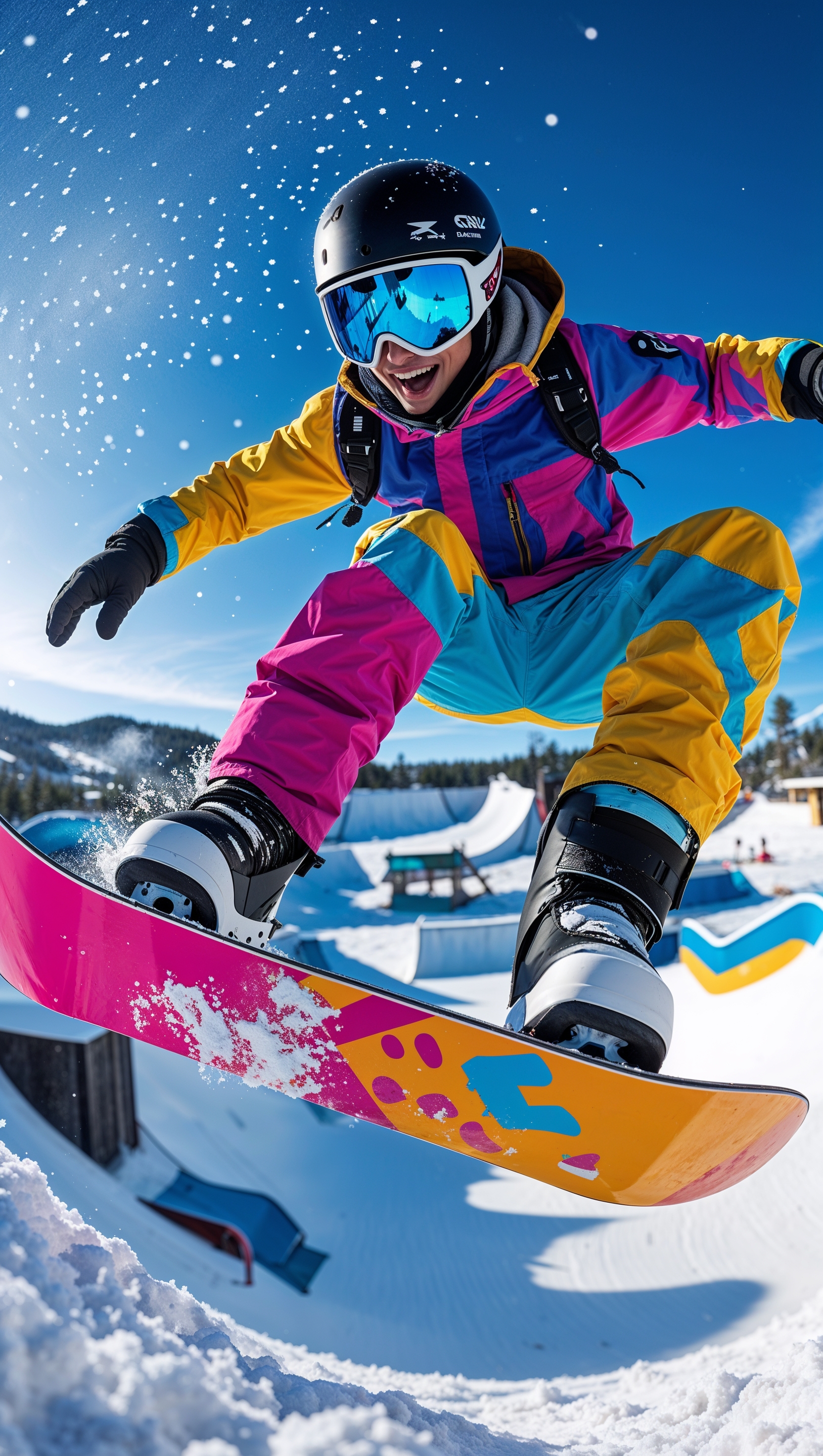 1664x2944 Snowboarder doing tricks at a snow park, colorful and fun iPhone wallpaper