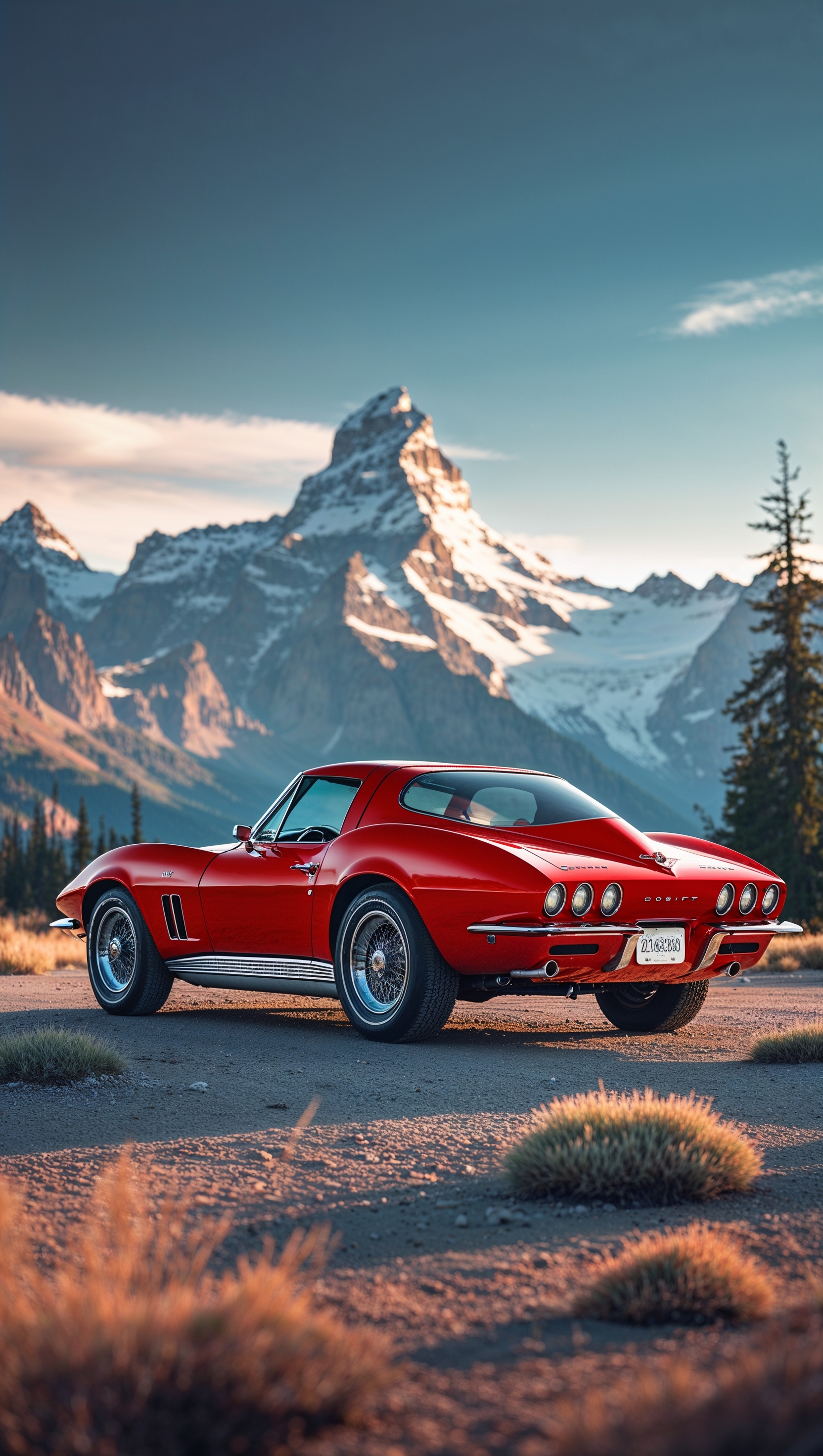 1664x2944 Classic 1967 Corvette Stingray with a mountain backdrop, iPhone wallpaper