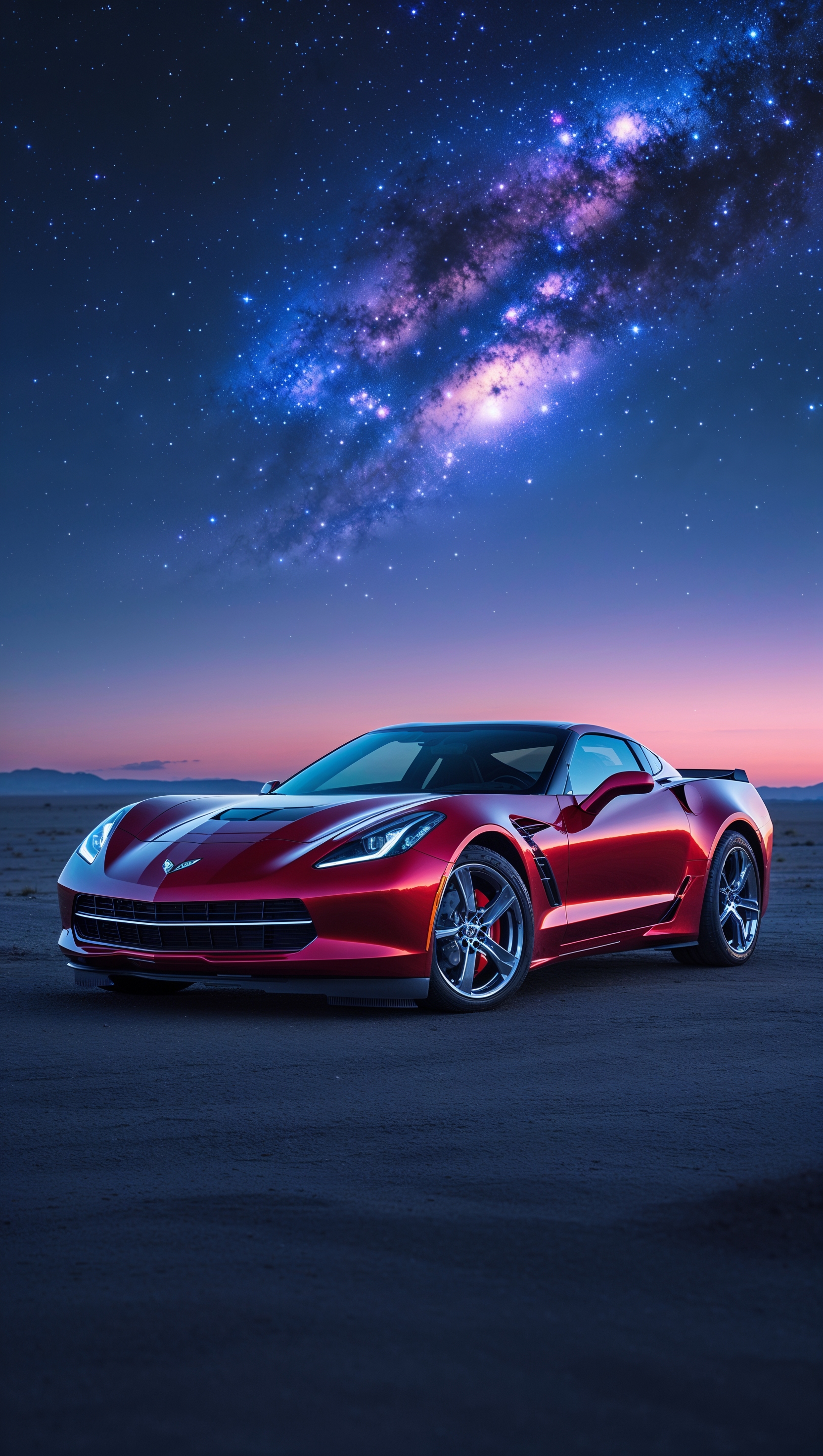 1664x2944 Corvette under the stars, night sky and galaxy background, iPhone wallpaper