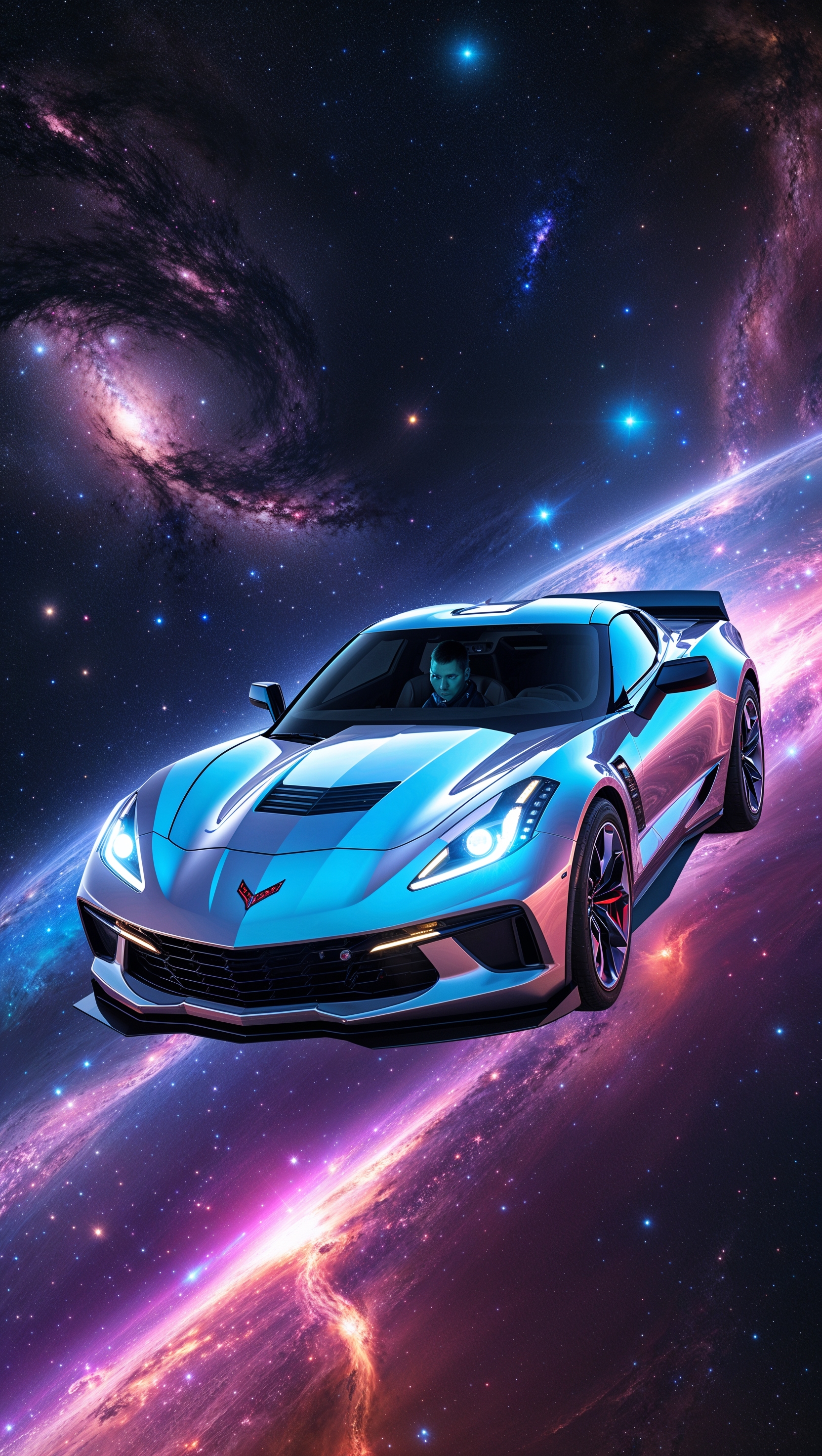 1664x2944 Corvette flying through space like a sci-fi car, surreal iPhone wallpaper