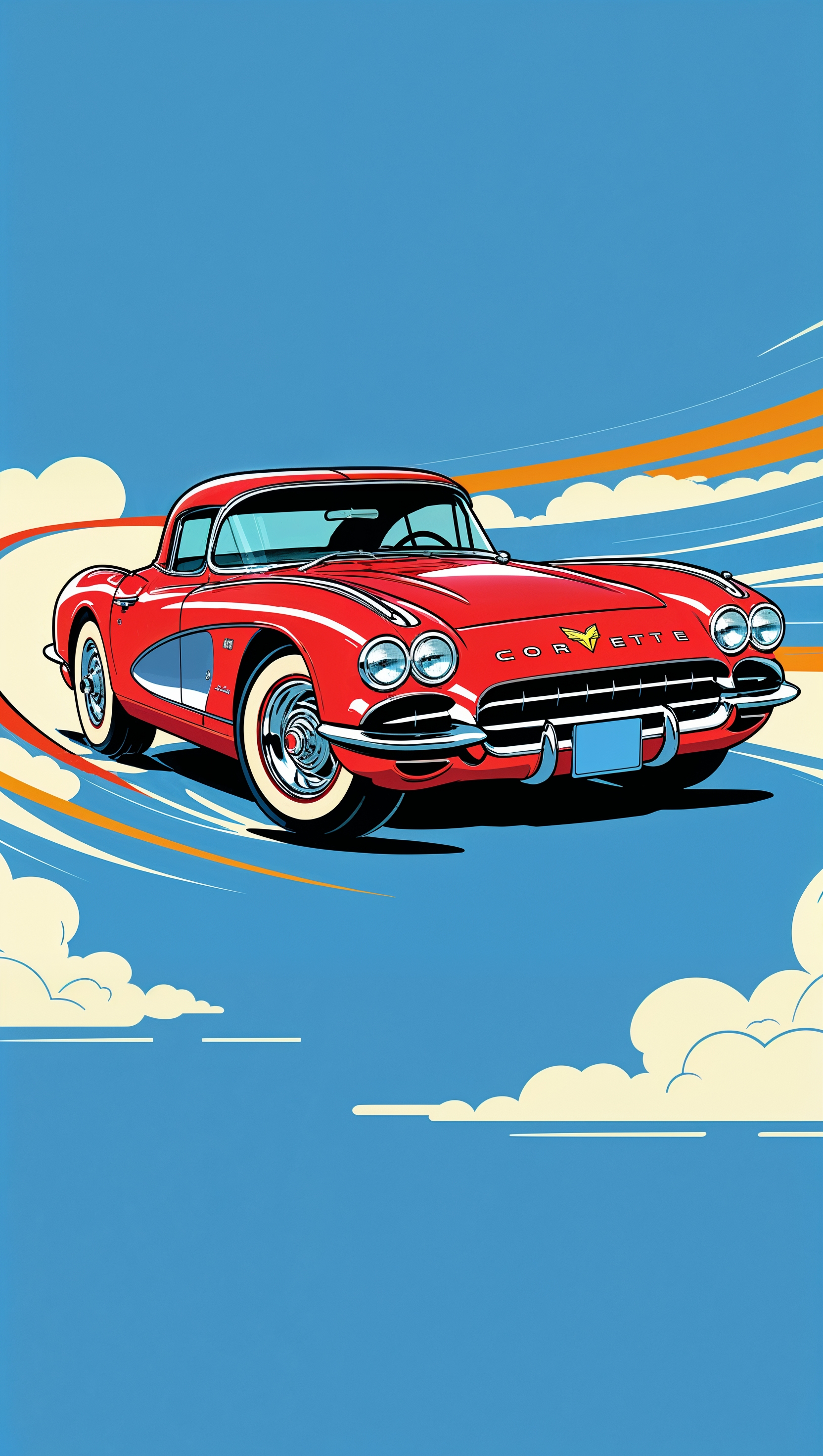 1664x2944 Corvette in a cartoon style, bold colors and fun vibe, iPhone wallpaper