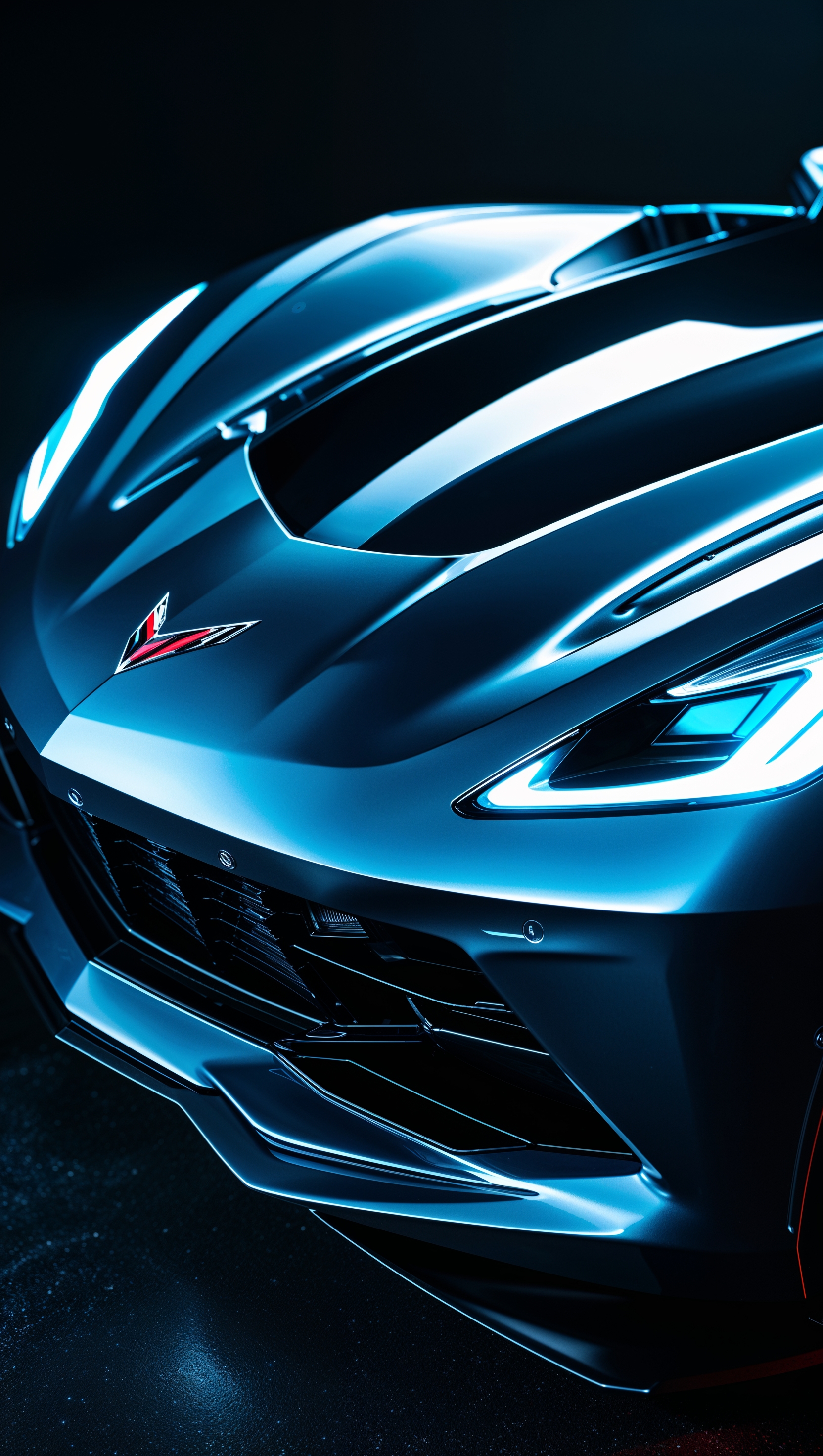 1664x2944 Corvette front close-up with aggressive headlights, powerful iPhone wallpaper