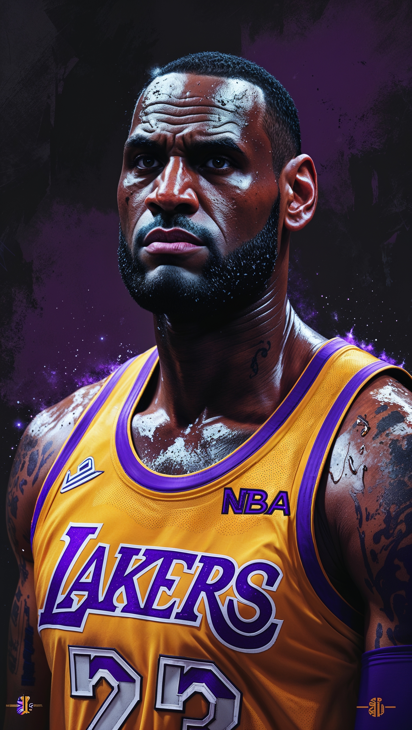 LeBron James in a Lakers jersey with a dark background 1664x2944 LeBron James in a Lakers jersey with a dark background