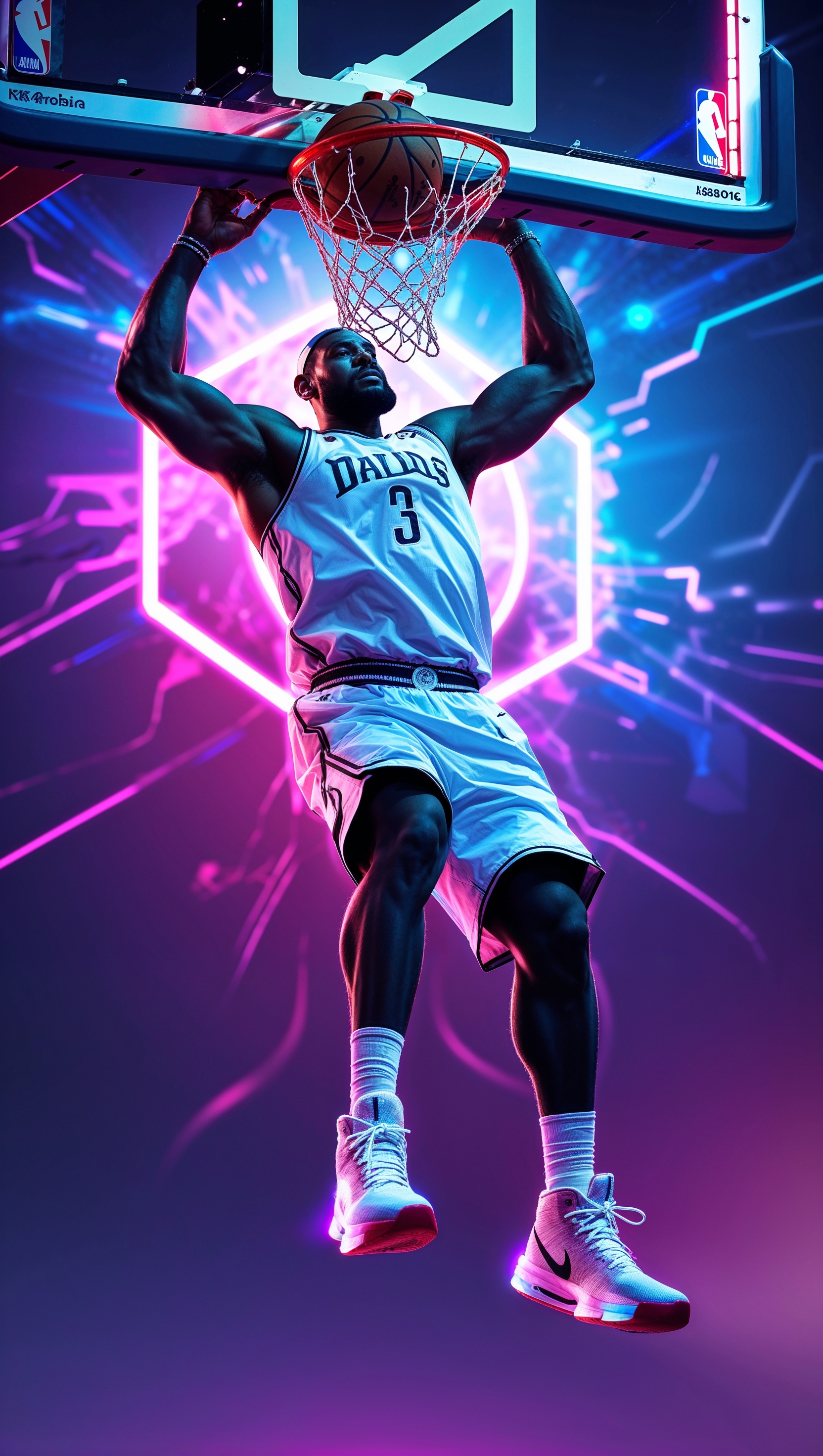 LeBron James doing a dunk with a neon background 1664x2944 LeBron James doing a dunk with a neon background