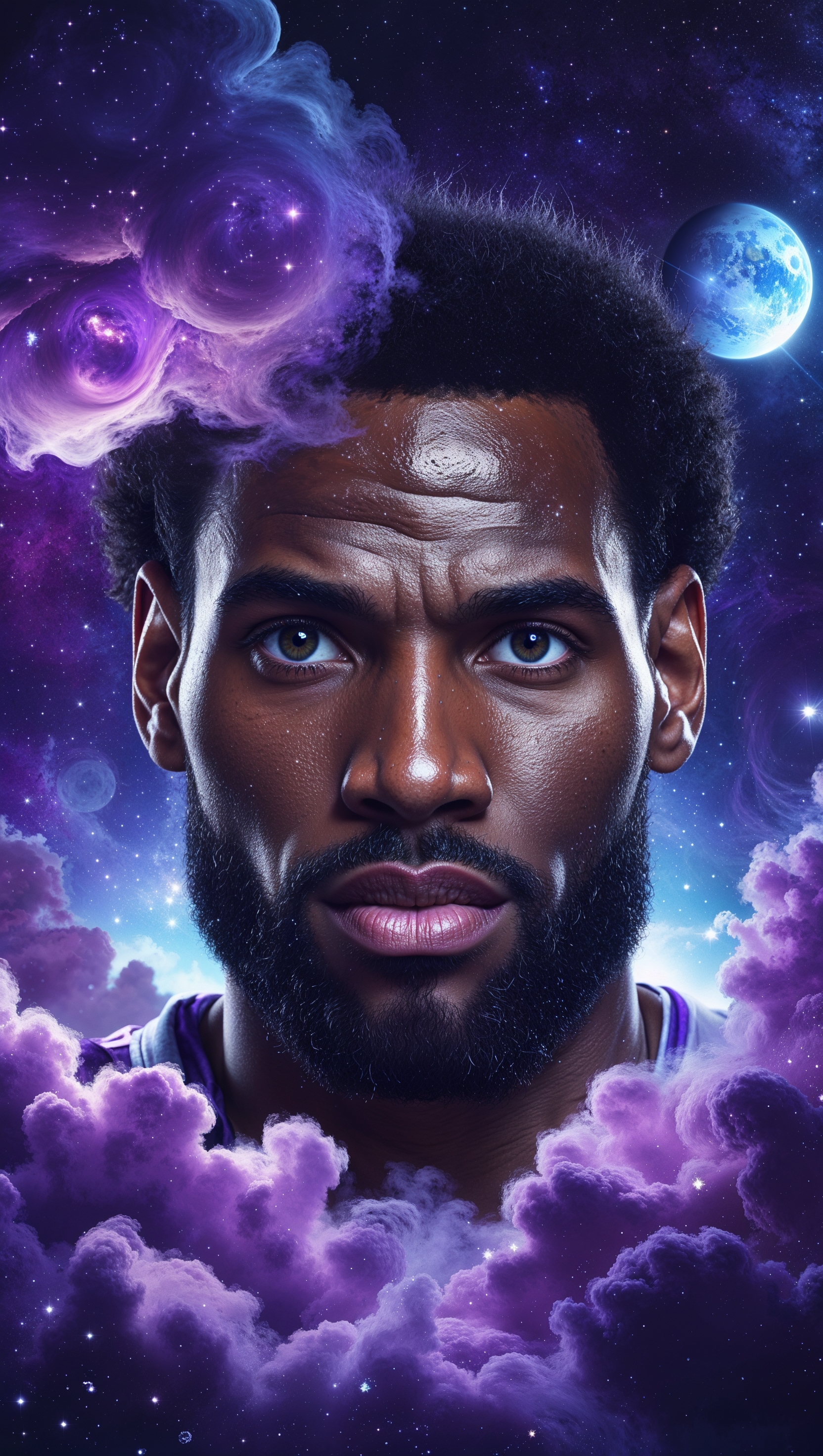LeBron James staring at the camera with a space background 1664x2944 LeBron James staring at the camera with a space background