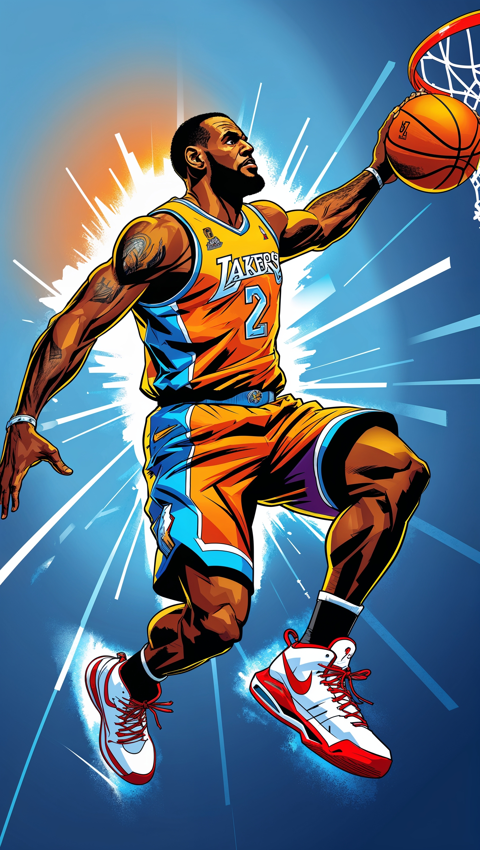 Comic-style image of LeBron James jumping 1664x2944 Comic-style image of LeBron James jumping