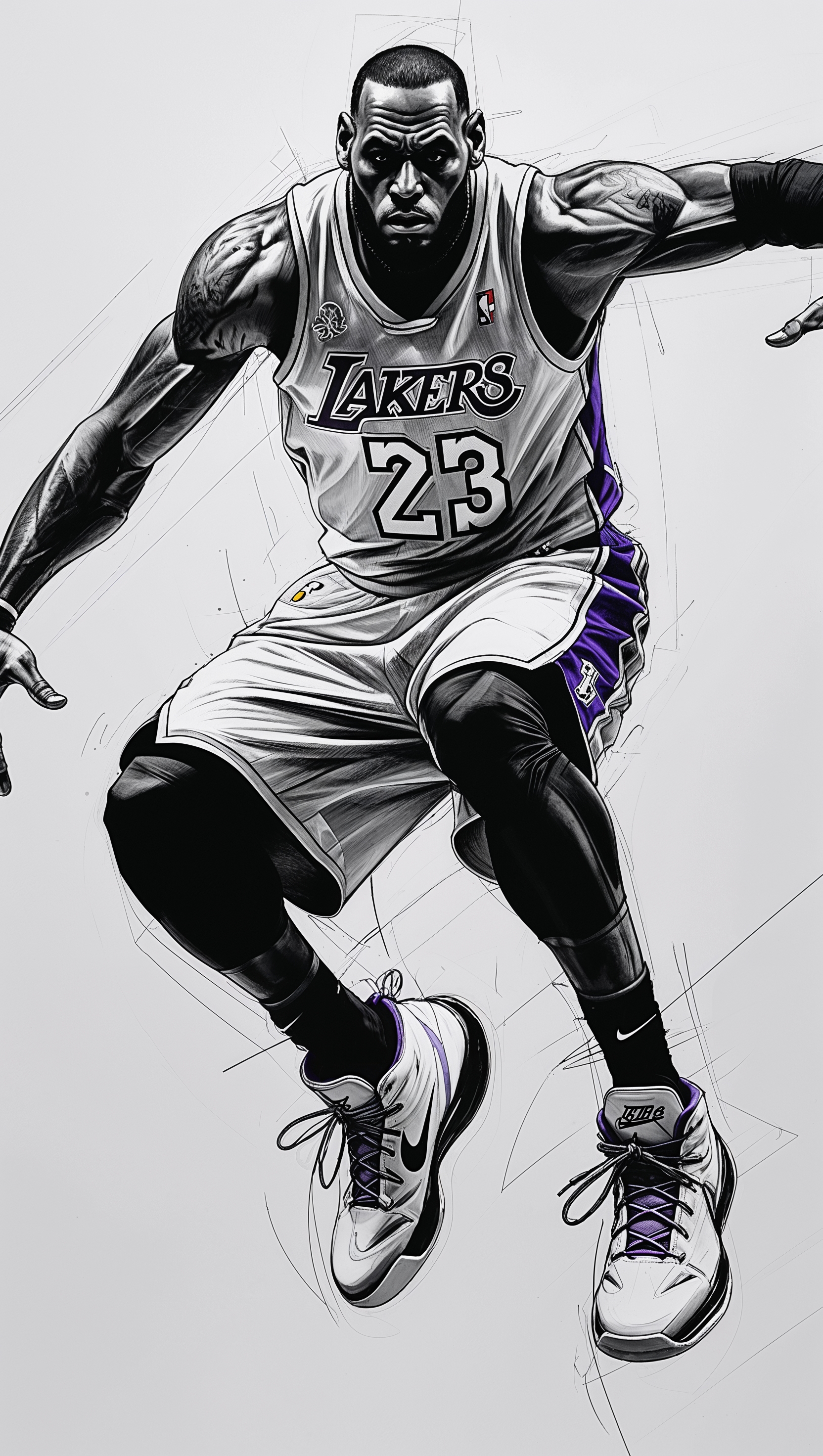 Black and white sketch of LeBron James in action 1664x2944 Black and white sketch of LeBron James in action