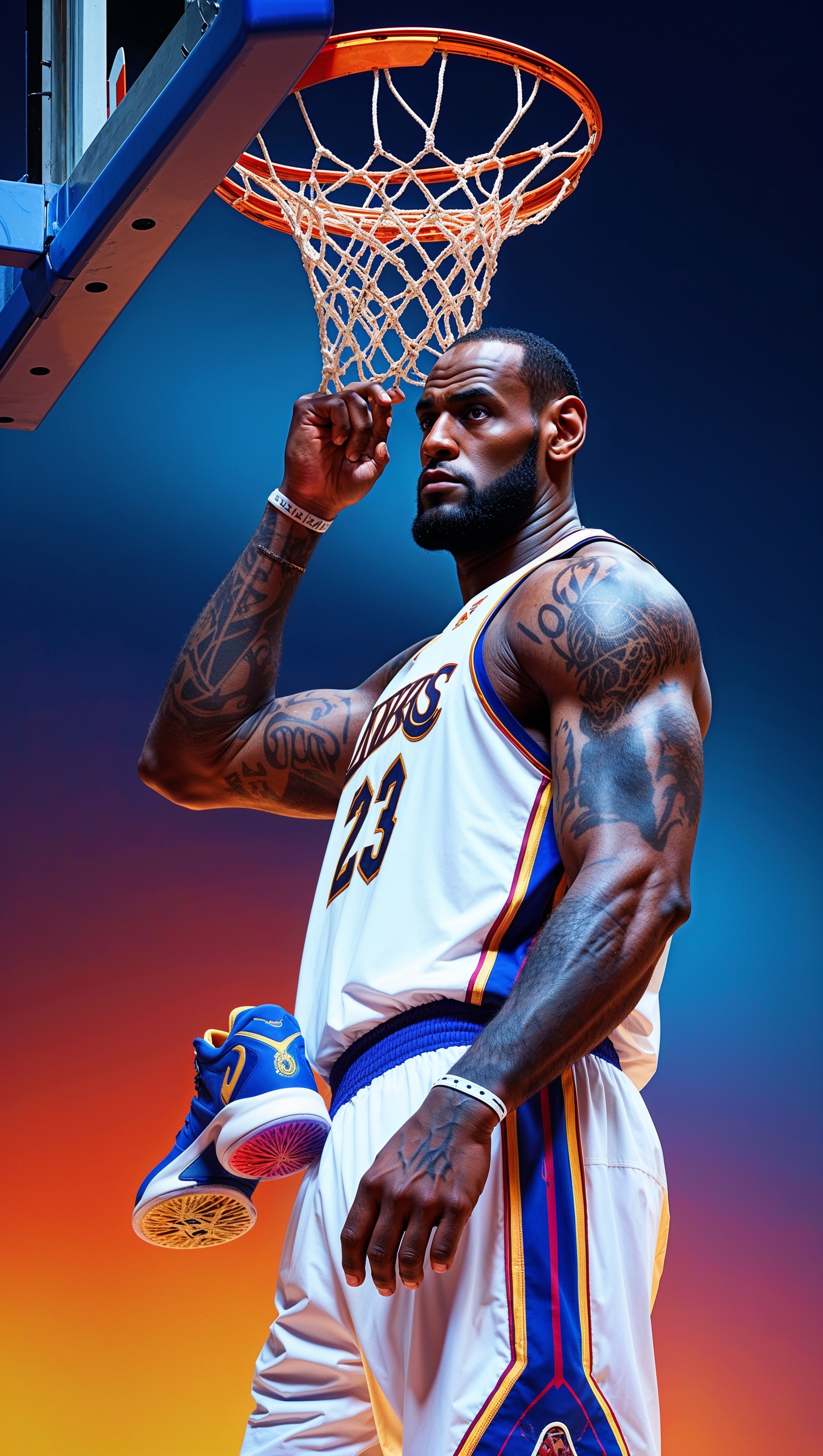 LeBron James near the hoop with a gradient background 1664x2944 LeBron James near the hoop with a gradient background