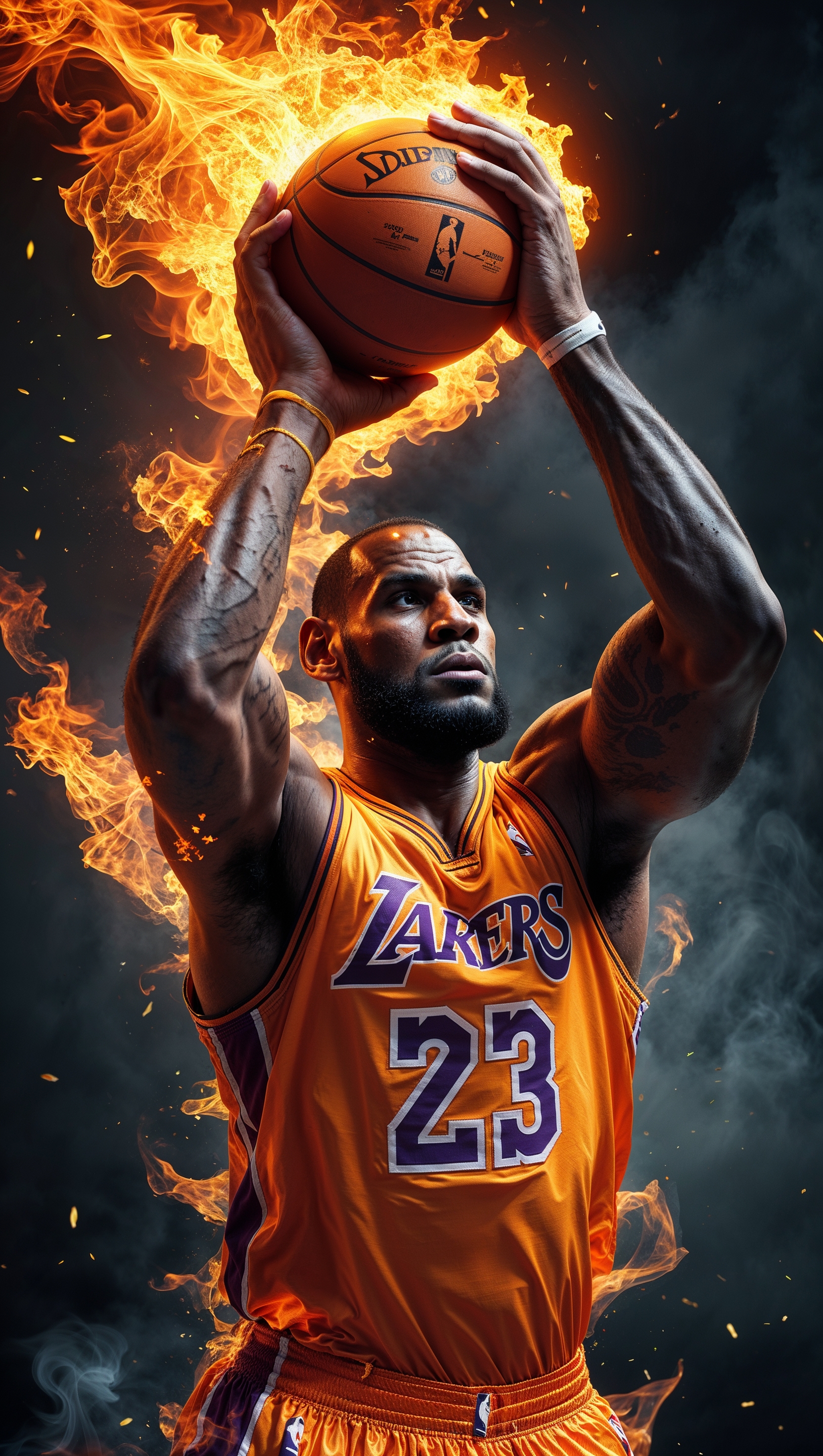LeBron James shooting with fire effect 1664x2944 LeBron James shooting with fire effect
