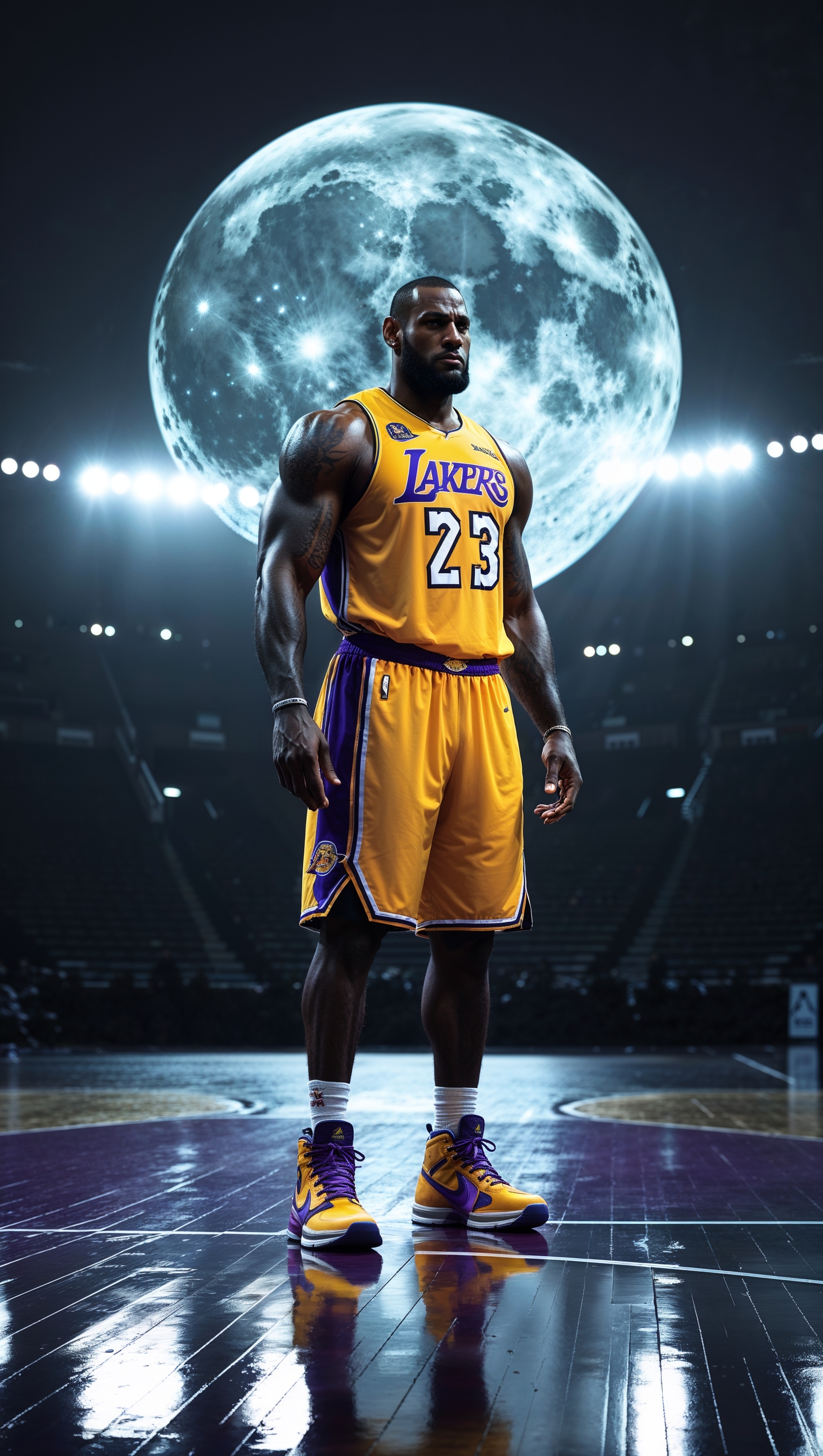 LeBron James on a basketball court under moonlight 1664x2944 LeBron James on a basketball court under moonlight
