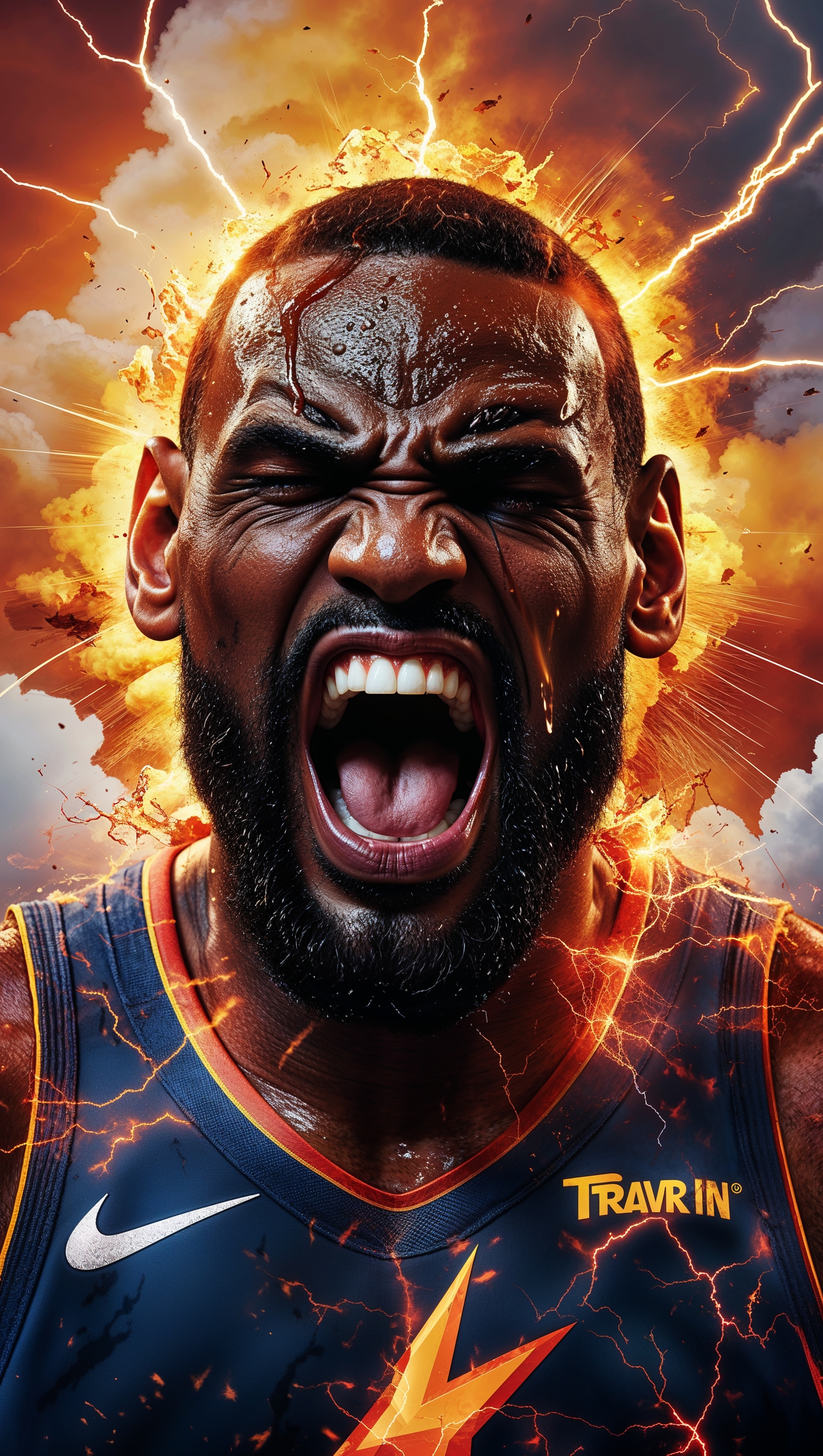 LeBron James screaming with an explosive background 1664x2944 LeBron James screaming with an explosive background