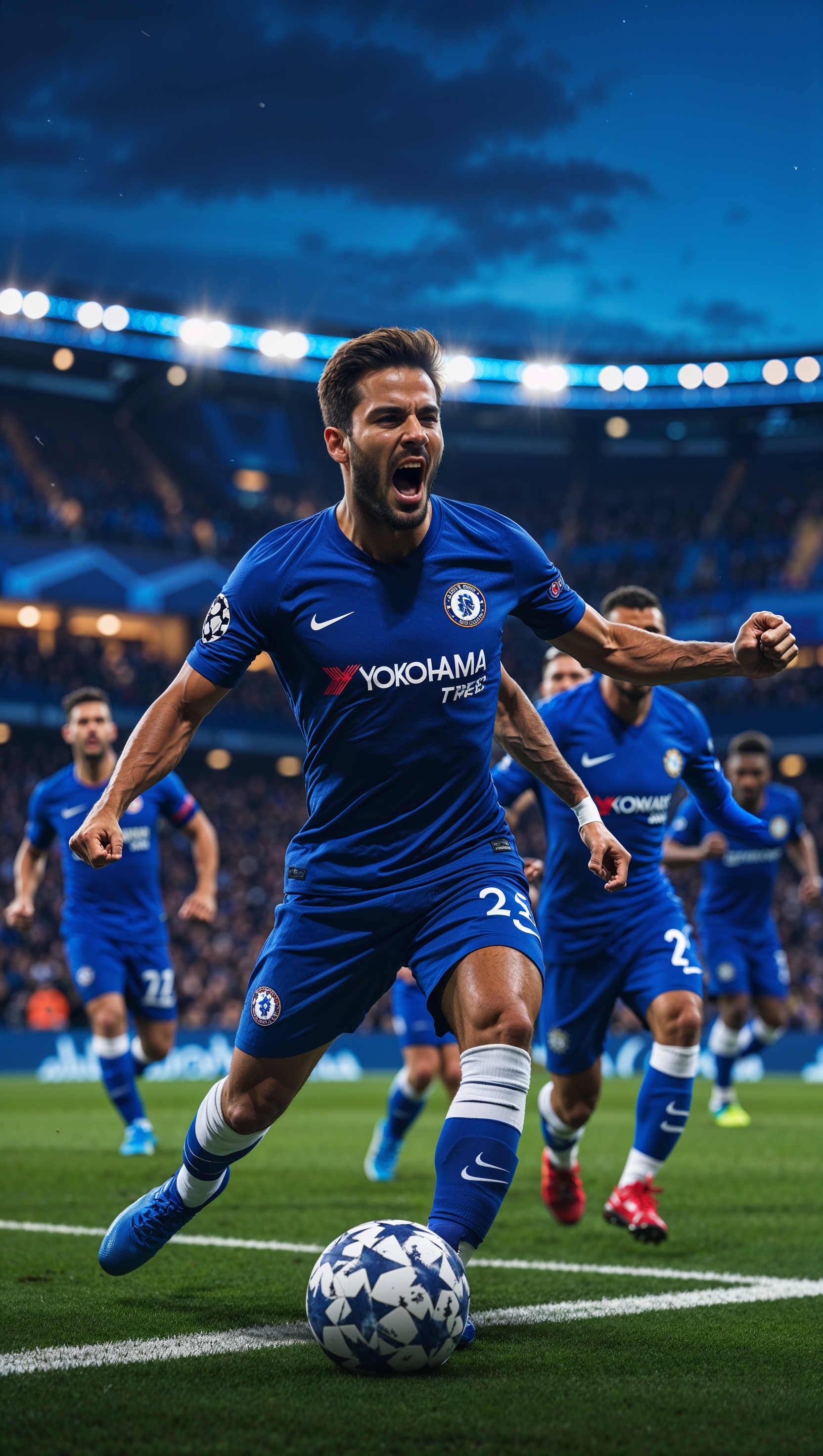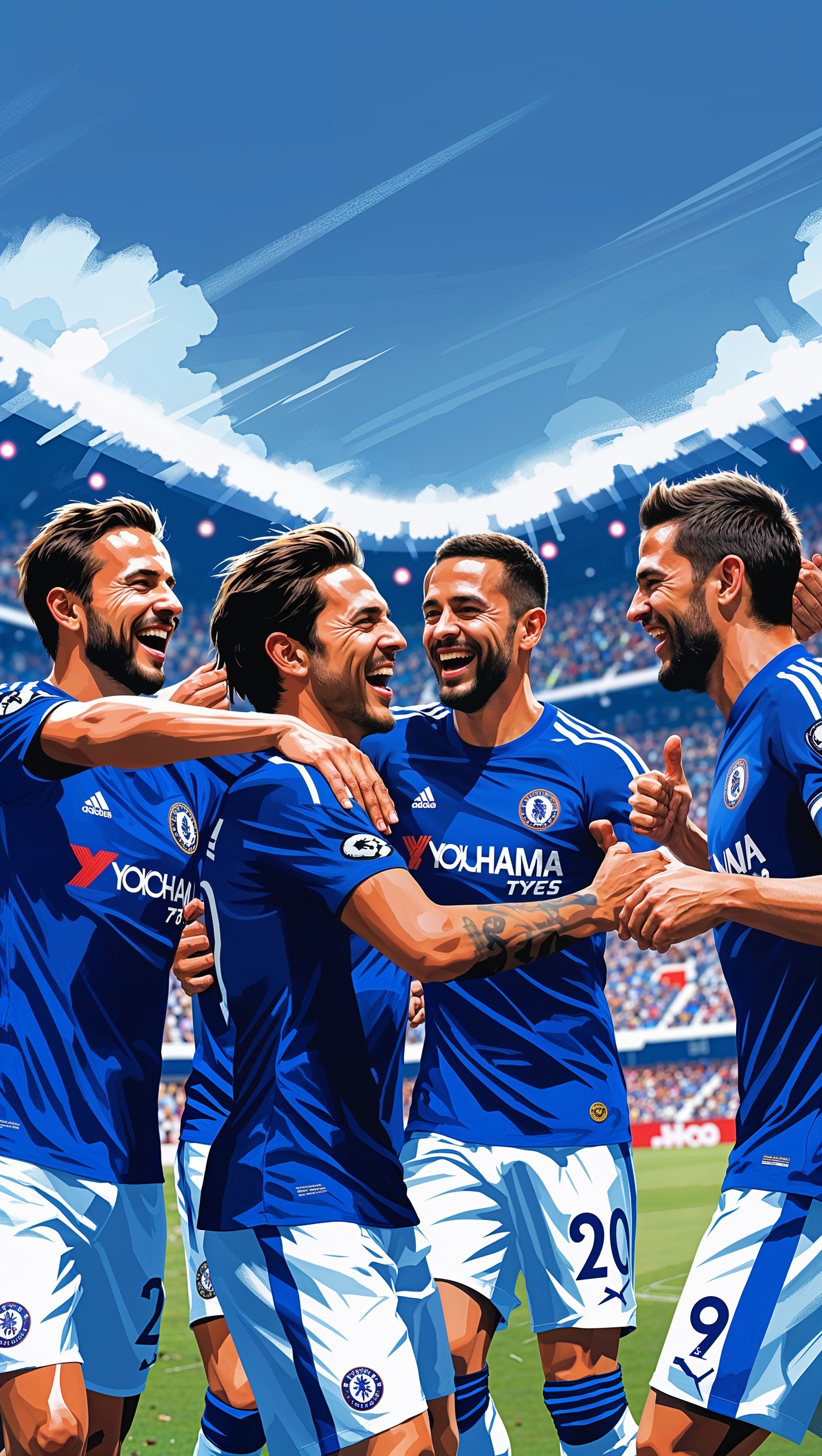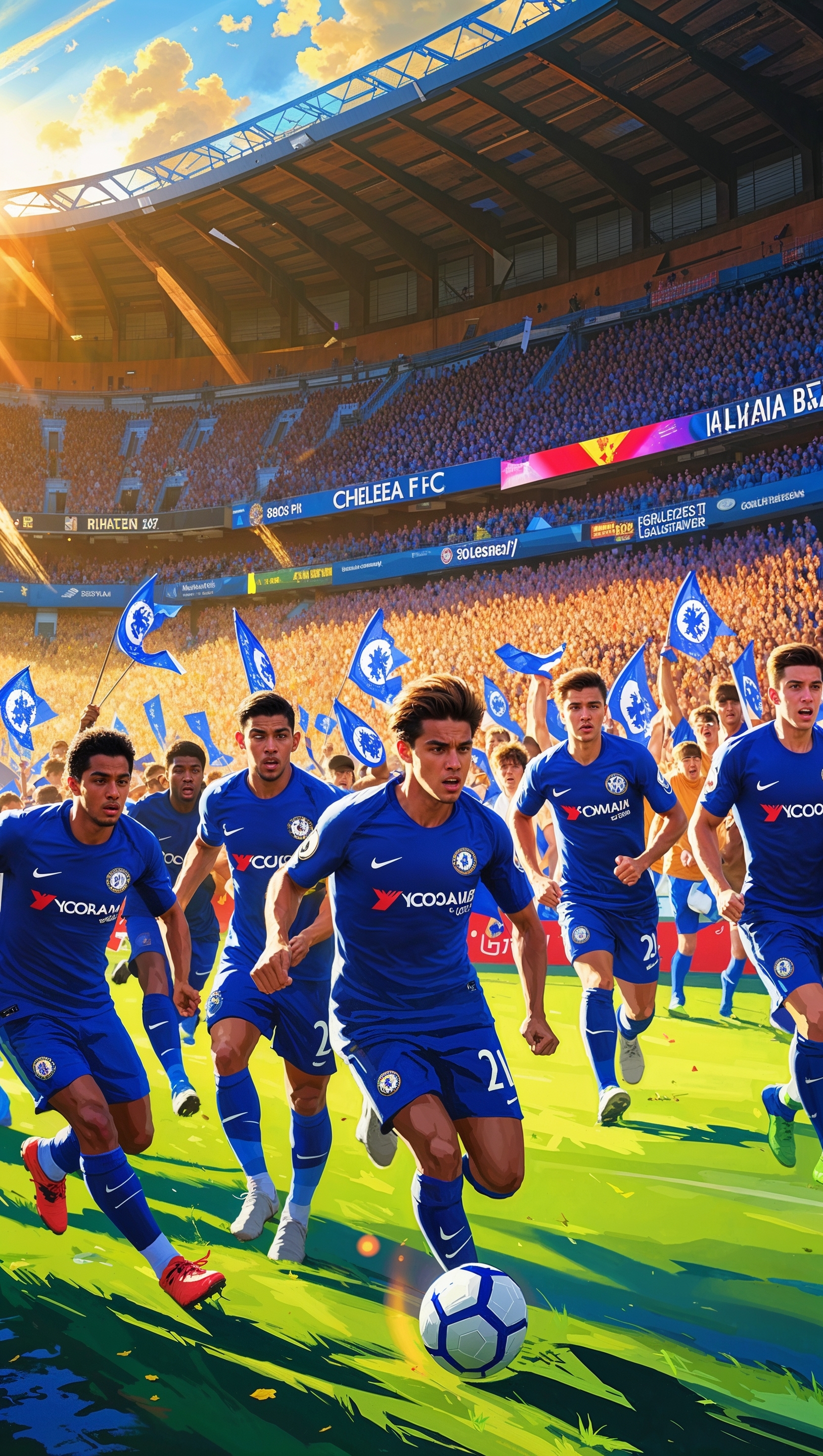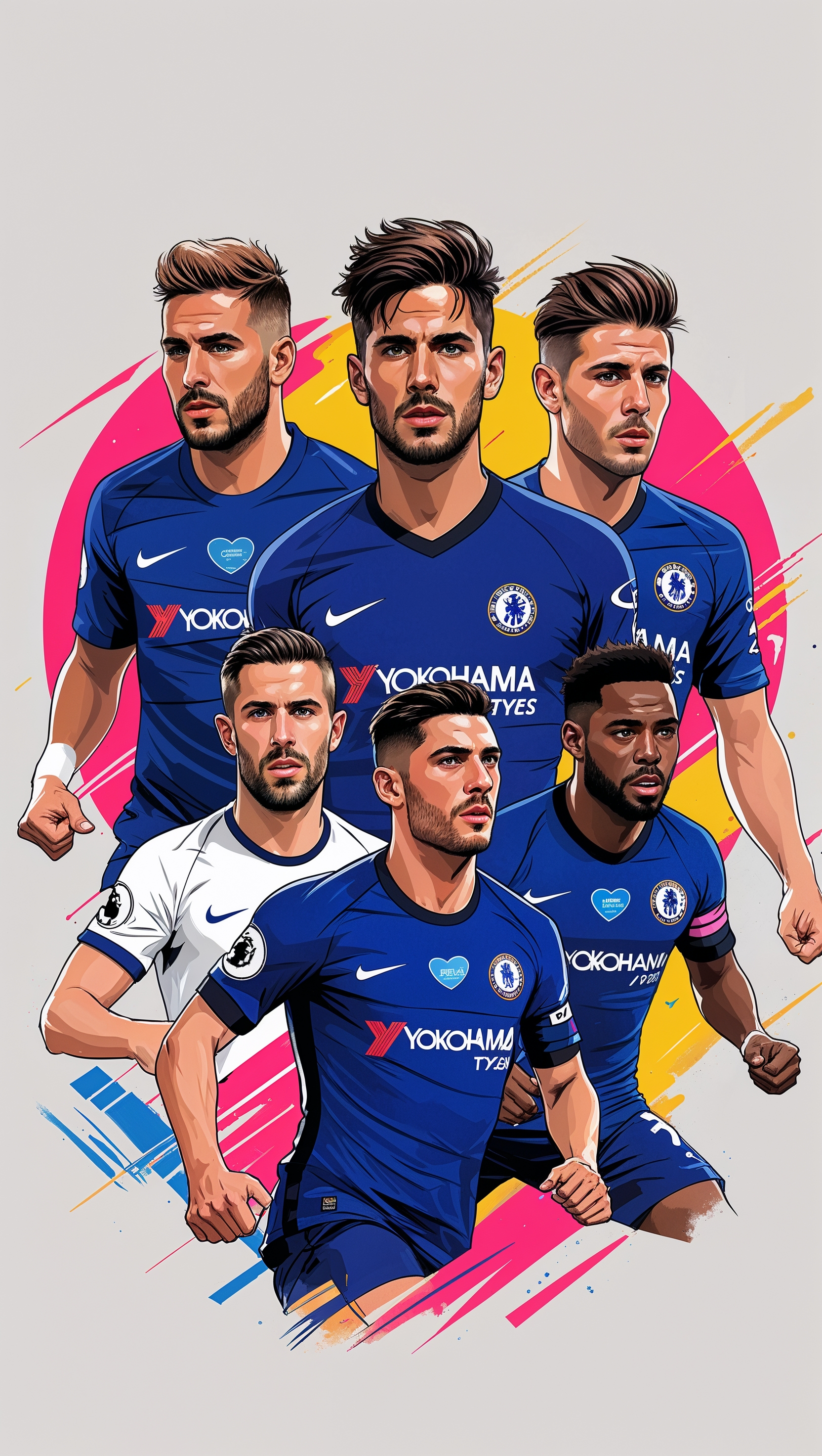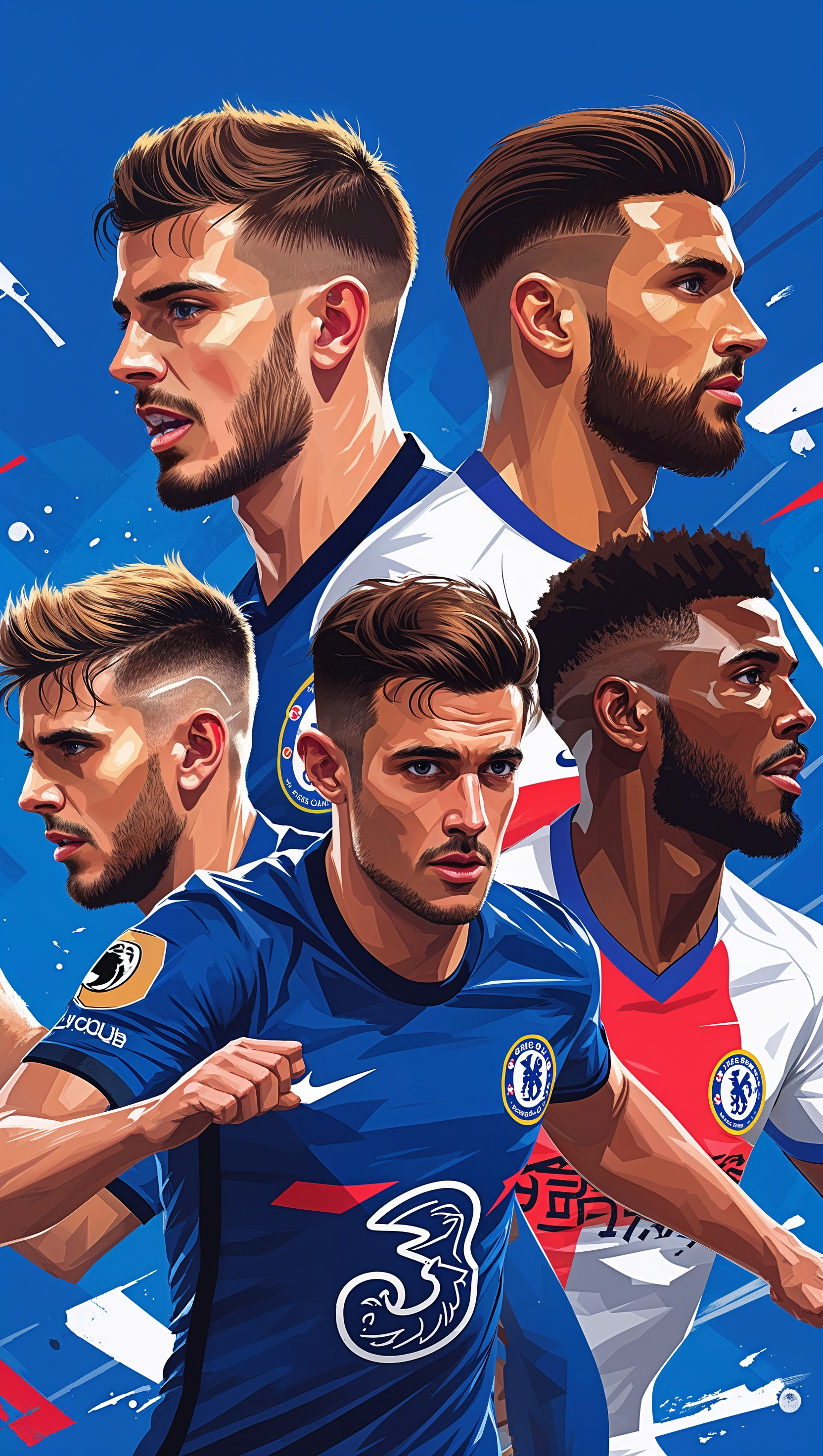 1664x2944 A digital design of Chelsea players in an attacking pose