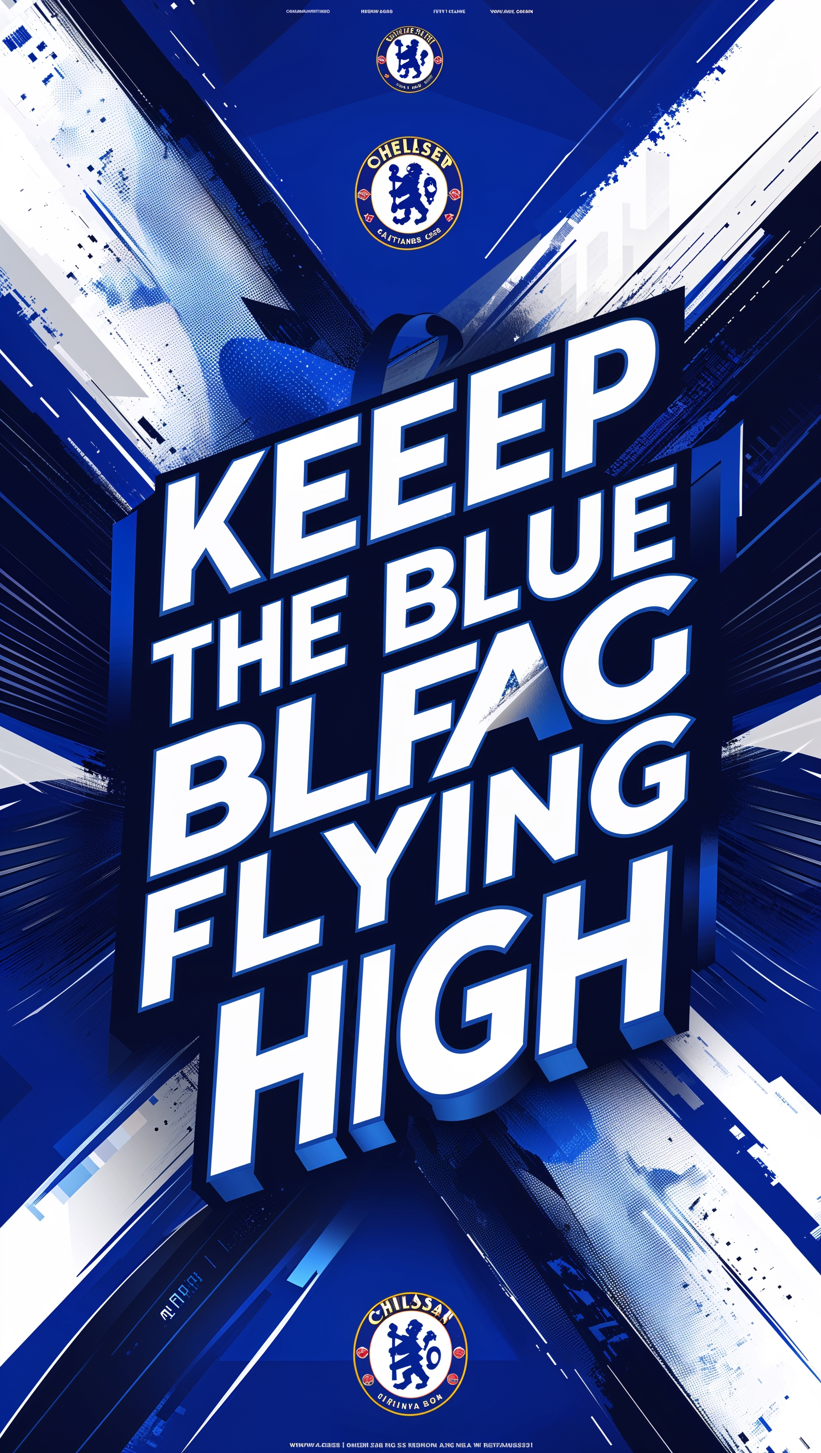 1664x2944 A vibrant wallpaper with Chelsea FC's team colors and slogan