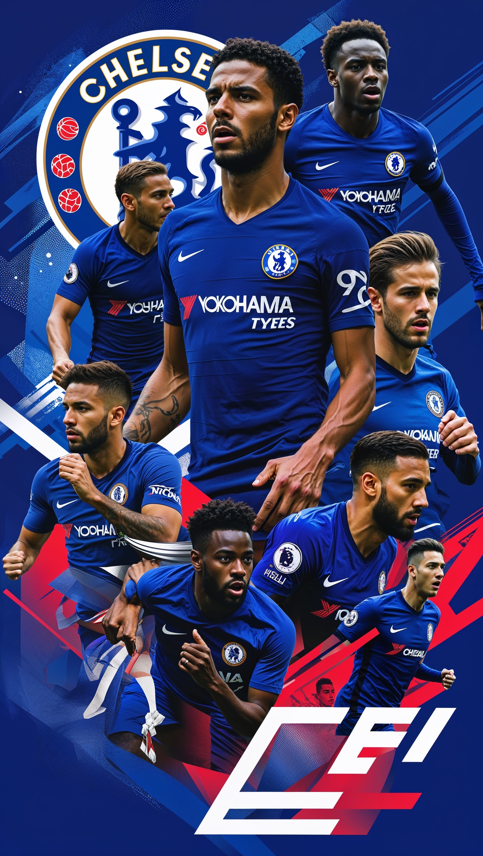 1664x2944 A graphic design wallpaper featuring Chelsea players in action
