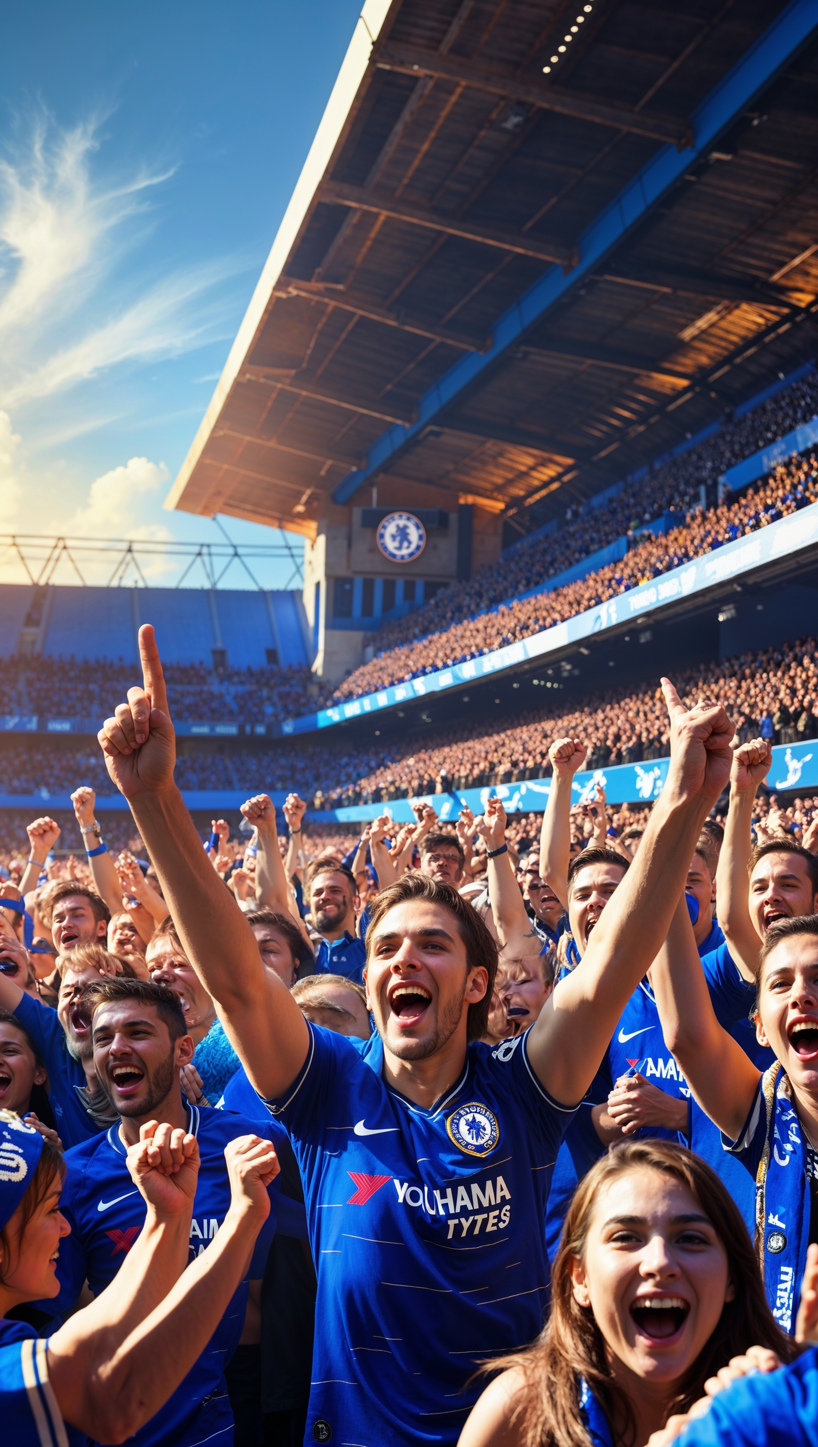 1664x2944 A wallpaper with a design of Chelsea fans at Stamford Bridge