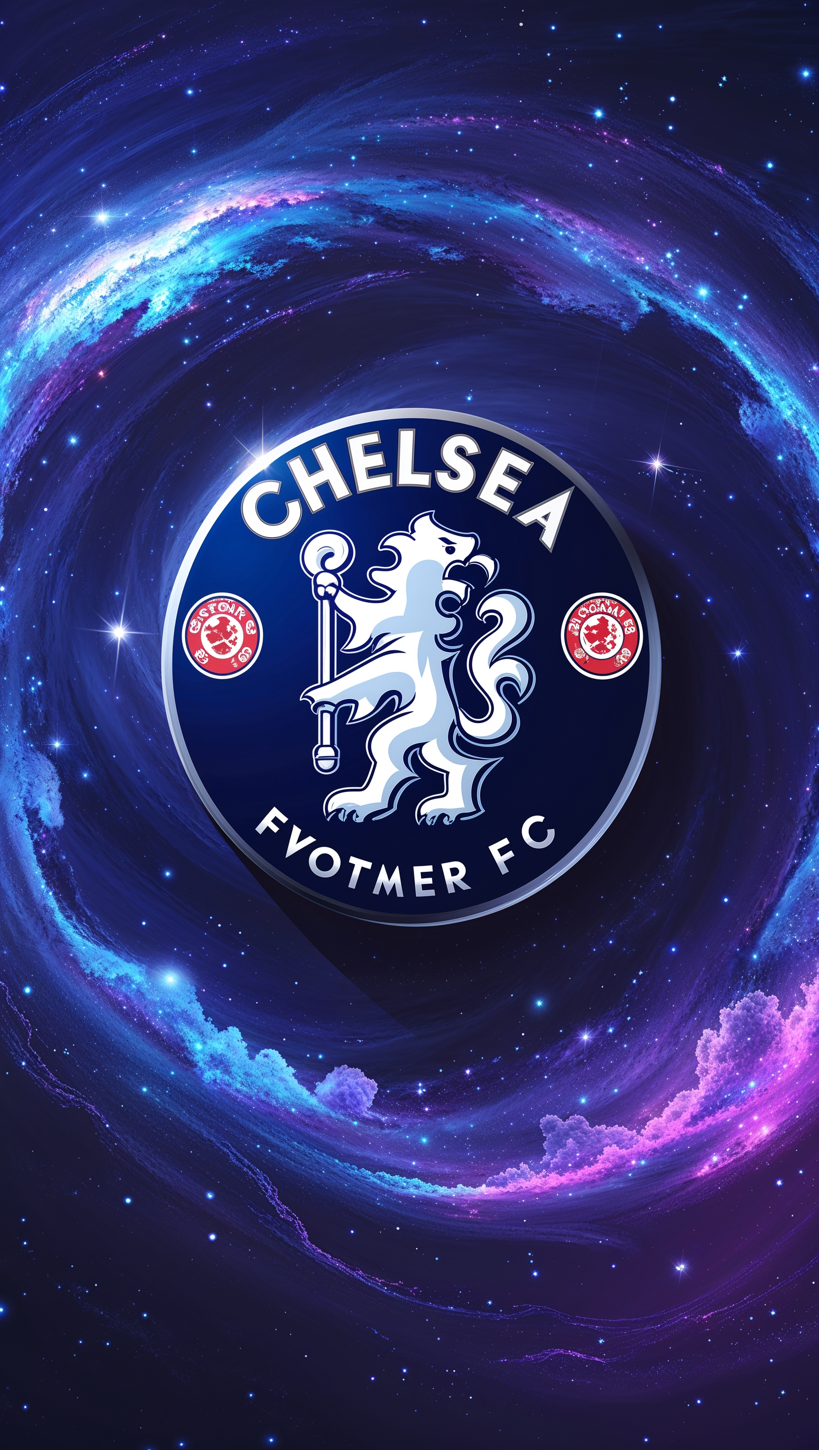1664x2944 A space-themed wallpaper with stars and Chelsea FC's logo