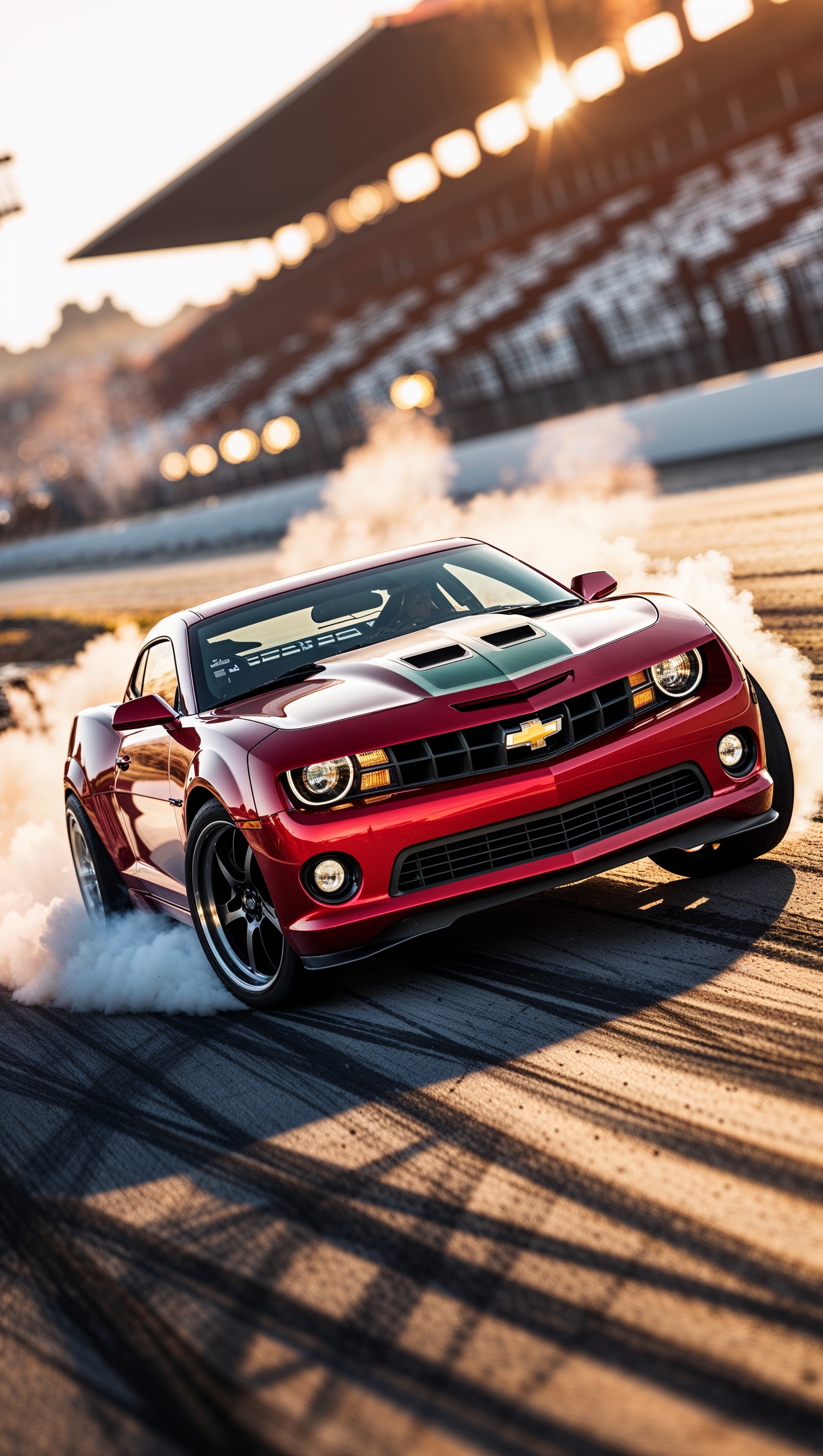 1664x2944 Camaro drifting on a race track, cinematic angle