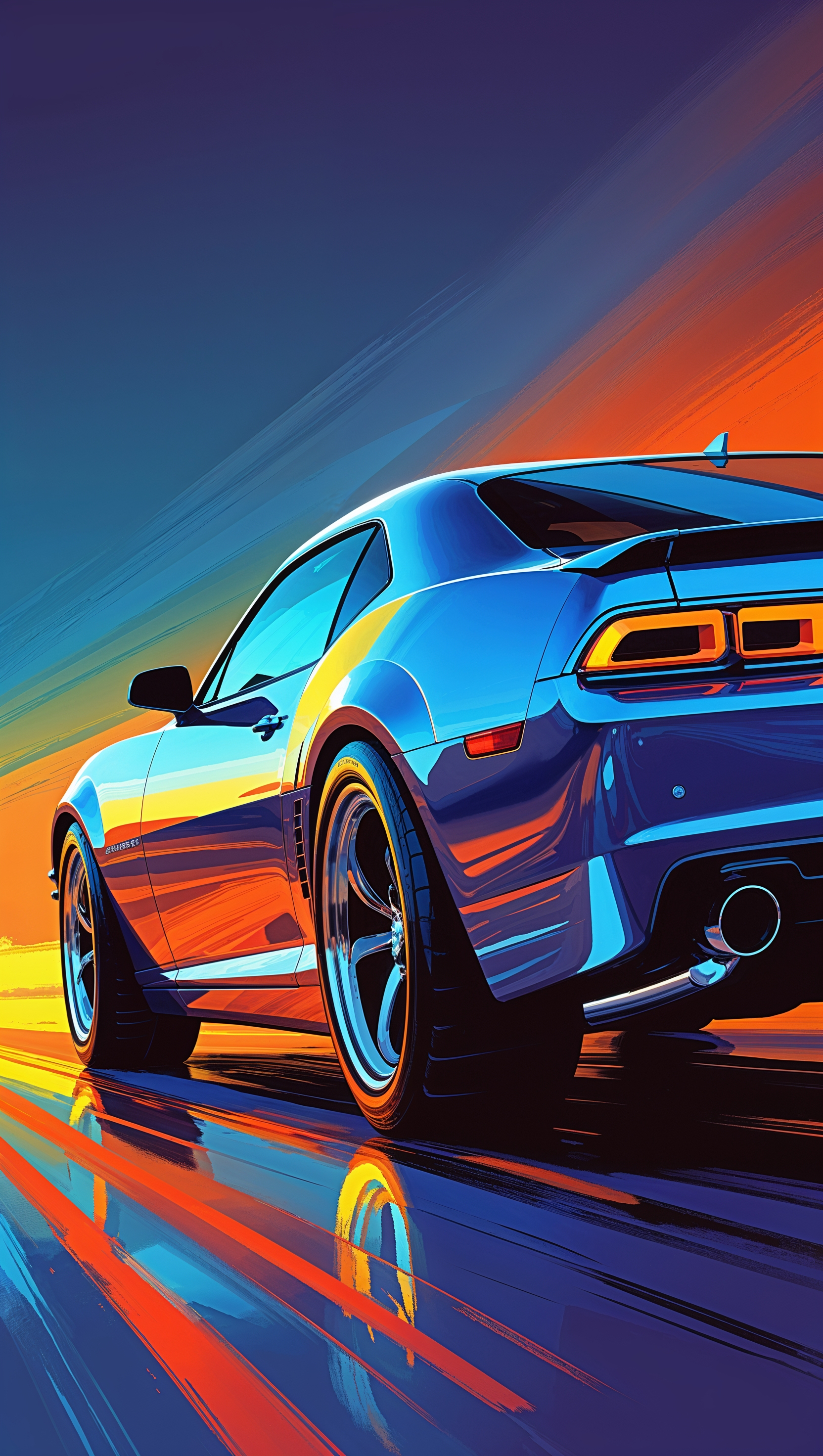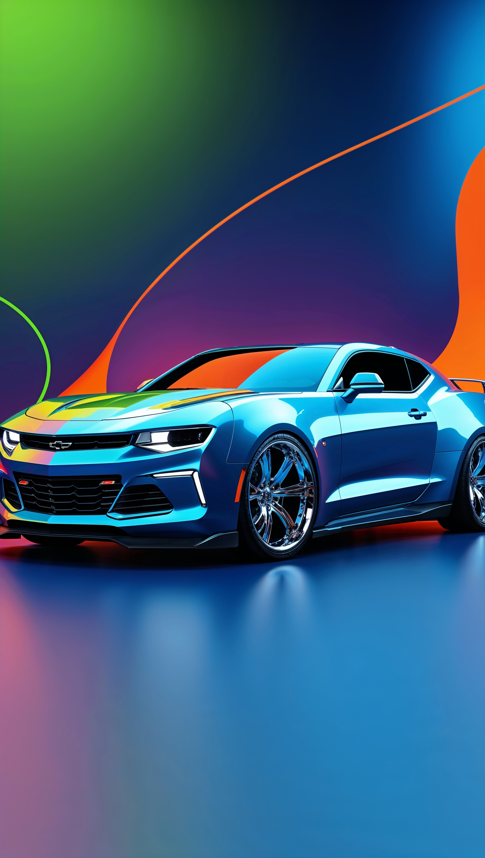 1664x2944 Simple wallpaper with graphic Camaro design and vibrant colors